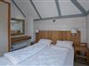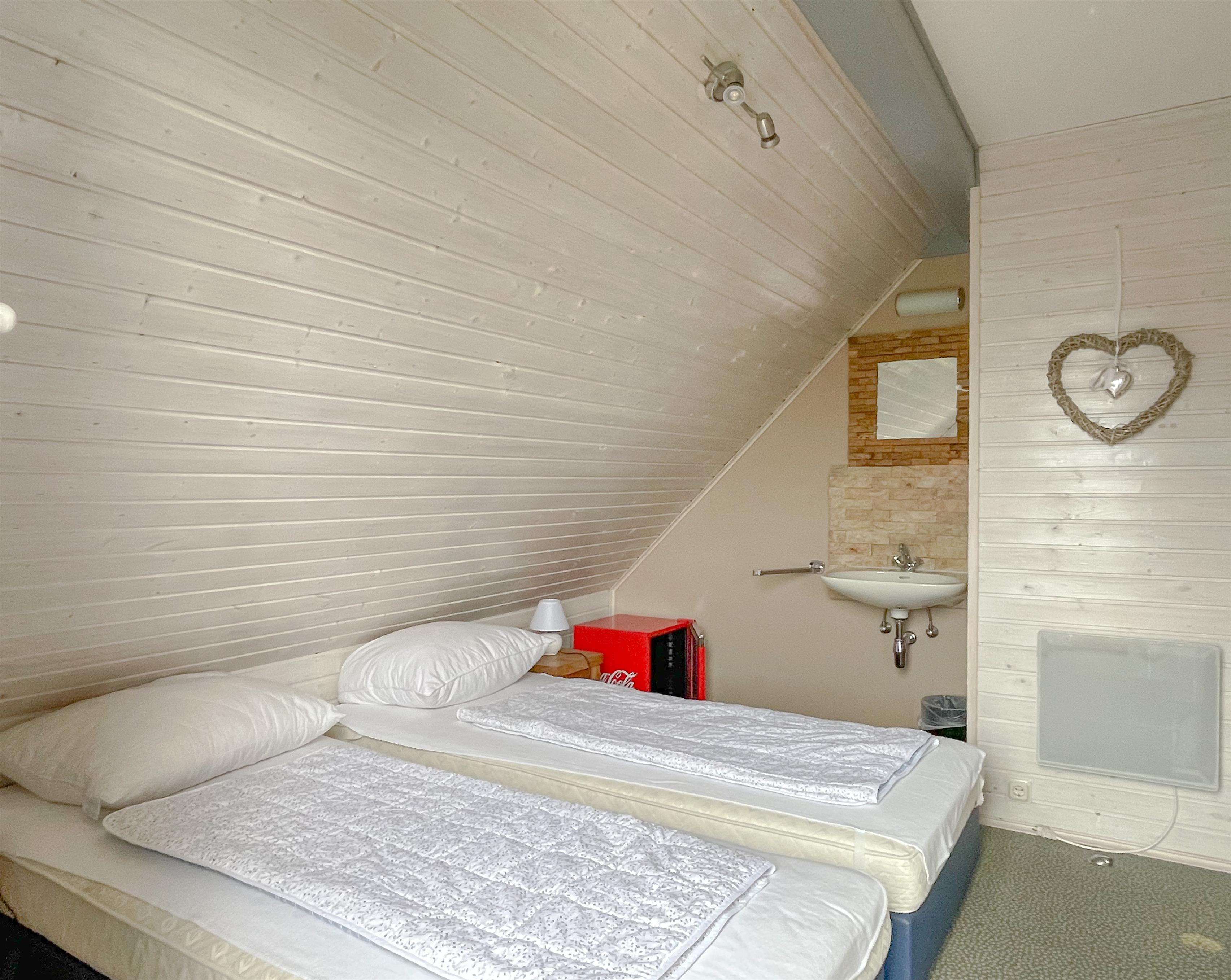 Im Obergeschoss liegen 2 weitere Schlafzimmer, das eine mit Doppelbett, das andere mit 2 separaten Betten. Darüber hinaus lädt im Obergeschoß ein großer Balkon zum Entspannen ein und darunter im Erdgeschoß eine schöne Terrasse. Beide Schlafzimmer im DG verfügen je über einen eigenen Balkonzugang (Süden). Von hieraus können Sie die Blicke über den gesamten Ferienpark schweifen lassen.