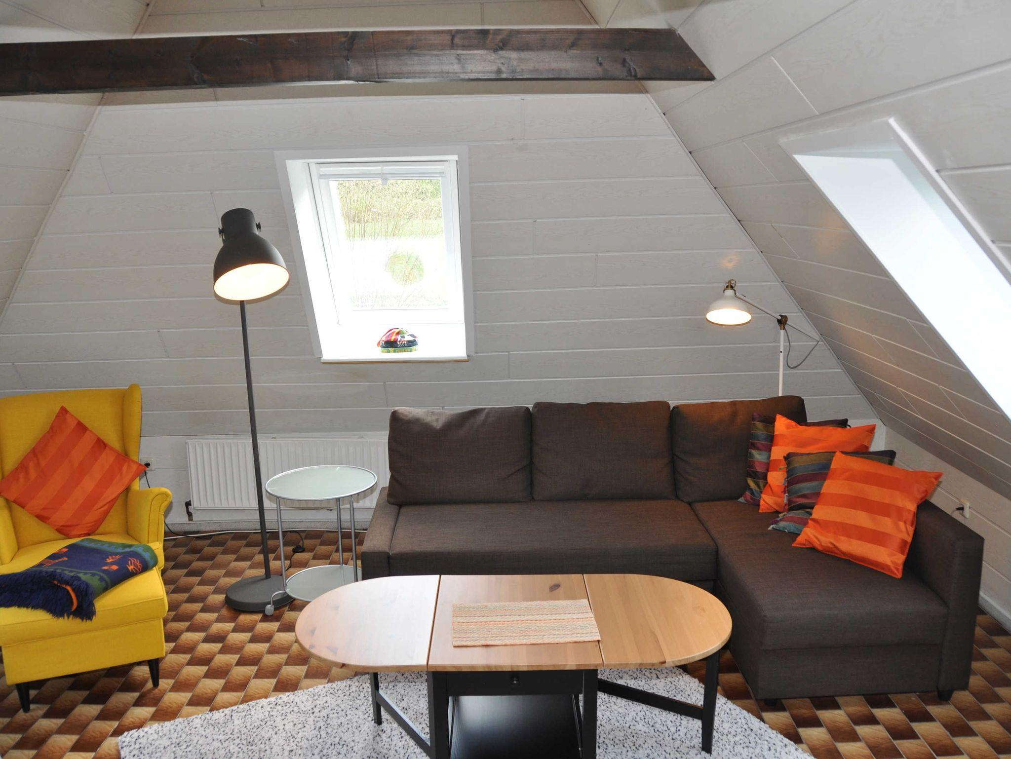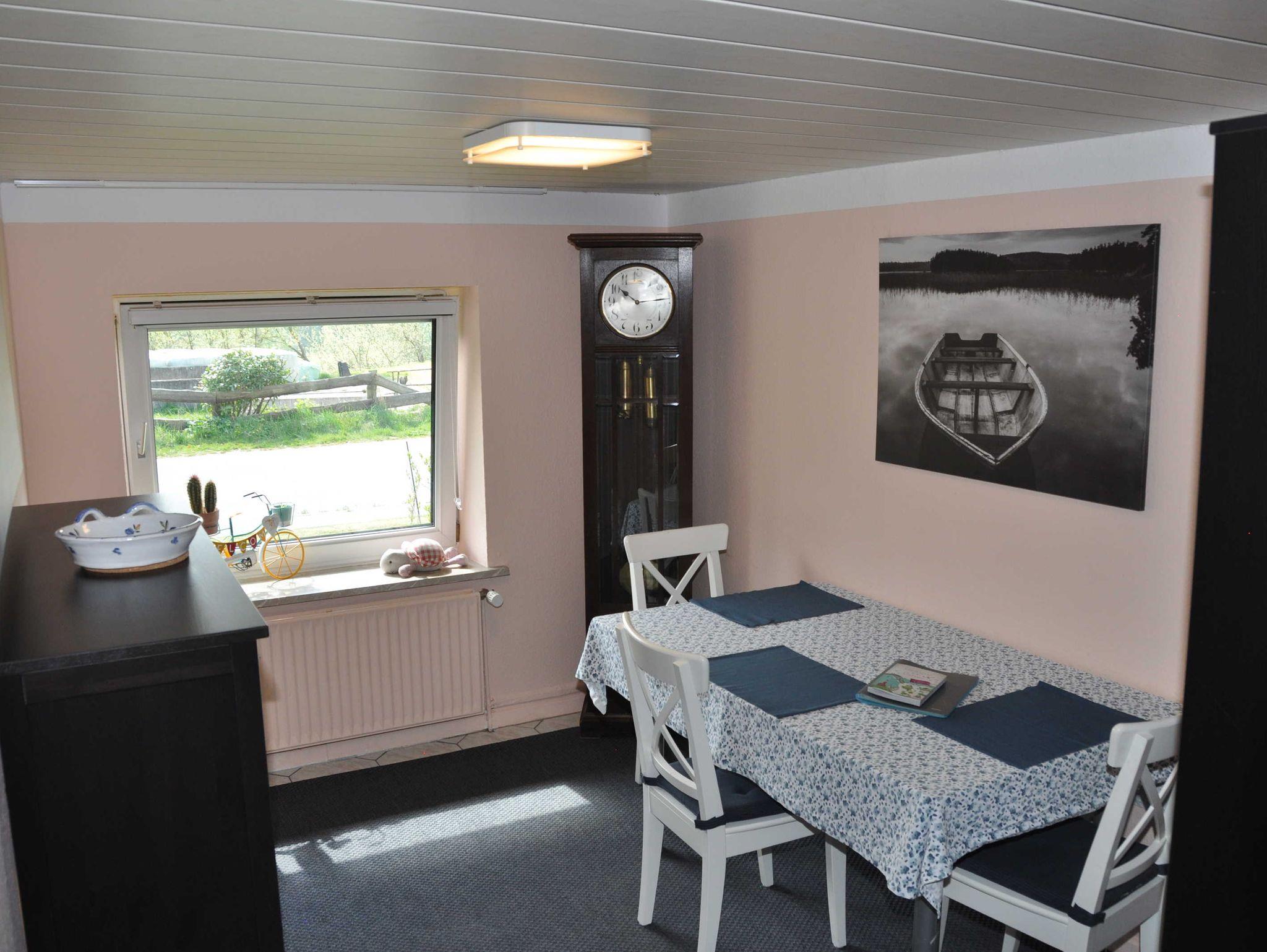 Die Nichtraucherwohnung für 2 bis 4 Personen befindet sich in einem Doppelhaus und verfügt über einen separaten Eingang und eigene Terrasse. Die Zimmer verteilen sich auf zwei Etagen. Die Wohnung besteht aus einer Küche, einem Esszimmer, einem großen Schlafzimmer mit Doppelbett und einer ausziehbaren Schlafcouch sowie einem geräumigen Badezimmer. Im Obergeschoss befindet sich ein Wohnzimmer mit zusätzlicher Schlafmöglichkeit und einer Spielecke.