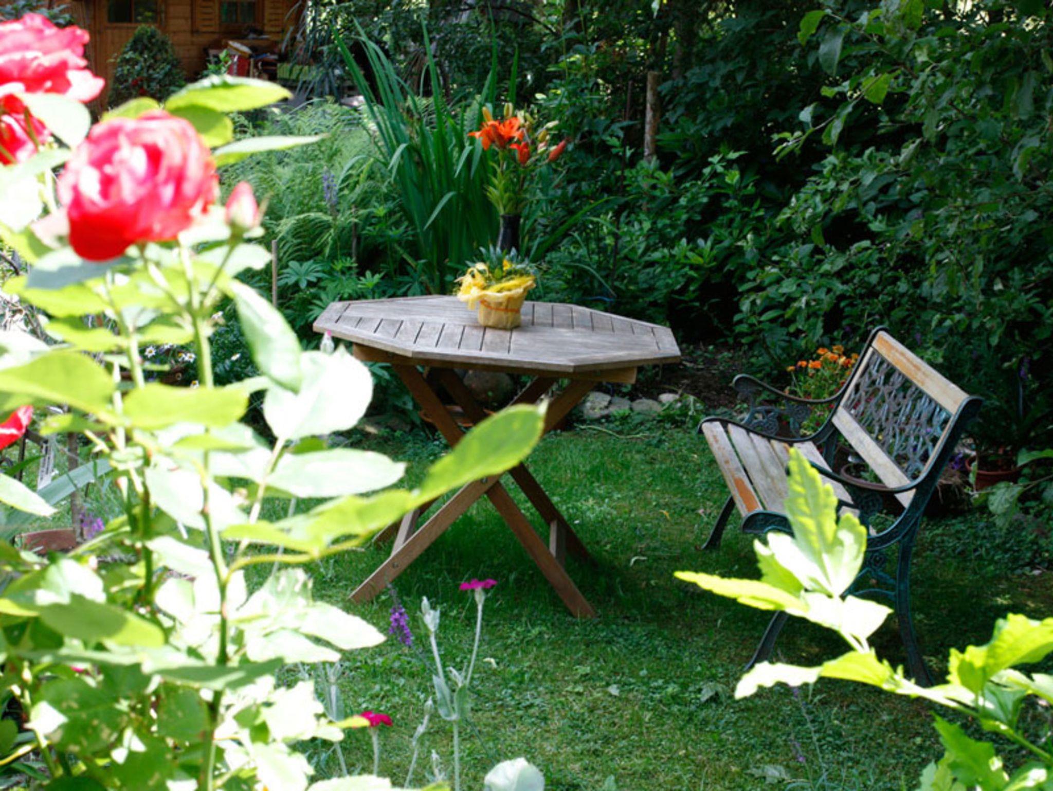 Ihnen stehen die Liegewiese mit Gartenliegen, Tisch mit Stühlen, Bänke und auch ein Grill zur Verfügung (nur für die Hausgäste).