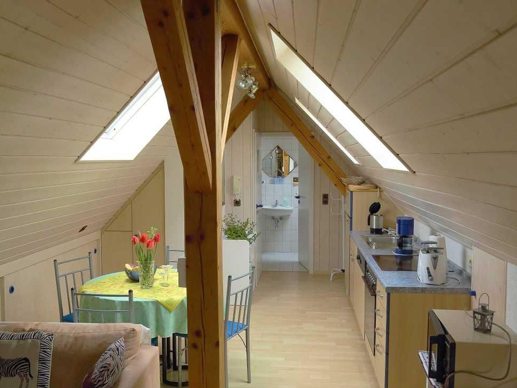Machen Sie Urlaub in einer schönen, gemütlich eingerichteten Studiowohnung. Einbau-Küche mit Geschirrspüler, Kühlschrank, Mikrowelle, Herd mit Backofen und Ceranfeld, begehbarer Kleiderschrank, Raumteiler, Einbauschränke, Doppelbett, ausklappbare Couch (zusätzliches Einzelbett kann aufgestellt werden), Badezimmer separat. Große Fenster, davon ein großes Velux-Dachfenster, zum Balkon ausklappbar. Selbstverständlich stellen wir Ihnen Bettwäsche und Handtücher zur Verfügung.