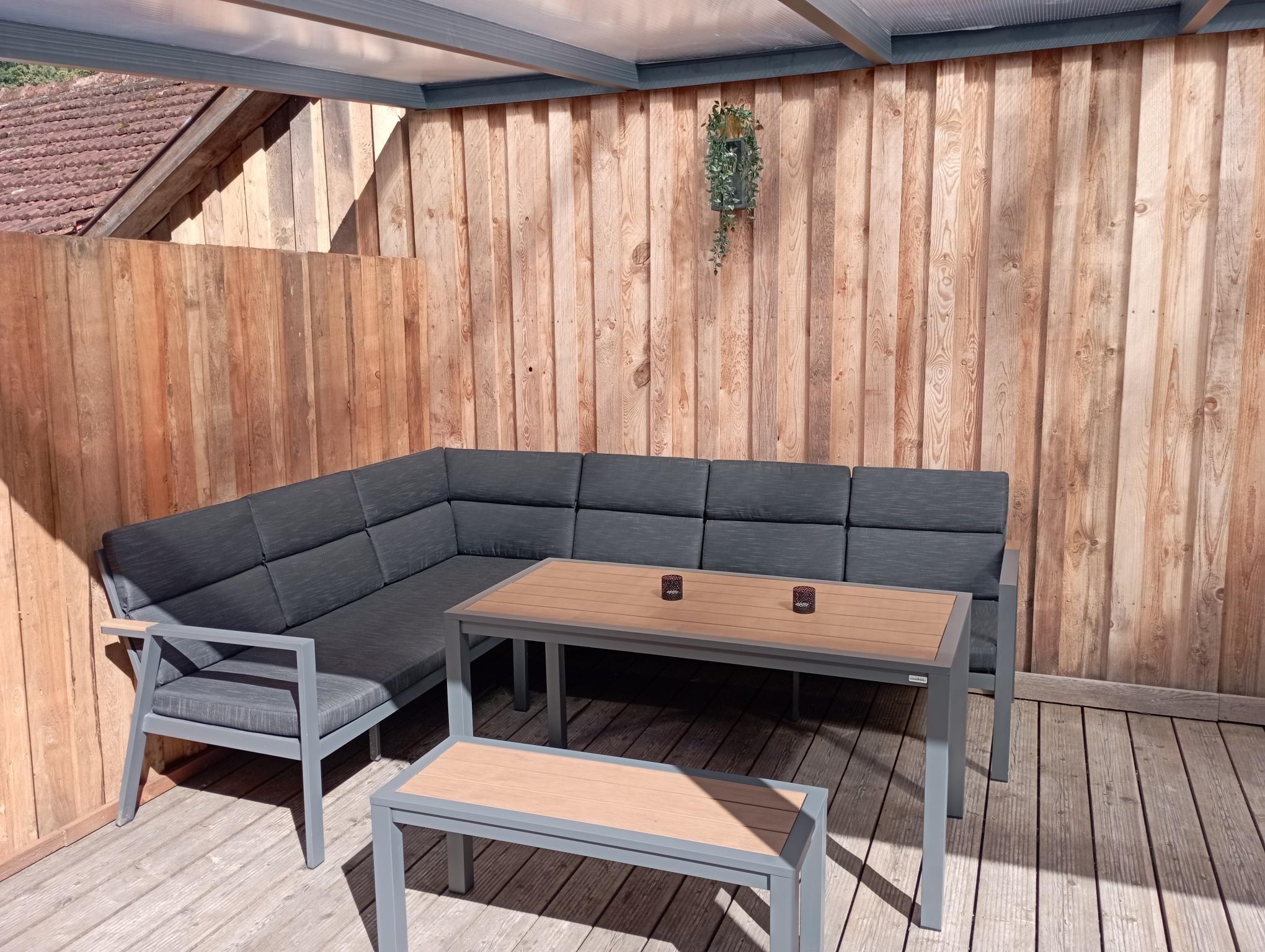Genießen Sie Ihren Urlaub in vollen Zügen, bei schönem Wetter auch draußen auf der Terrasse. Die gut ausgestattete Küche besitzt unter anderem einen Kühlschrank, einen Herd zum Kochen und sogar eine Spülmaschine.