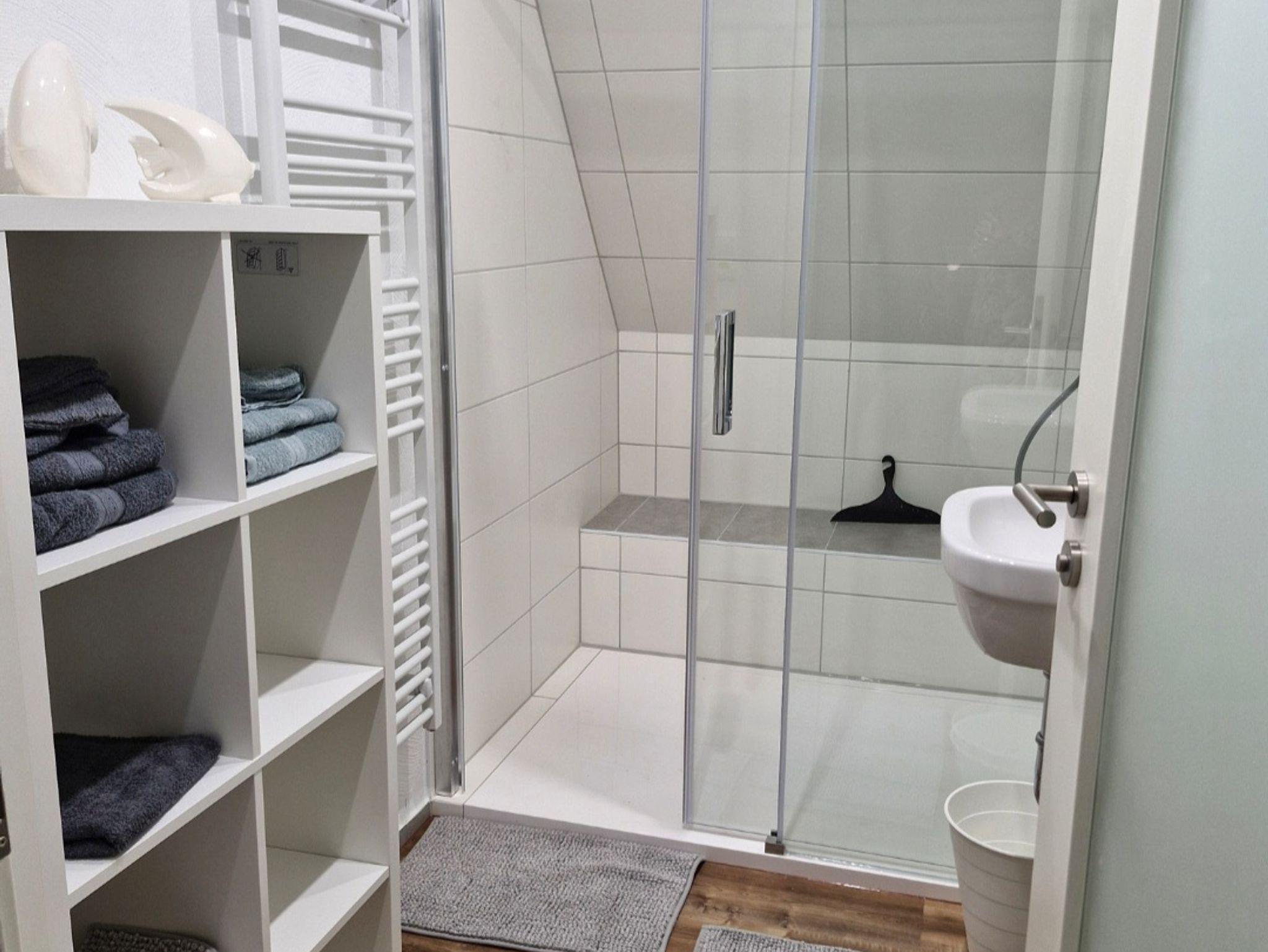 Das geräumige WC und die separate ebenerdiger Dusche, rundet das Gesamtbild ab.