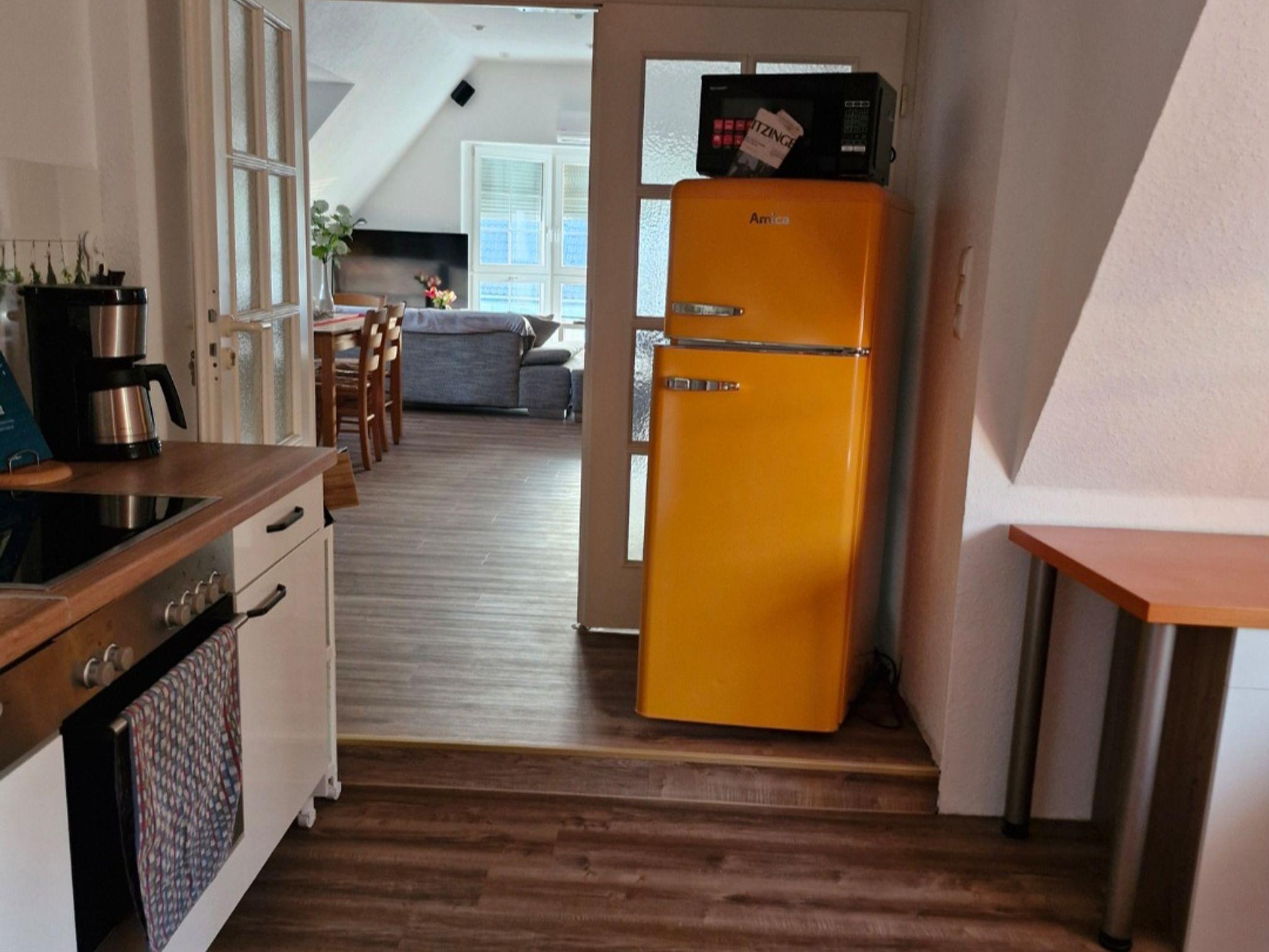 Die komplett ausgestattete Küche mit Geschirrspüler, Kühlschrank inkl. Gefrierfach, Herd, Backofen, Mikrowelle, Wasserkocher, Toaster und Kaffeemaschine lässt keine Wünsche offen.