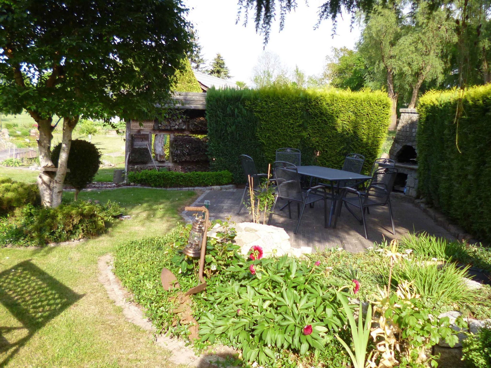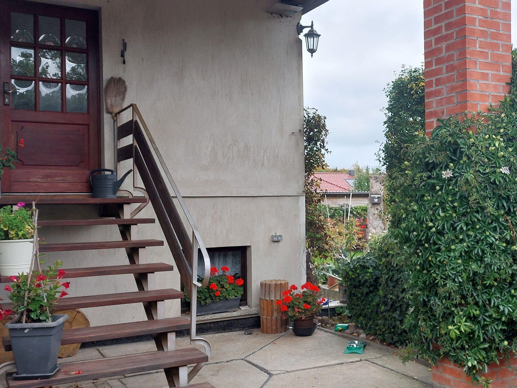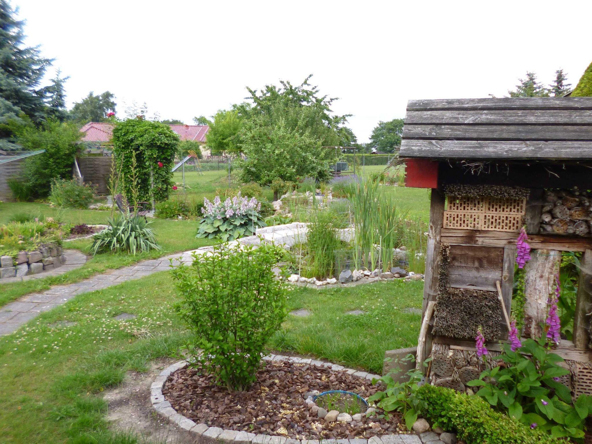 Dabei blicken Sie über die Loggia auf das ca.150 m entfernte Boddengewässer mit der Insel Rügen im Hintergrund oder plaudern nach Wunsch mit anderen Gästen bzw. erfahren vom Gastgeber gern weitere Informationen über Wanderrouten und Ausflugsmöglichkeiten. Oder Sie genießen einfach nur den schönen Garten, der mit seinen vielen Blumen und dem kleinen Goldfischteich eine gute Möglichkeit ist, die herrliche Natur zu erleben.