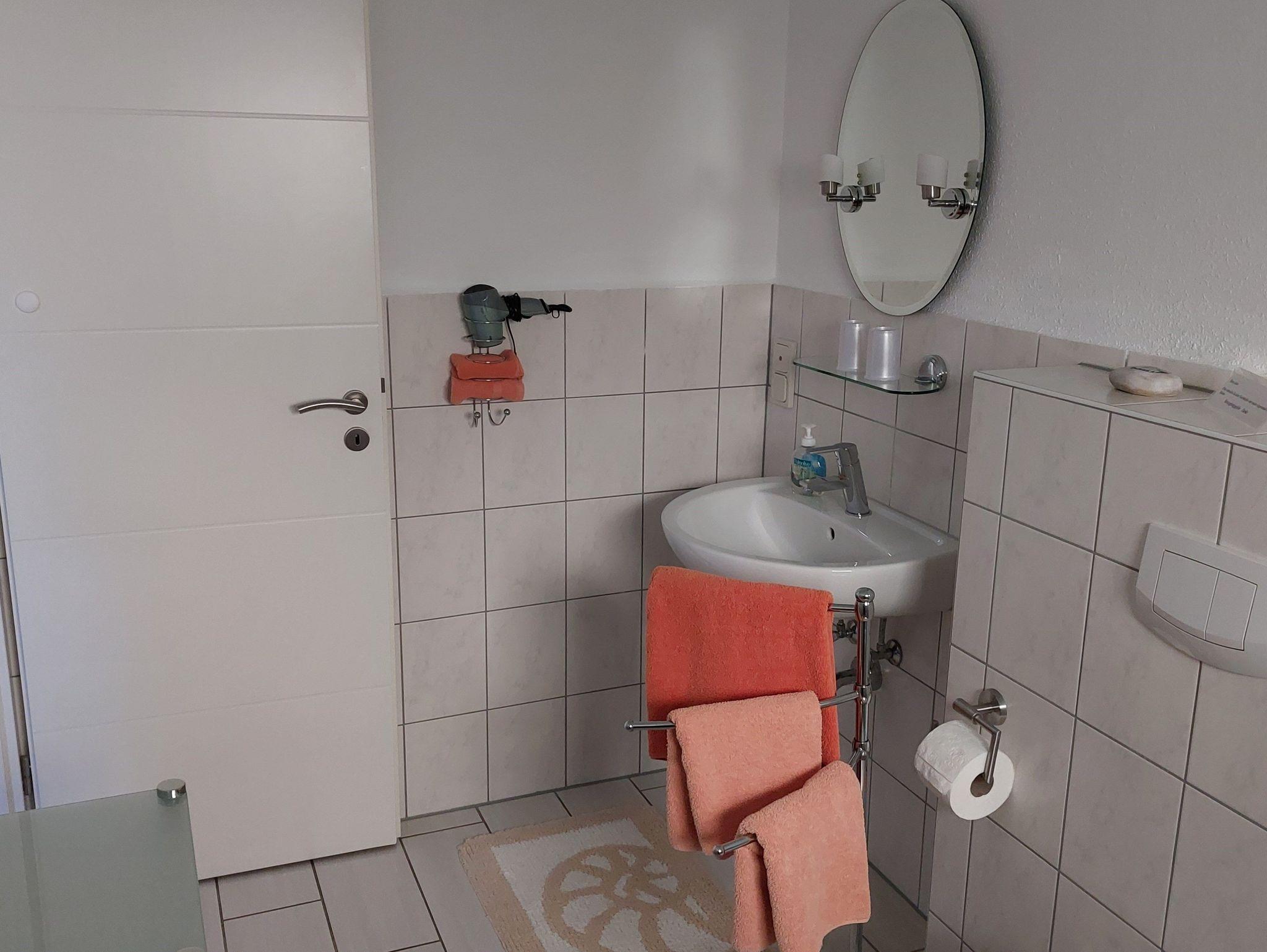Sie übernachten in drei gemütlich eingerichteten ebenerdigen Doppelbettzimmern mit eigener ebenerdiger Dusche bzw. Vollbad. Das Zimmer und die Dusche sind ebenerdig.