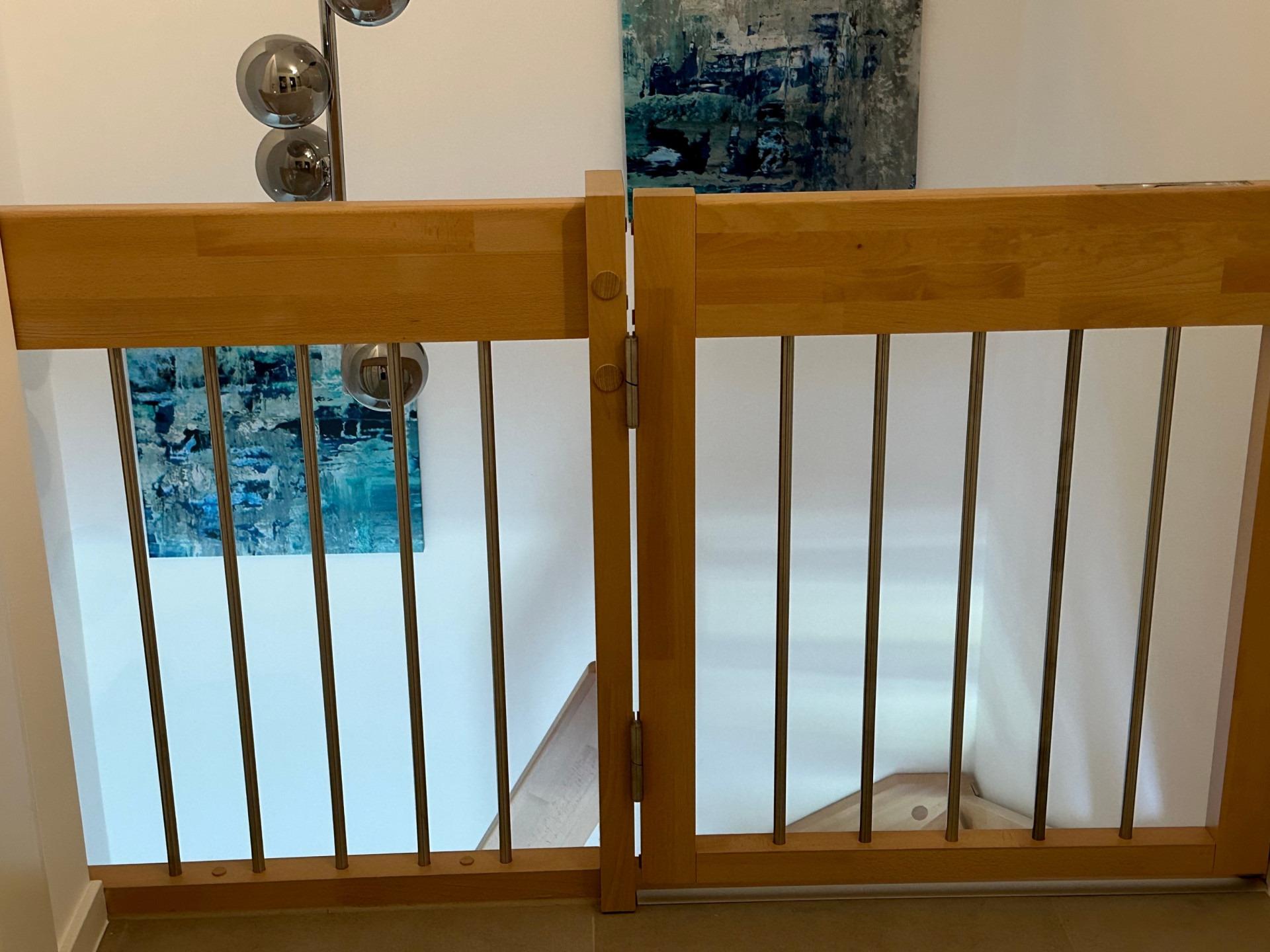 Für Familien mit kleinen Kindern oder Hunden gibt es ein Treppenschutzgitter, das bei Bedarf eingebaut werden kann.