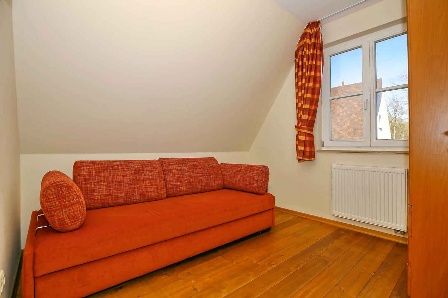 In der oberen Etage befinden sich drei Schlafzimmer. Das erste Schlafzimmer ist mit einem bequemen Doppelbett (2 x 90 x 200 cm) und einem großen Kleiderschrank eingerichtet. Im zweiten Schlafzimmer erwartet dich ein Doppelbett (2 x 80 x 200 cm) zur Nachtruhe. Für dein Urlaubsgepäck ist auch hier ein Kleiderschrank vorhanden. Die ausziehbare Schlafcouch (170 x 200 cm) im dritten Schlafzimmer bietet 2 weiteren Personen einen Schlafplatz. Ein Kleiderschrank dient als Stauraum für deine Kleidung. Zum Verdunkeln kannst du in allen Schlafzimmern Vorhänge nutzen.