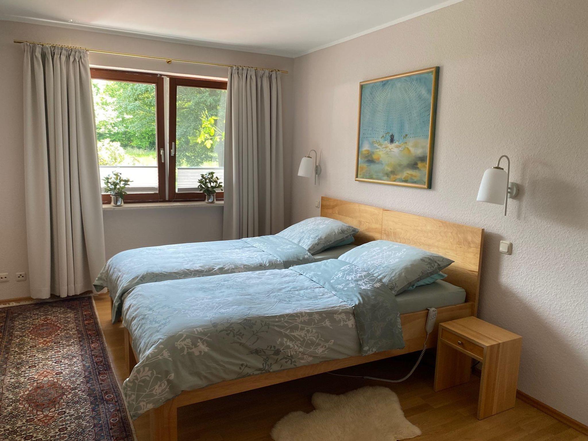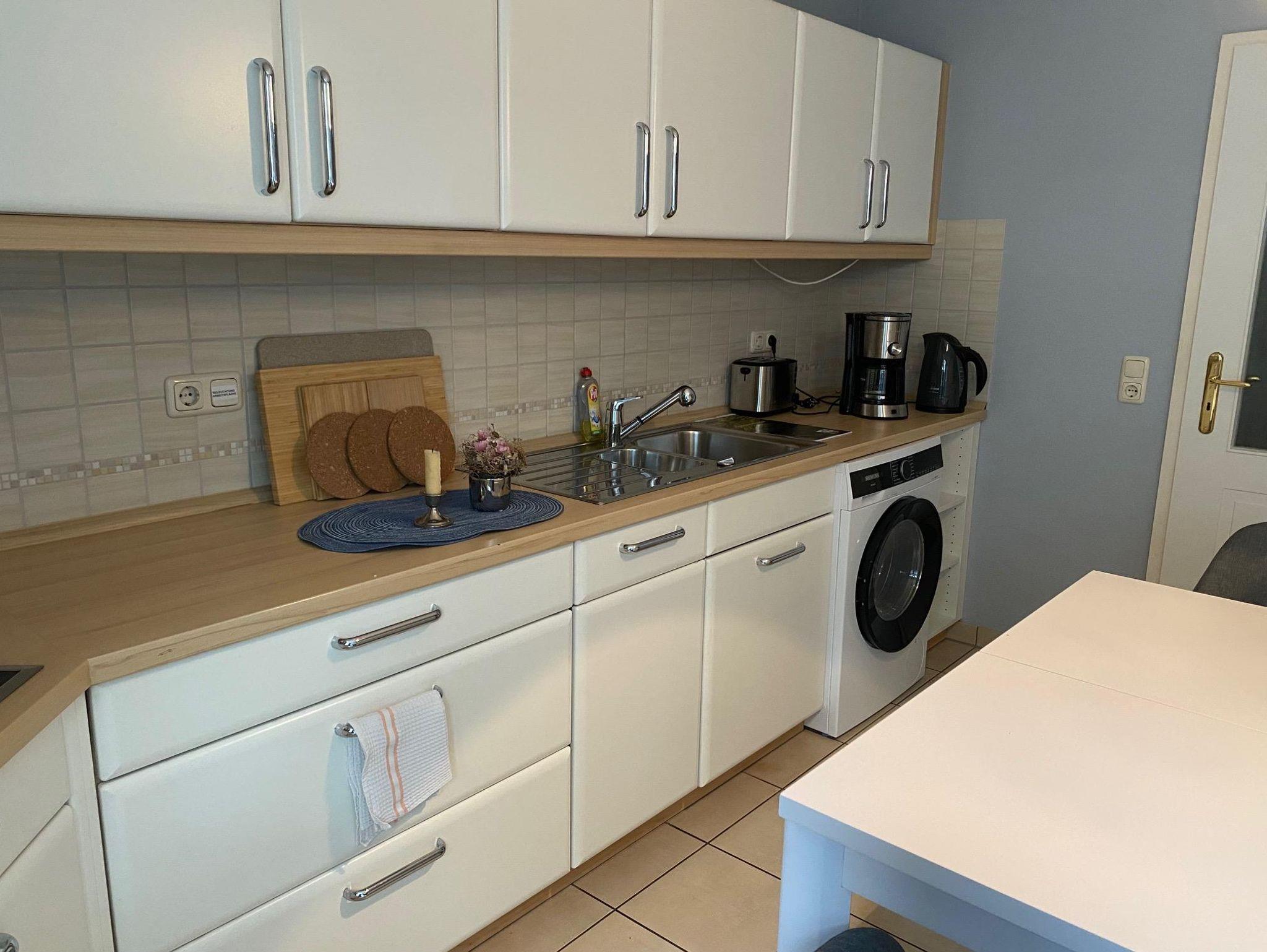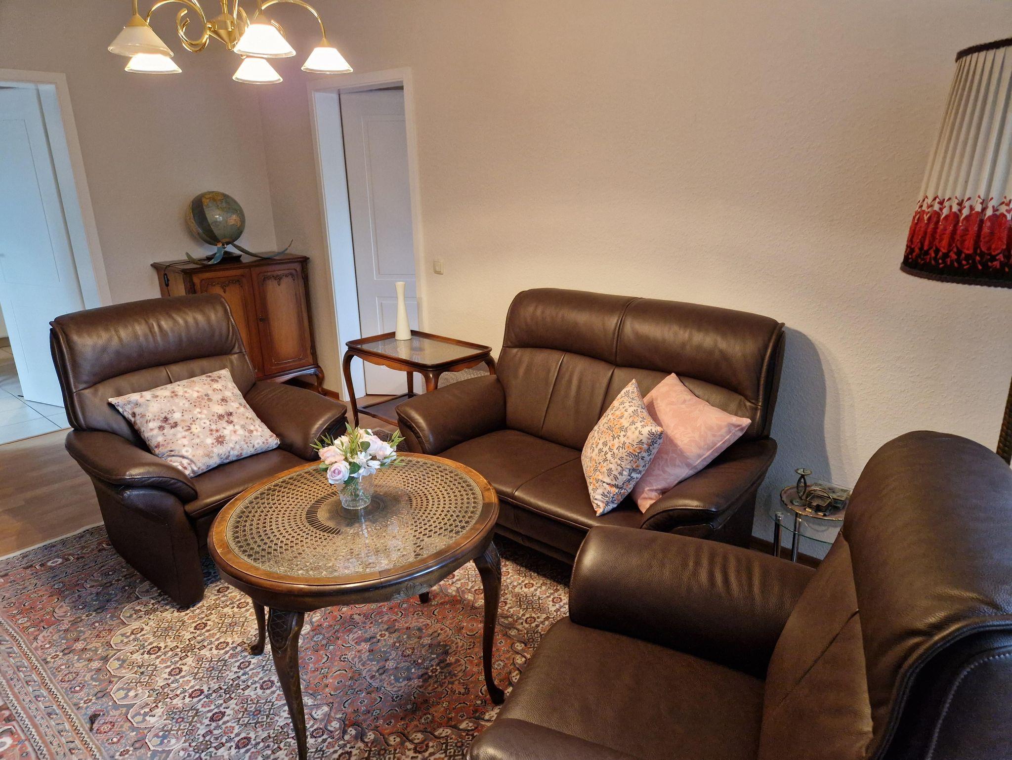 Die Wohnung ist komplett möbliert, die recht komfortable und komplett ausgestattete Wohnküche mit Geschirrspüler und Waschmaschine ausgestattet. Das gesamte Haus - und damit auch die Ferienwohnung - ist mit Fußbodenheizung ausgestattet. Vom Wohn- und Schlafzimmer aus haben Sie einen Blick in unseren Garten und auf die Terrasse. Diese dürfen Sie gerne nach Absprache nutzen. Dafür stehen auch Gartenmöbel zur Verfügung.