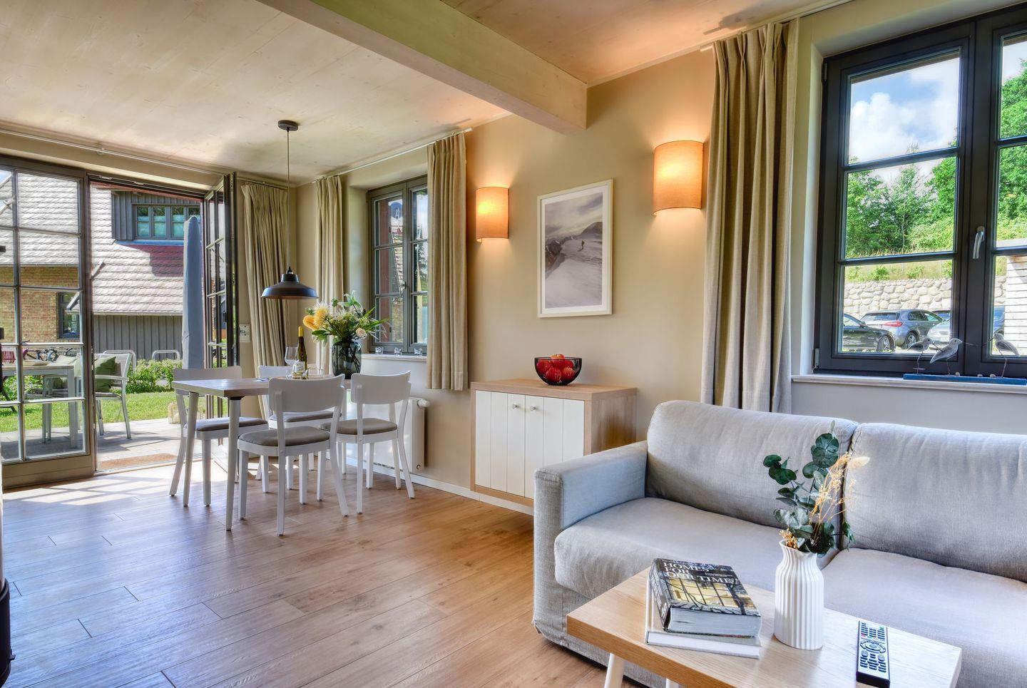 Im Feriendorf Klein Stresow werden Sie auf 61 Quadratmeter in Ihrer eigenen, stylischen Ferienhaushälfte mit Garten und Weitblick begrüßt . Hier beginnt der Urlaub für bis zu 5 Personen schon beim Eintreten. Wenn Sie es genau nehmen, schon beim Ankommen. Das Auto auf dem für Sie reservierten Stellplatz abgestellt, können Sie bei so viel sonniger Leichtigkeit erst einmal richtig durchatmen. Öffnen Sie die bodentiefen Fenster zu Ihrer Südterrasse weit und genießen Sie die frische Ostseebrise. Hier lässt es sich ausgezeichnet frühstücken. Das Innere Ihrer Ferienhaushälfte ist bis ins Detail aufs Feinste eingerichtet. Lampen, Möbel und Bilder sind nordisch nobel. Ein Sofa mit Ottomane lädt zum Relaxen ein. Zur Ausstattung des Wohn-Esszimmers gehören ein Kamin und ein Flat-TV. Das WLAN können Sie kostenfrei nutzen. Ein schöner Esstisch mit vier Stühlen eignet sich bestens für die Mahlzeiten.