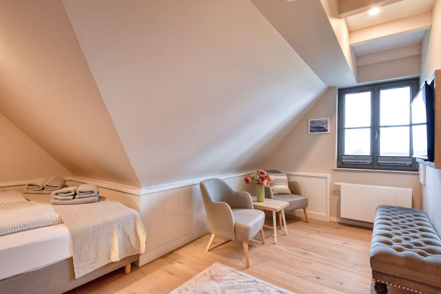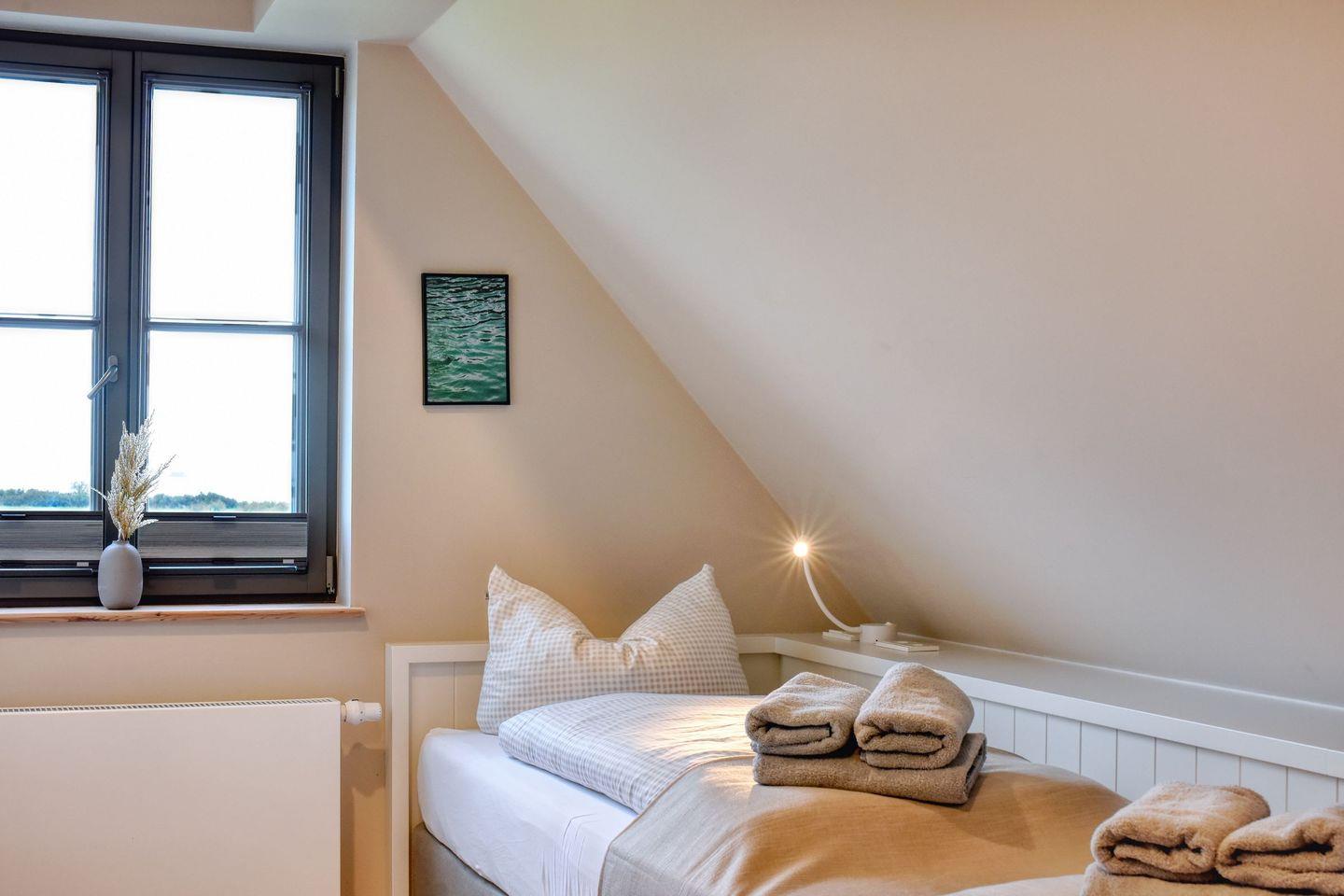 Zubereiten können Sie sie in der offenen und modernen Küche. Alle Geräte sind hochwertig. Ein komplettes Geschirr-Service befindet sich in den Schränken. Abwaschen muss hier zum Glück niemand. Es gibt einen Geschirrspüler. Weiter geht’s mit den beiden komfortablen Schlafzimmern. Zwei bequeme Boxspringdoppelbett (180 x 200) und zwei Boxspringeinzelbetten (90 x 200) versprechen erholsame Träume. Die Zimmer verfügen über je einen Kleiderschrank und ebenfalls einen Flat-TV. Zwei Bäder mit Dusche und WC sorgen für genügend Raum zum Frischmachen. Das Bad im EG ist zudem mit einer Finnischen Sauna ausgestattet. Bei Anreise liegen Handtücher für Sie bereit und die Betten sind bezogen.