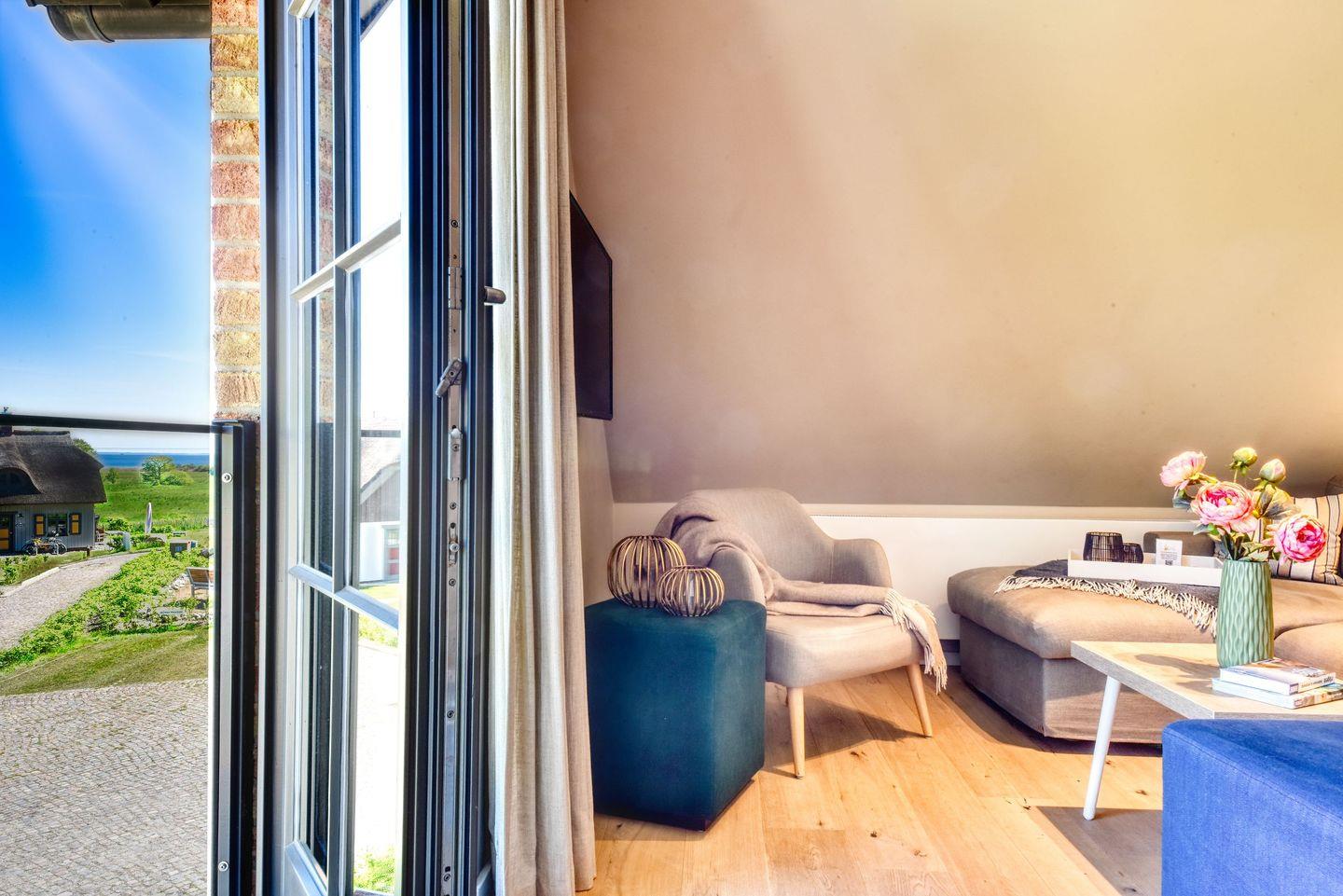 Im Feriendorf Klein Stresow werden Sie auf 61 Quadratmeter in Ihrer eigenen, stylischen Ferienwohnung mit Weitblick begrüßt . Hier beginnt der Urlaub für bis zu 4 Personen schon beim Eintreten. Wenn Sie es genau nehmen, schon beim Ankommen. Das Auto auf dem für Sie reservierten Stellplatz abgestellt, können Sie bei so viel sonniger Leichtigkeit erst einmal richtig durchatmen. Öffnen Sie die bodentiefen Fenster und genießen Sie die frische Ostseebrise. Hier lässt es sich ausgezeichnet frühstücken. Das Innere Ihrer Ferienwohnung ist bis ins Detail aufs Feinste eingerichtet. Lampen, Möbel und Bilder sind nordisch nobel. Ein Sofa mit Ottomane lädt zum Relaxen ein. Zur Ausstattung des Wohn-Esszimmers gehören ein Flat-TV. Das WLAN können Sie kostenfrei nutzen. Ein schöner Esstisch mit vier Stühlen eignet sich bestens für die Mahlzeiten.