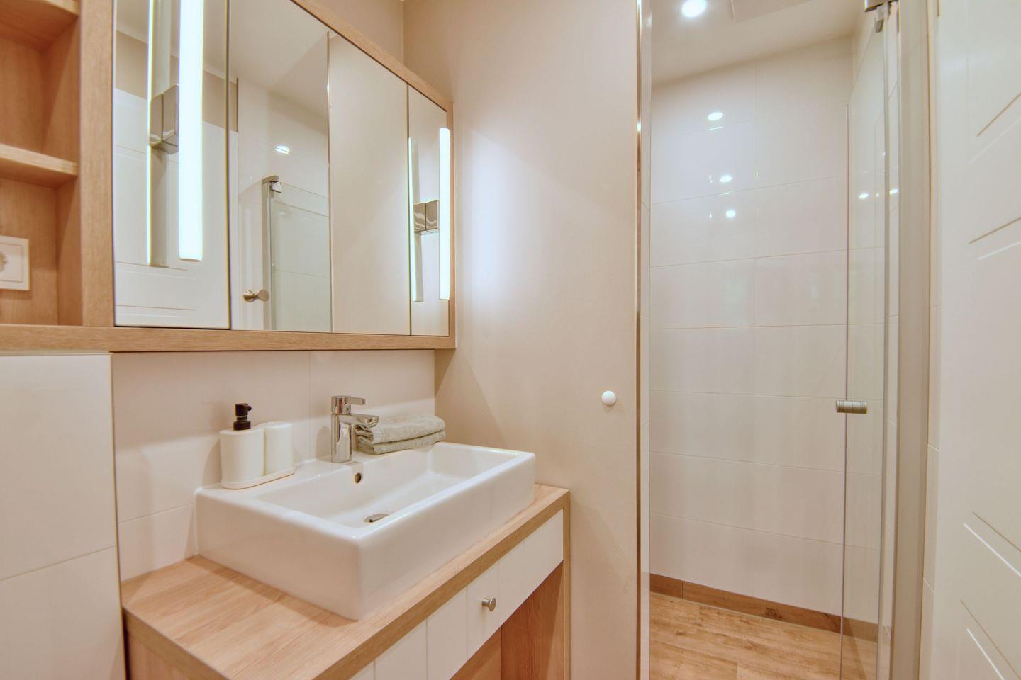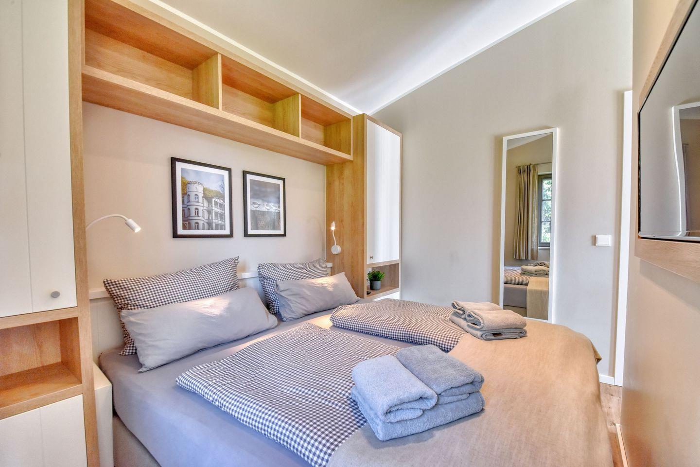 Zubereiten können Sie sie in der offenen und modernen Küche. Alle Geräte sind hochwertig. Ein komplettes Geschirr-Service befindet sich in den Schränken. Abwaschen muss hier zum Glück niemand. Es gibt einen Geschirrspüler. Weiter geht’s mit einem komfortablen Schlafzimmer. Ein bequemes Boxspringdoppelbett (180 x 200) verspricht erholsame Träume. Das Zimmer verfügt über einen Kleiderschrank und einen Flat-TV. Ein Bad mit Dusche und WC sorgt für genügend Raum zum Frischmachen. Das Bad ist zudem mit einer Finnischen Sauna ausgestattet. Bei Anreise liegen Handtücher für Sie bereit und die Betten sind bezogen.