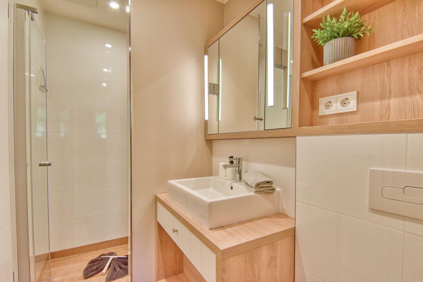 Zubereiten können Sie sie in der offenen und modernen Küche. Alle Geräte sind hochwertig. Ein komplettes Geschirr-Service befindet sich in den Schränken. Abwaschen muss hier zum Glück niemand. Es gibt einen Geschirrspüler. Weiter geht’s mit einem komfortablen Schlafzimmer. Ein bequemes Boxspringdoppelbett (180 x 200) verspricht erholsame Träume. Das Zimmer verfügt über einen Kleiderschrank und einen Flat-TV. Ein Bad mit Dusche und WC sorgt für genügend Raum zum Frischmachen. Das Bad ist zudem mit einer Finnischen Sauna ausgestattet. Bei Anreise liegen Handtücher für Sie bereit und die Betten sind bezogen.