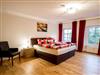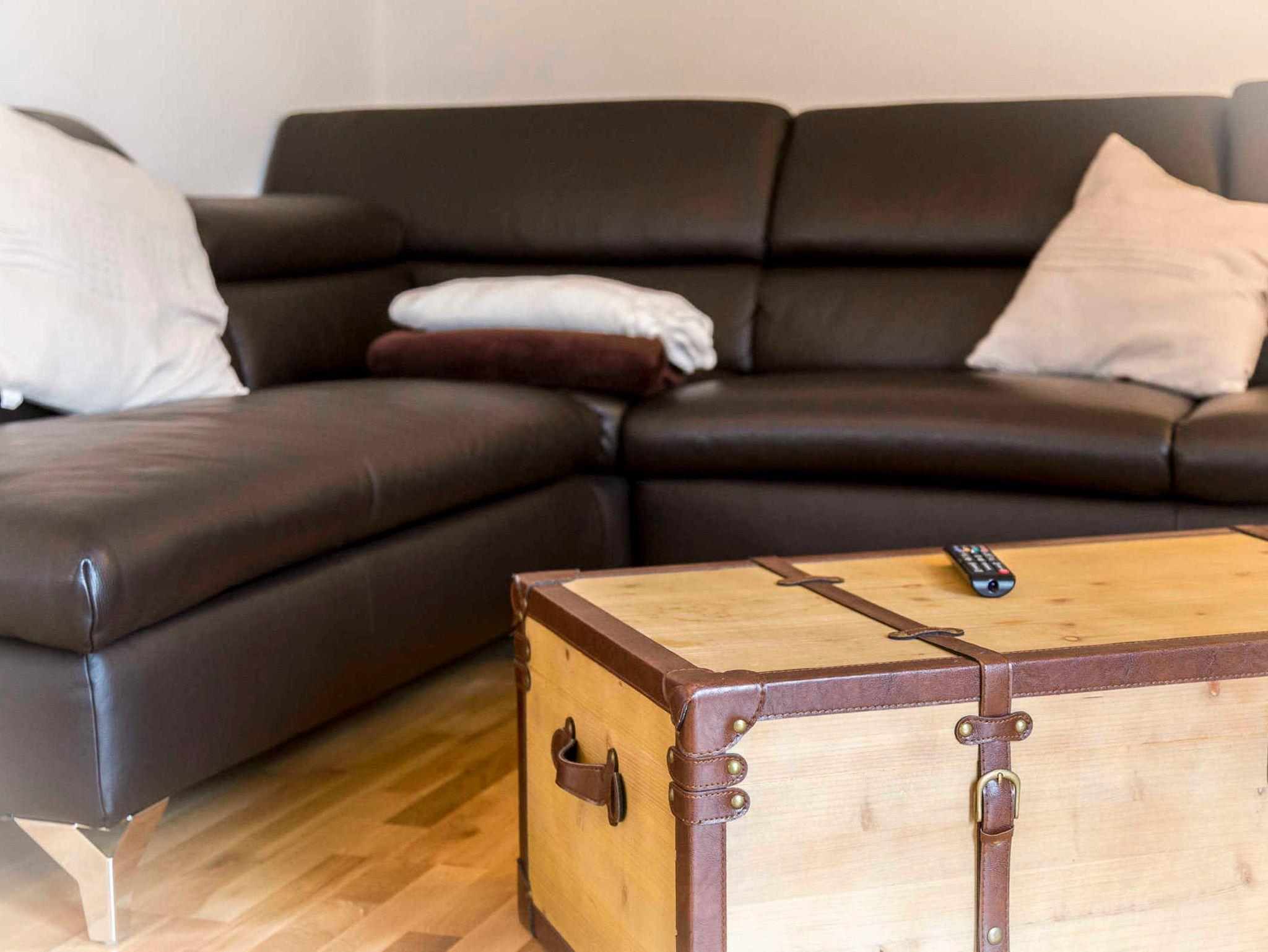 Appartment Sonnenschein: 80 m², 2 Schlafzimmer mit Boxspringbetten, für bis zu 4 Personen, beide Schlafzimmer sind mit Fernseher ausgestattet, ein schönes Bad, eine Küche und ein großes Wohnzimmer (ca. 45 m²) mit bis zum Dach offener Decke.