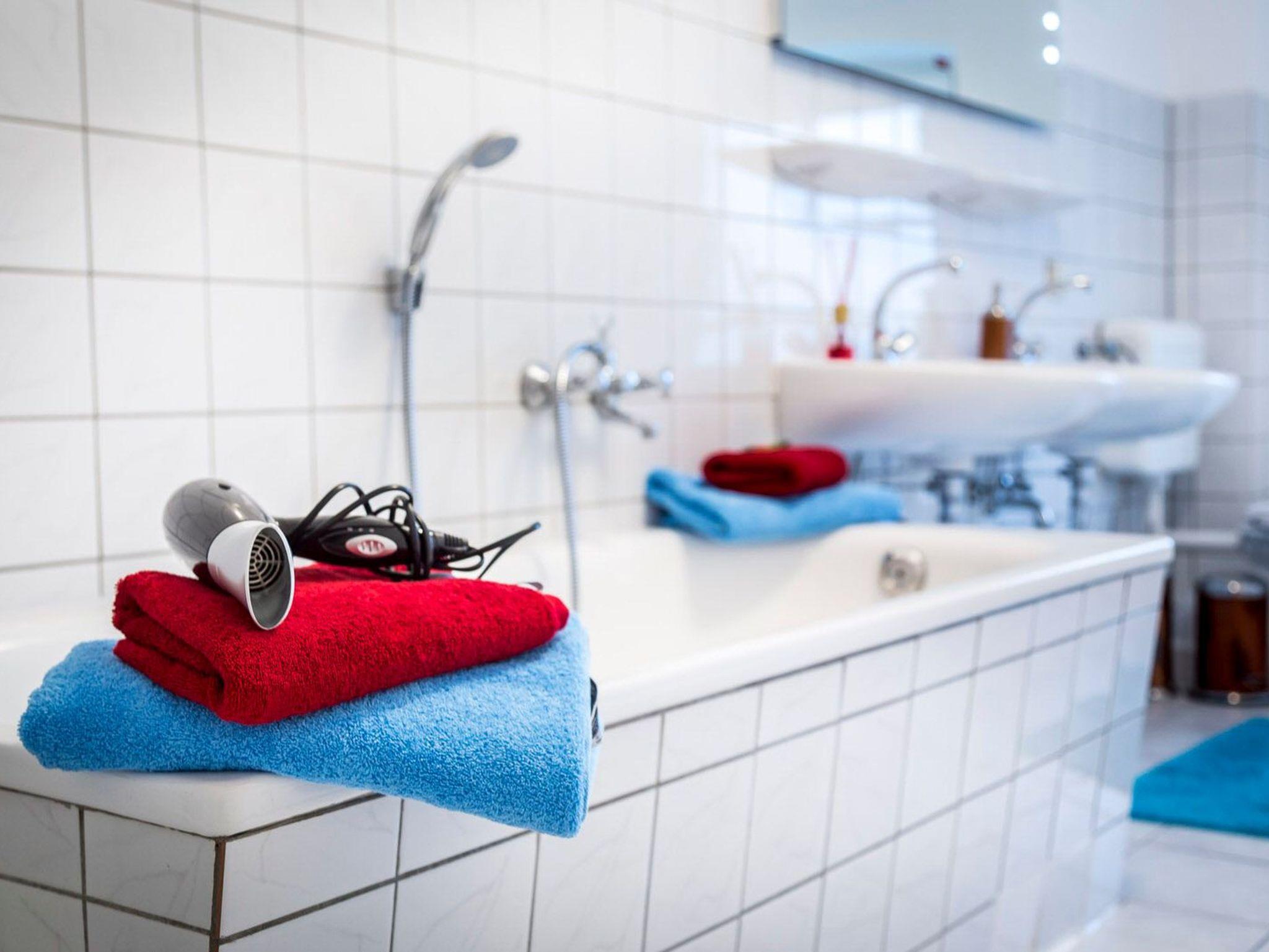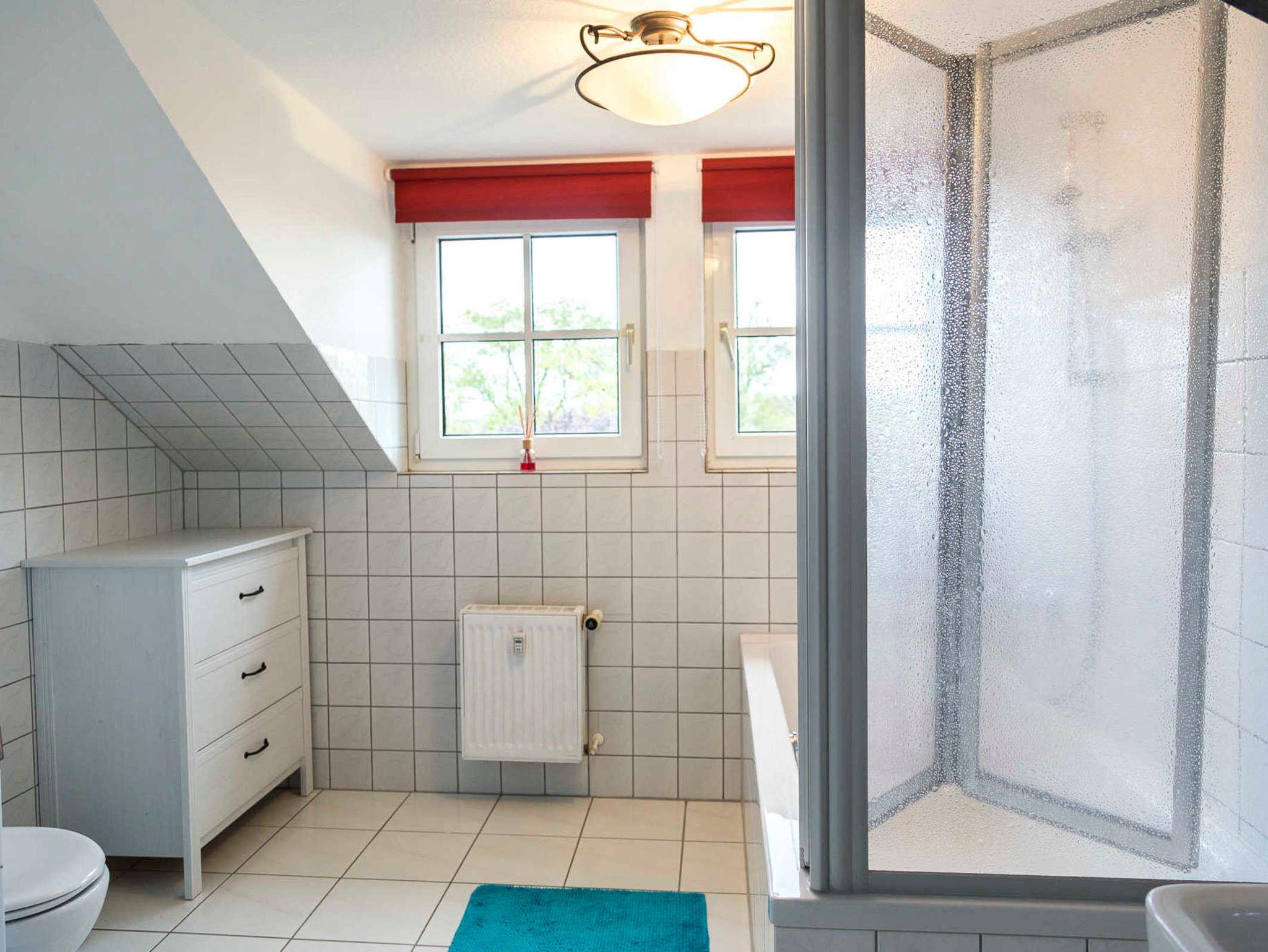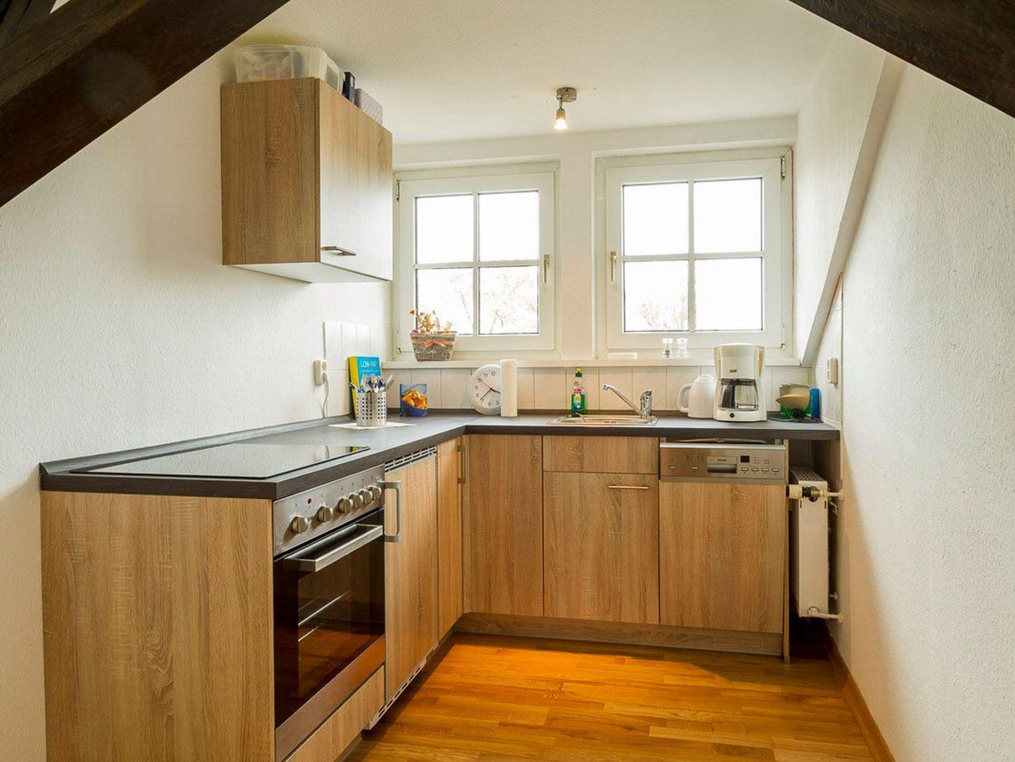 Ferienwohnung Hofblick: 120 m², 3 Schlafzimmer, für bis 6 Personen, alle mit Fernseher ausgestattet, ein schönes Bad, eine großzügige Wohnküche mit integriertem Wohnzimmer.