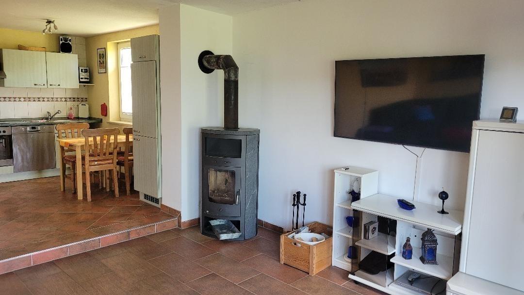 Schönes großes Ferienhaus mit Seeblick, in absoluter ruhiger Lage, großes Wohnzimmer mit offener Küche, Kamin und großer Terrasse (25 qm) mit unverbautem Blick auf den ca. 100 m entfernten See. (Bademöglichkeit)