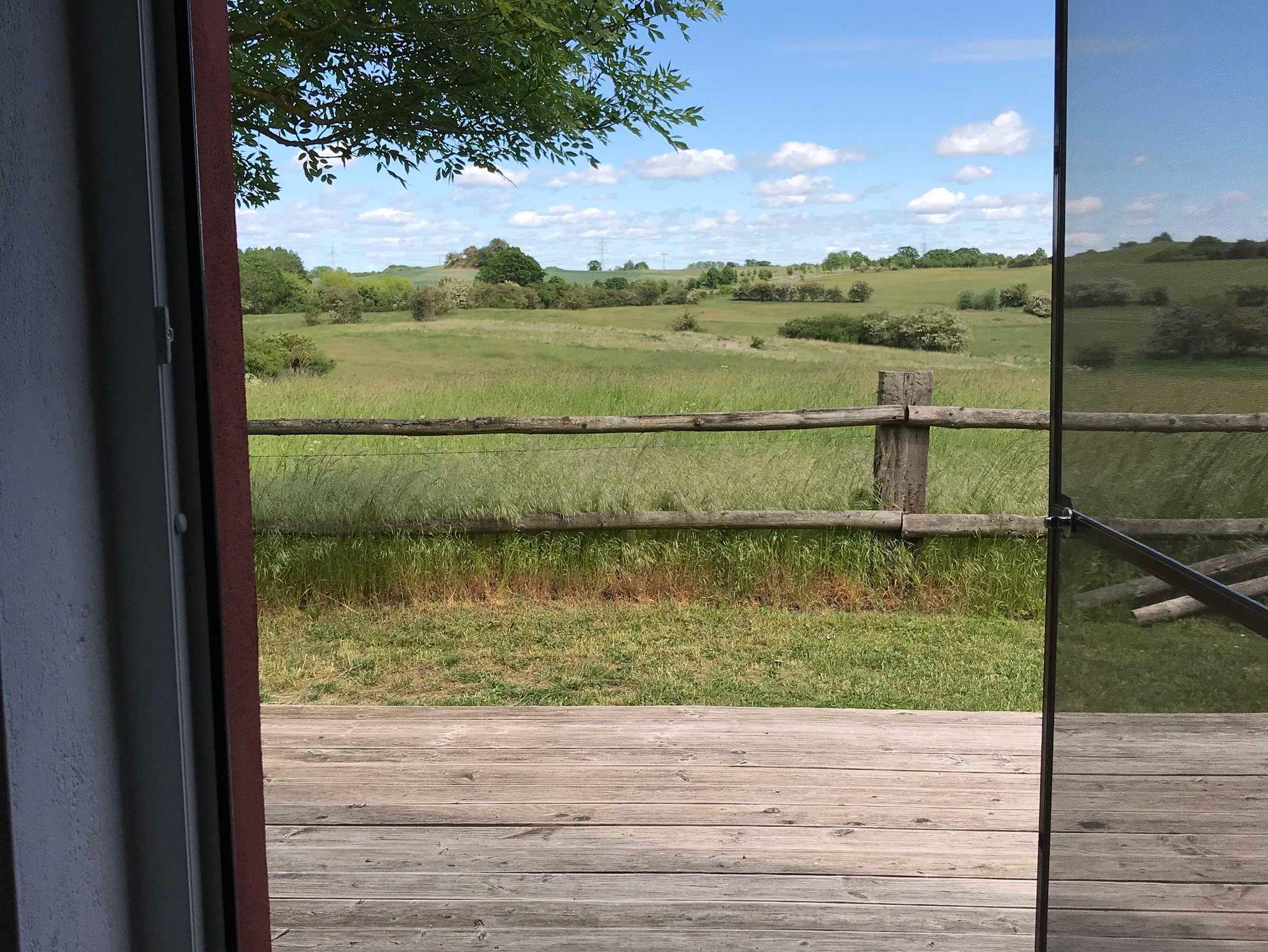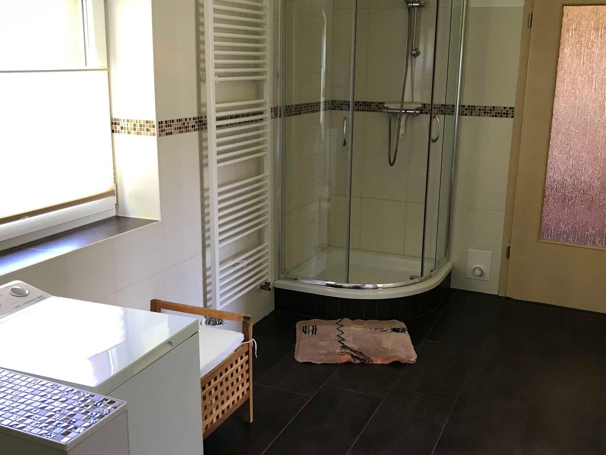 Im hinteren Teil unseres Zweifamilienhauses haben Sie Ihren ganz privaten Bereich mit separatem Eingang und einer eigenen Terrasse mit Blick auf die Felder, auf der Sie bereits morgens die Sonne genießen können.