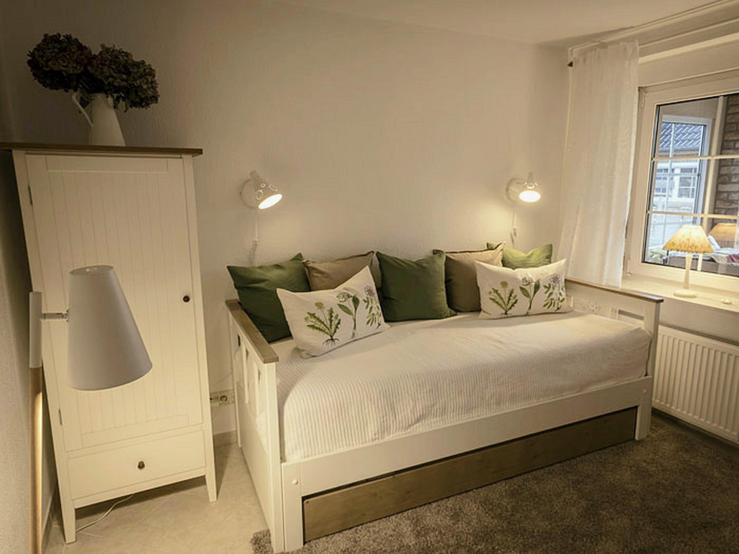 Ein zusätzliches Kinderbett stellen wir auf Nachfrage gern zur Verfügung. Die kleine Küche ist vollumfänglich eingerichtet (Herd, Backofen, Kühlschrank, Spülmaschine) und hat einen kleinen Esstisch für zwei Personen. Im kleinen Bad befindet sich neben dem WC eine Dusche. Bettwäsche, Hand- und Küchentücher sind inklusive. Bitte bringen Sie für Badeausflüge eigene Strandhandtücher mit. Außerdem können Sie einen Grill und eine Waschmaschine nutzen. Kleintiere wie Hühner, Minischafe und Häschen dürfen gerne von unseren Urlaubsgästen besucht und versorgt werden.