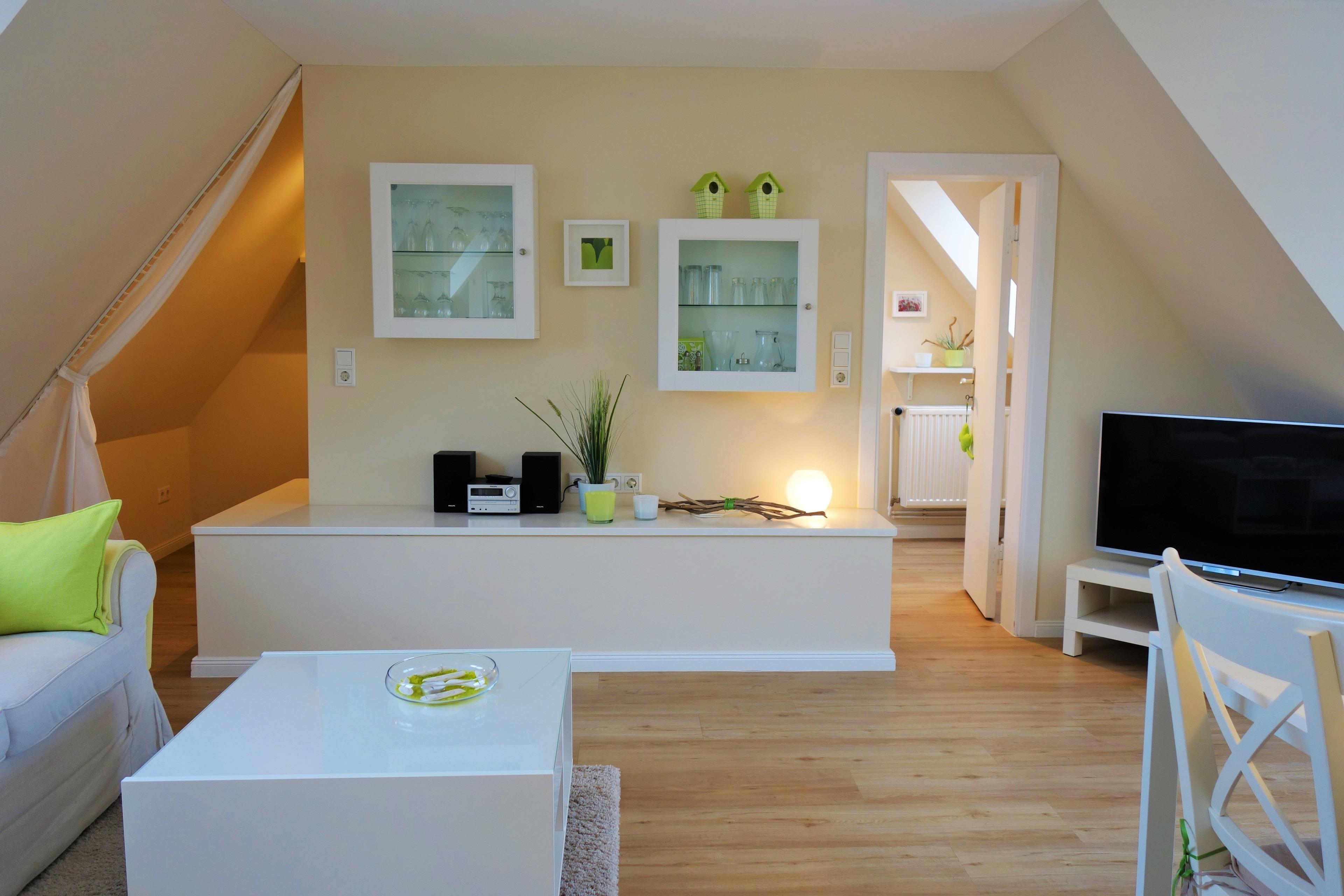 Da der Raum mit Sofaecke und Eßecke eingerichtet ist, müssten nur die Küche und das Bad von der Wohnung Gartentraum mitgenutzt werden.