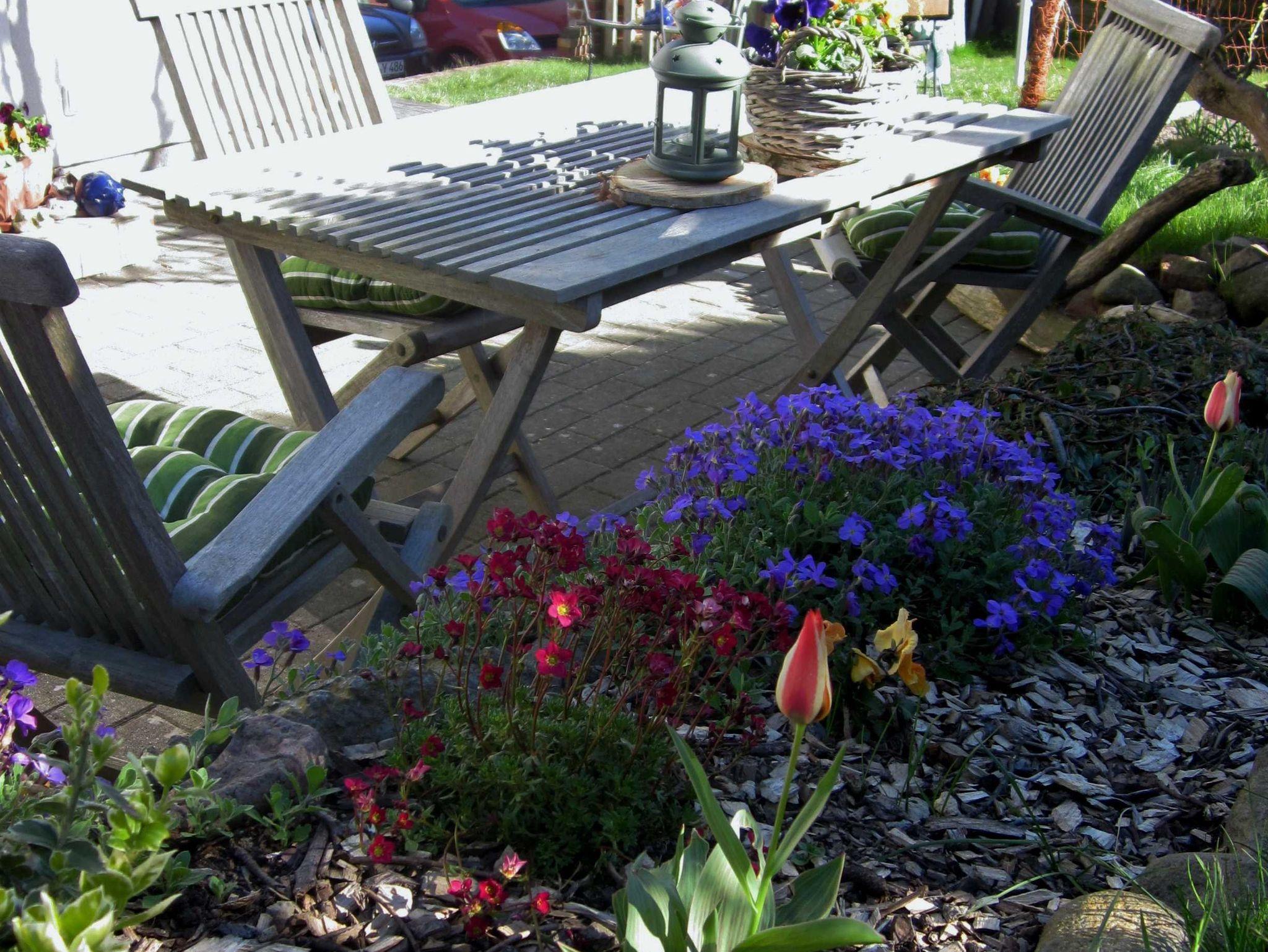 Unsere Ferienwohnung, 2018 renoviert, (Nichtraucherwohnung / süd-west Lage) ist ca. 27 qm groß und bietet Platz für 2 Personen. Sie verfügt über ein gemütliches Schlafzimmer, einen lichtdurchfluteten Wohnraum mit Küchenzeile sowie über ein Bad mit Dusche/WC. Auf der Terrasse, direkt im Garten, können Sie wunderbar frühstücken, grillen, entspannen oder ein gutes Buch genießen. Der Parkplatz befindet sich auf dem Grundstück.