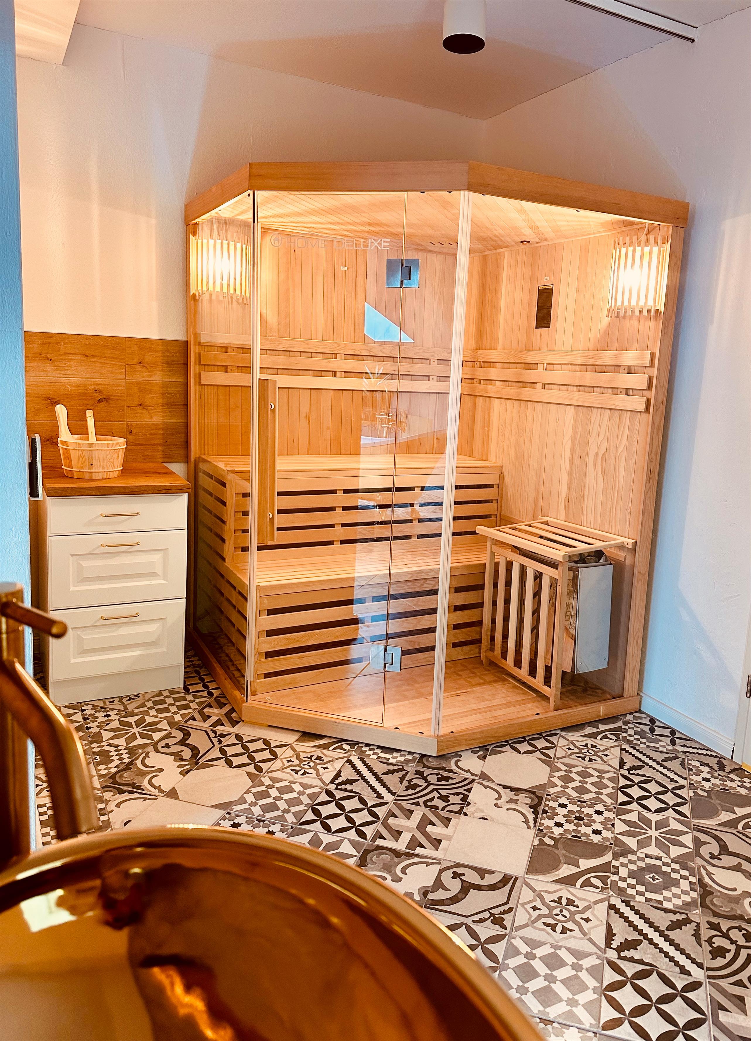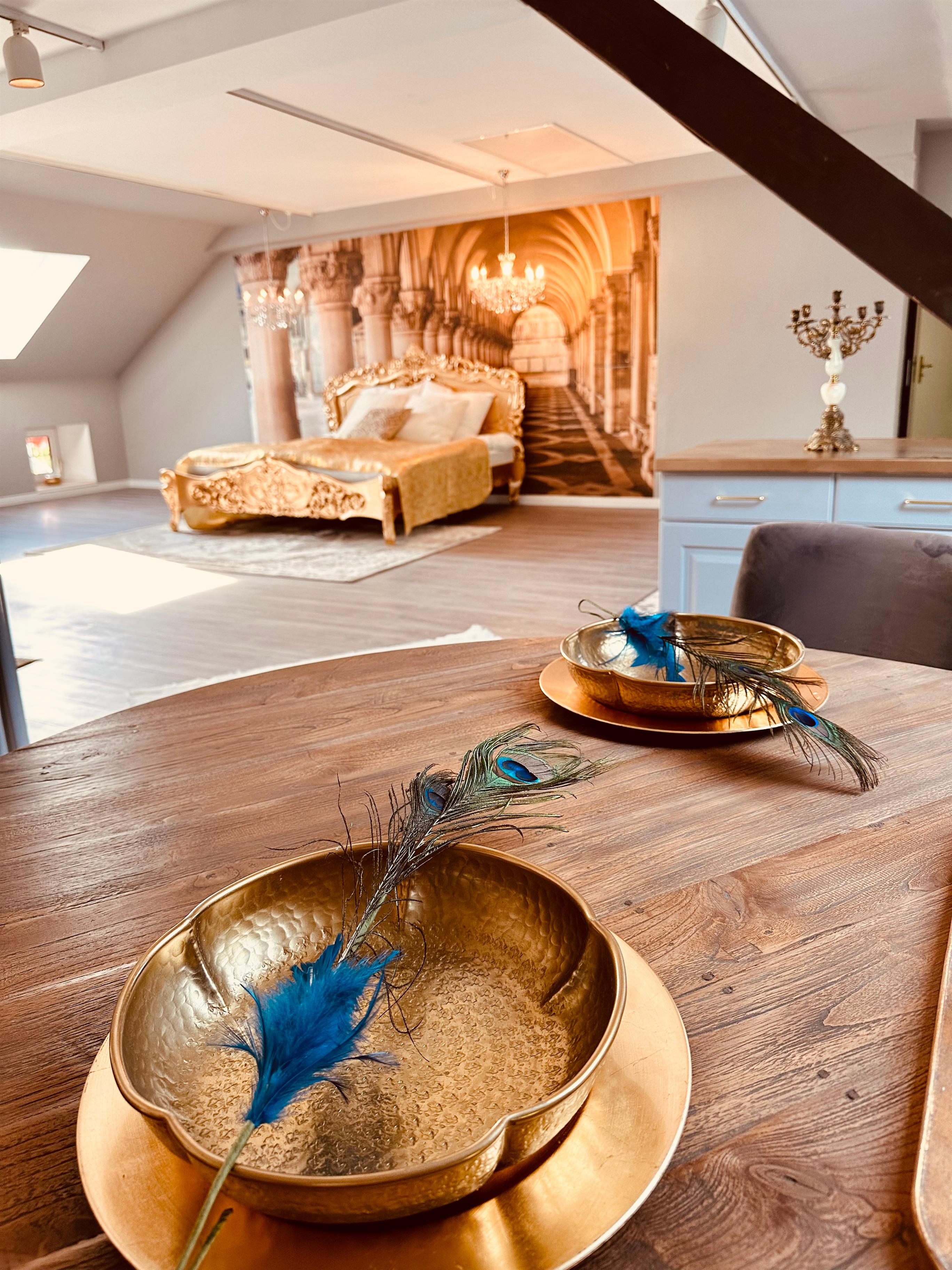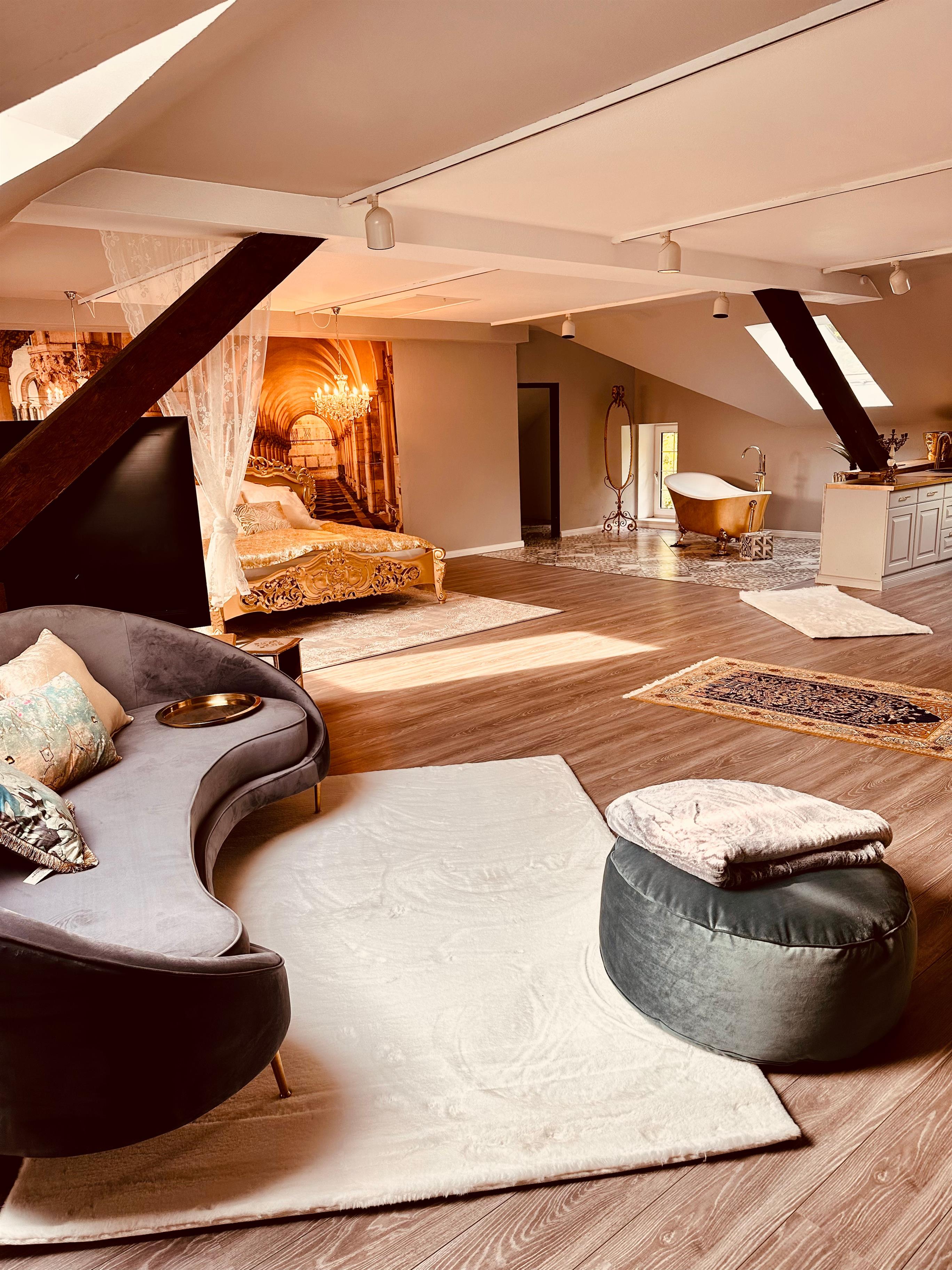 Machen Sie Ihren Romantikurlaub zu einer ganz persönlichen Erinnerung voller Ruhe und Zweisamkeit. Lassen Sie sich von unserem besonderen Ambiente verzaubern. Perfekte Location für einen wundervollen Heiratsantrag oder Ihren persönlichen Romantikurlaub in einer luxoriösen Suite. Hier erwartet Sie eine Studiosuite, frisch renoviert, kombiniert mit besonderen Details: goldenes Doppelbett, Badewanne im Raum, offene Küche, Saunabereich....