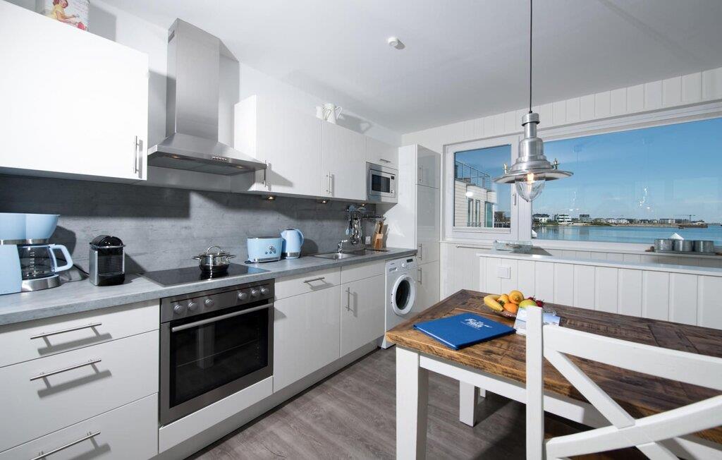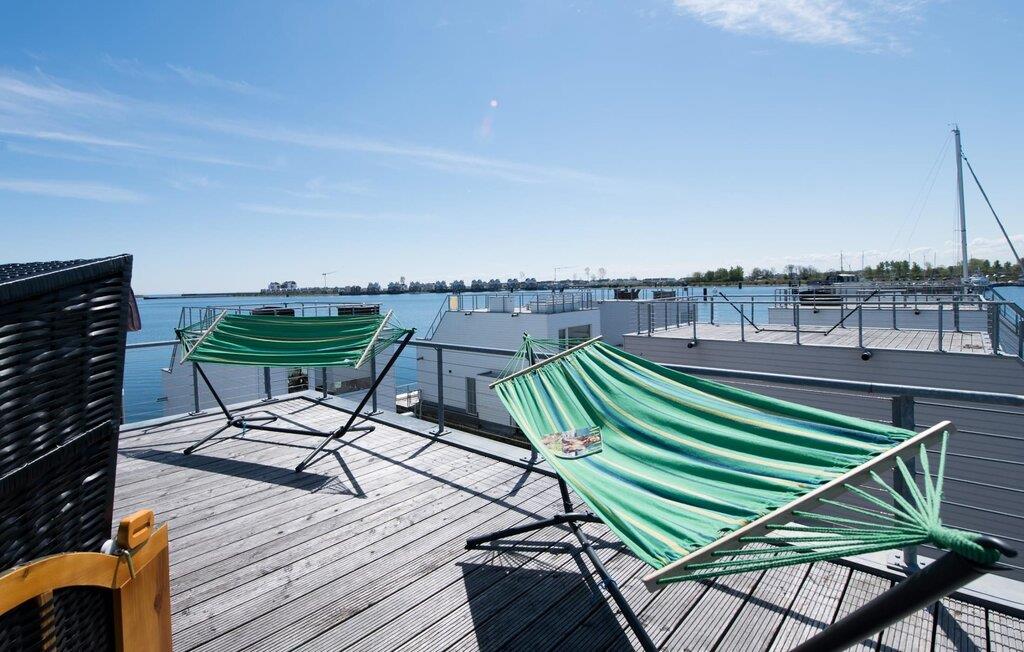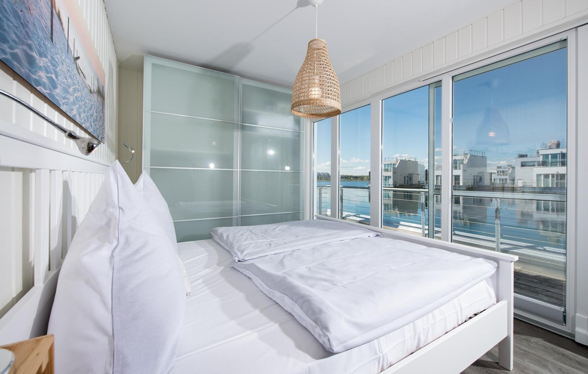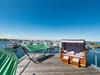 Vand så langt øjet rækker. Det betagende landskab kan nydes gennem gulv-til-loft panoramavinduer, og tagterrassen byder på en spektakulær 360-graders udsigt over Slien, Østersøen og marinaen. På tagterrassen finder I en strandstol, der inviterer jer til at tilbringe afslappende timer med en betagende udsigt. Østersøen er kun en badestige væk, og sandstranden i Baltic Sea Resort kan nås til fods. I den mørke årstid giver gulvvarme og sauna hyggelig komfort, da wellness-programmet ombord er et must. Udover havnebiografen sørger Smart TV med hjemmeunderholdningsprogram for underholdning.