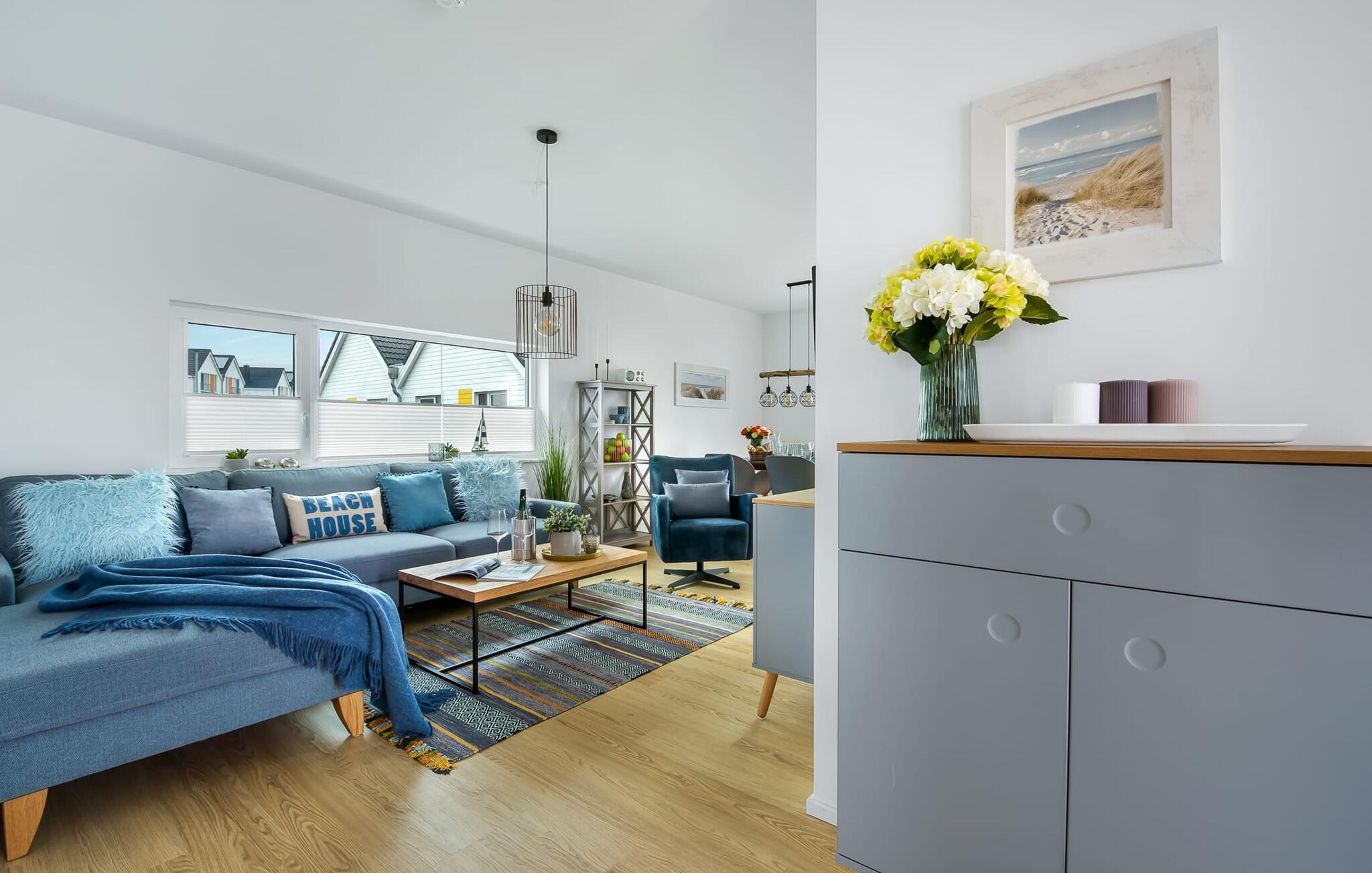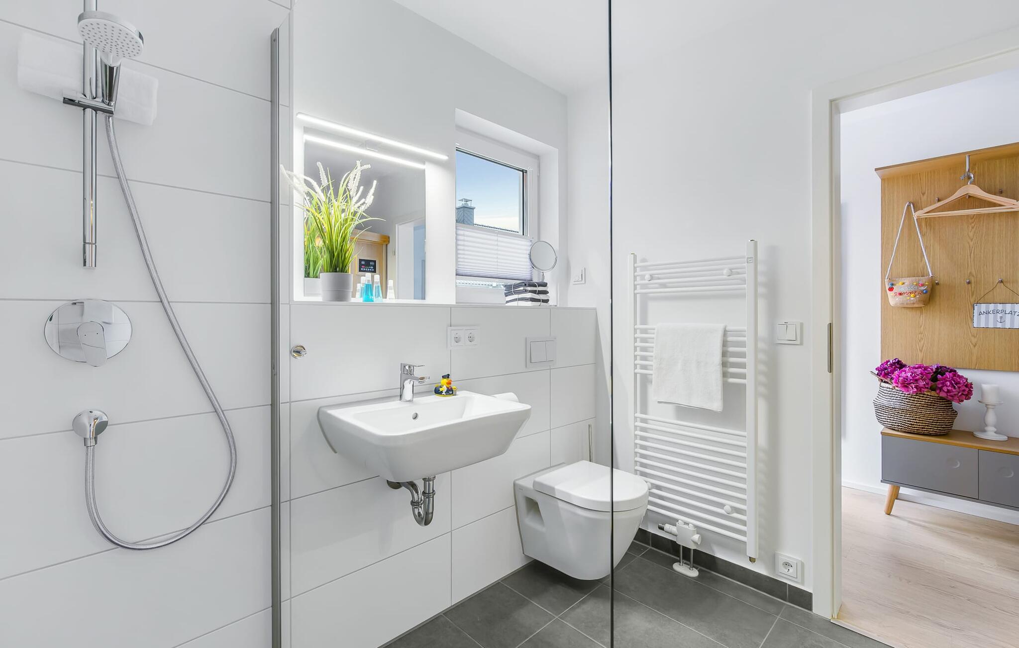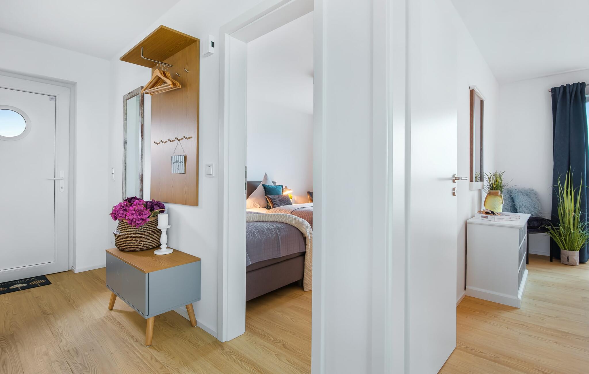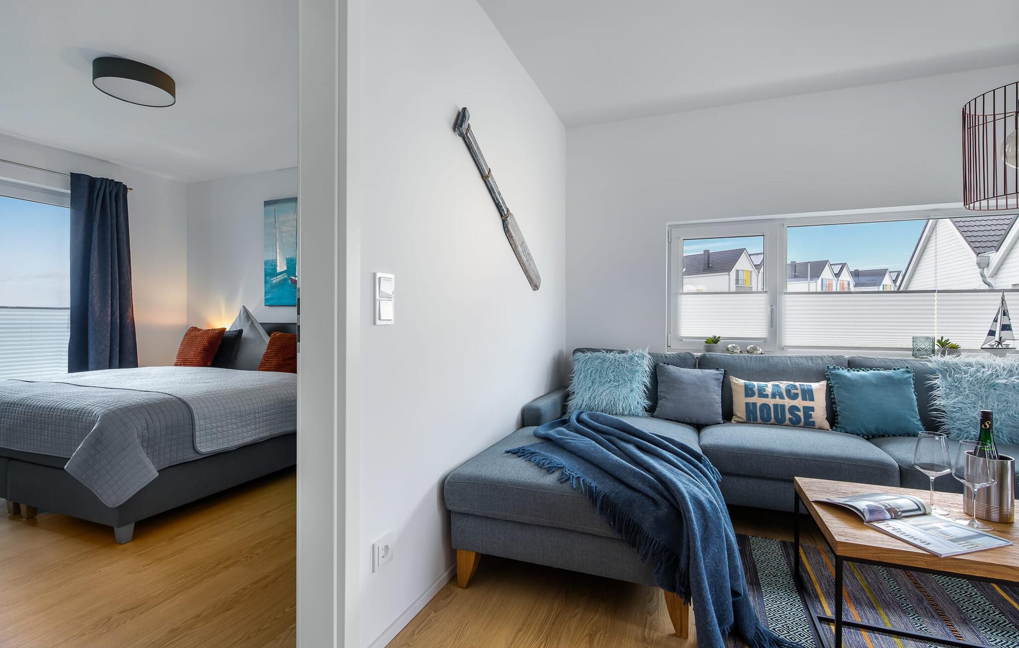 Hvem drømmer ikke om at eje sit eget hus? Måske endda jeres egen sejlbåd? Nå, KLEINE KOGGE er ikke et rigtigt sejlskib, men det er et rigtigt hus! Et parcelhus ikke langt fra den smukke Weidefelder sandstrand direkte ved Østersøen. Bedste betingelser for en vellykket ferie! Moderne og kærligt indrettet i skandinavisk stil, KLEINE KOGGE byder jer hjertelig velkommen og lover en vidunderlig ferie. Vinduerne fra gulv til loft i den åbne stue/alrum giver rummelighed og lader solen skinne. Herfra og det tilstødende køkken kan I komme ind på terrassen og hygge jer. At nyde retterne tilberedt i det veludstyrede køkken her er ren ferie. Gulvvarmen og pejsen sørger for hyggehygge i KLEINEN KOGGE selv i den køligere årstid. Den komfortable opholdsstue med fjernsyn inviterer jer til at have glade aftener og masser af afslapning. De to soveværelser er hver indrettet med en dobbelt boxmadrasser og garanterer en sund søvn. Der er et andet fjernsyn i det ene soveværelse. programmet fortsætter på badeværelset, hvor en bruser i gulvniveau og en infrarød kabine venter på at forkæle jer. jeres bil kan også føles godt tilpas, da den har en parkeringsplads lige ved siden af huset. Vores favoritsted: En hyggelig grillaften på terrassen og nyd ferien i fulde drag... Bemærk venligst: OstseeResort Olpenitz er meget populært, og der bygges fortsat i parken. Ikke desto mindre kan I se frem til en 5-stjernet standard og et førsteklasses ophold. Byggeaktiviteterne kommer ikke til at forstyrre jer på ferien, og derfor gives der ikke yderligere afslag i prisen.
