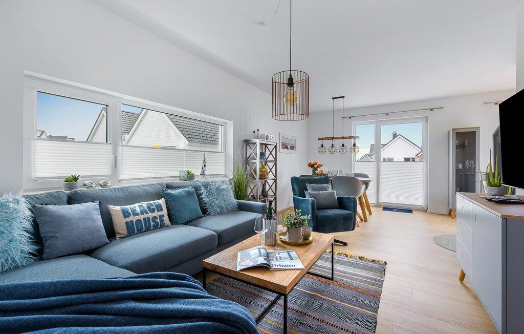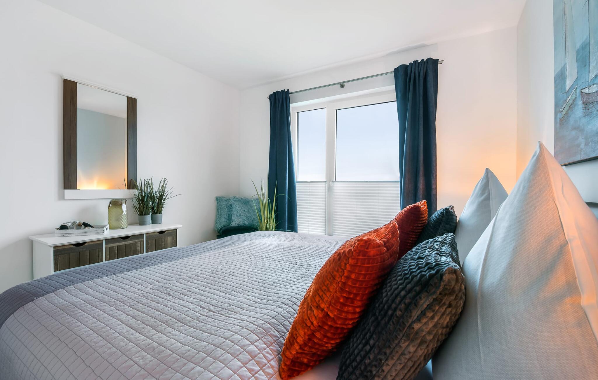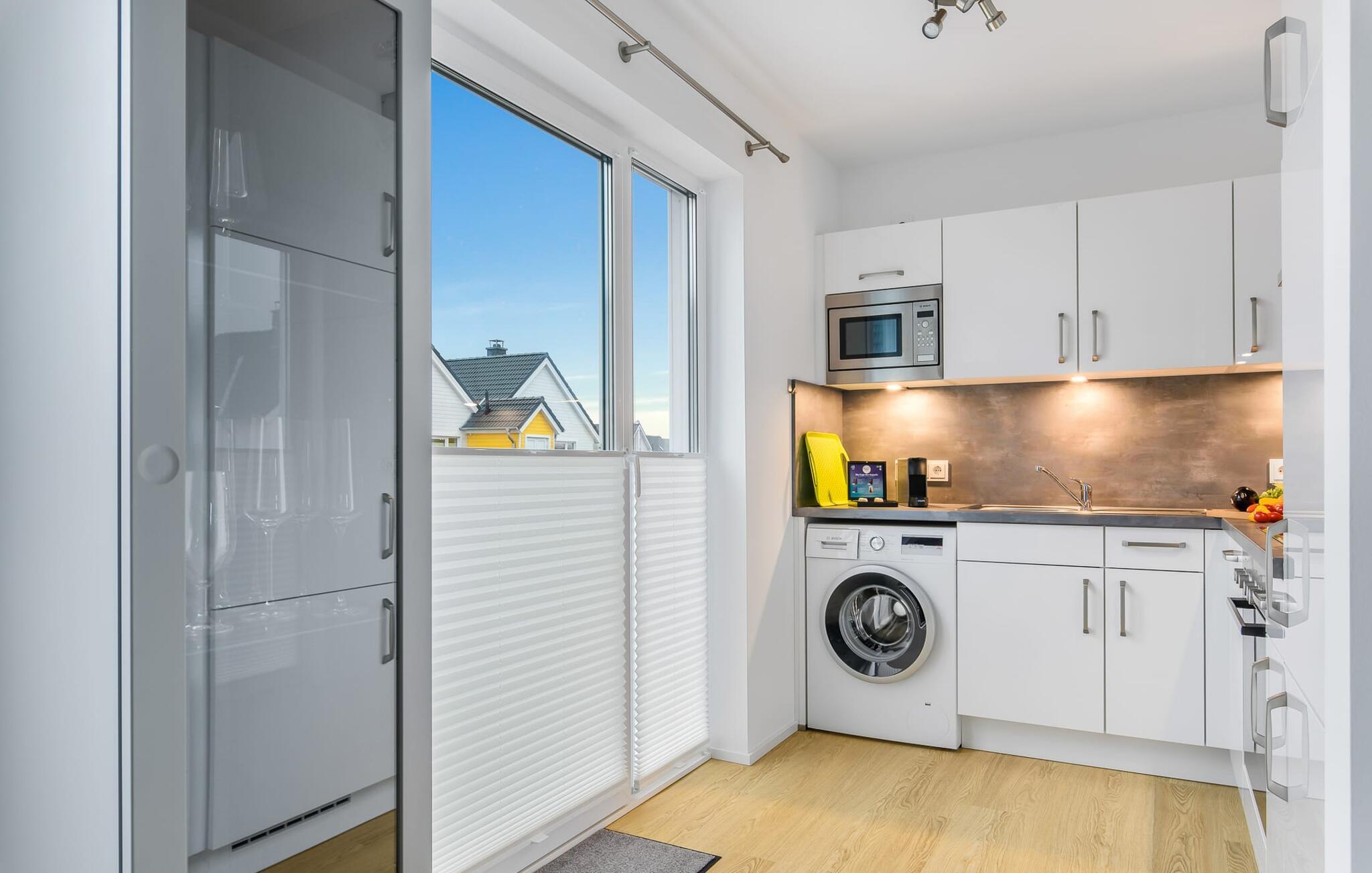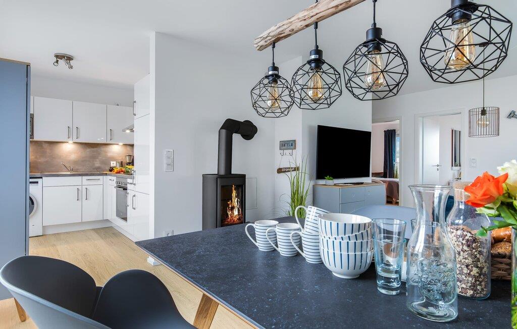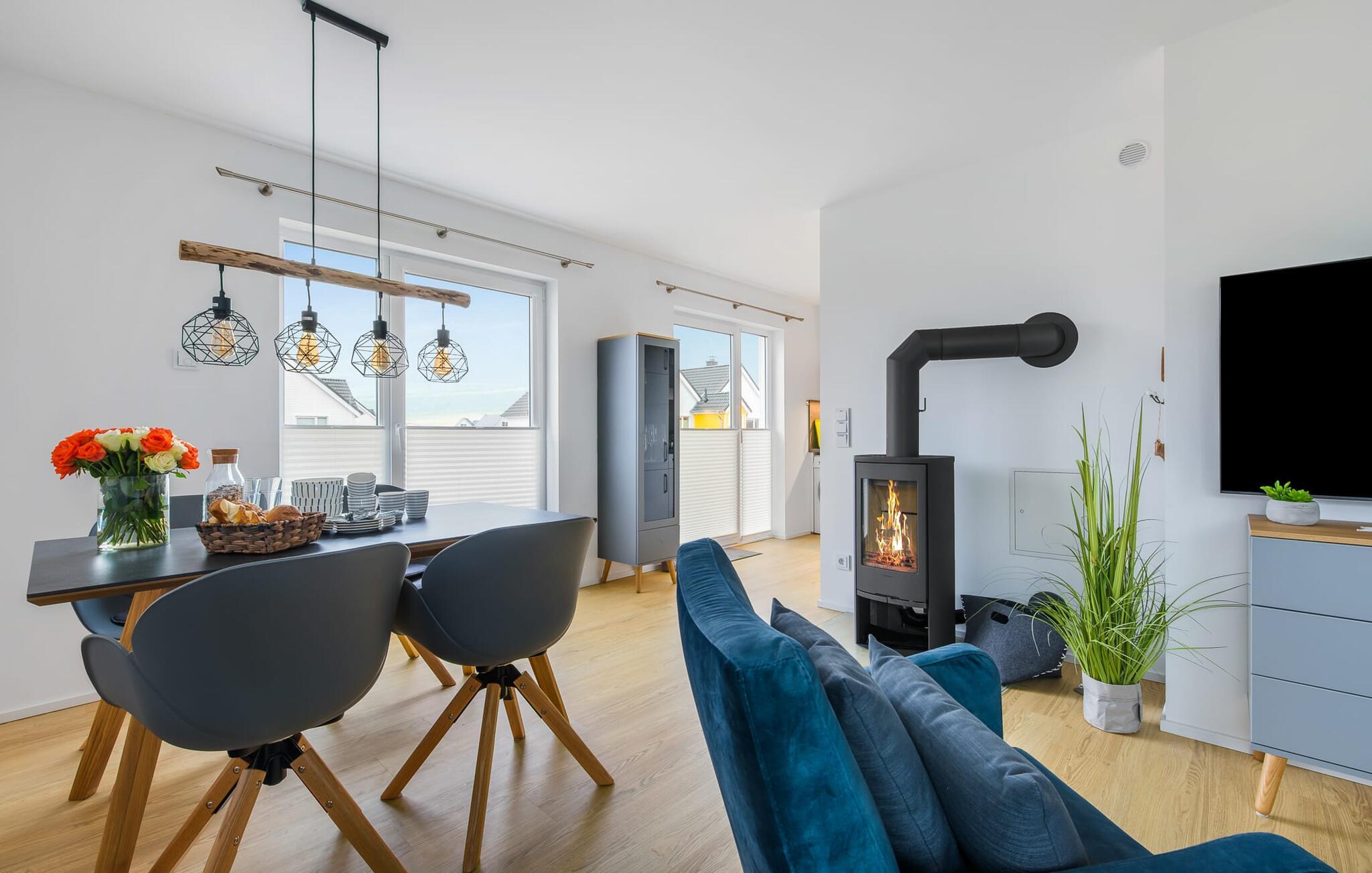 Hvem drømmer ikke om at eje sit eget hus? Måske endda jeres egen sejlbåd? Nå, KLEINE KOGGE er ikke et rigtigt sejlskib, men det er et rigtigt hus! Et parcelhus ikke langt fra den smukke Weidefelder sandstrand direkte ved Østersøen. Bedste betingelser for en vellykket ferie! Moderne og kærligt indrettet i skandinavisk stil, KLEINE KOGGE byder jer hjertelig velkommen og lover en vidunderlig ferie. Vinduerne fra gulv til loft i den åbne stue/alrum giver rummelighed og lader solen skinne. Herfra og det tilstødende køkken kan I komme ind på terrassen og hygge jer. At nyde retterne tilberedt i det veludstyrede køkken her er ren ferie. Gulvvarmen og pejsen sørger for hyggehygge i KLEINEN KOGGE selv i den køligere årstid. Den komfortable opholdsstue med fjernsyn inviterer jer til at have glade aftener og masser af afslapning. De to soveværelser er hver indrettet med en dobbelt boxmadrasser og garanterer en sund søvn. Der er et andet fjernsyn i det ene soveværelse. programmet fortsætter på badeværelset, hvor en bruser i gulvniveau og en infrarød kabine venter på at forkæle jer. jeres bil kan også føles godt tilpas, da den har en parkeringsplads lige ved siden af huset. Vores favoritsted: En hyggelig grillaften på terrassen og nyd ferien i fulde drag... Bemærk venligst: OstseeResort Olpenitz er meget populært, og der bygges fortsat i parken. Ikke desto mindre kan I se frem til en 5-stjernet standard og et førsteklasses ophold. Byggeaktiviteterne kommer ikke til at forstyrre jer på ferien, og derfor gives der ikke yderligere afslag i prisen.