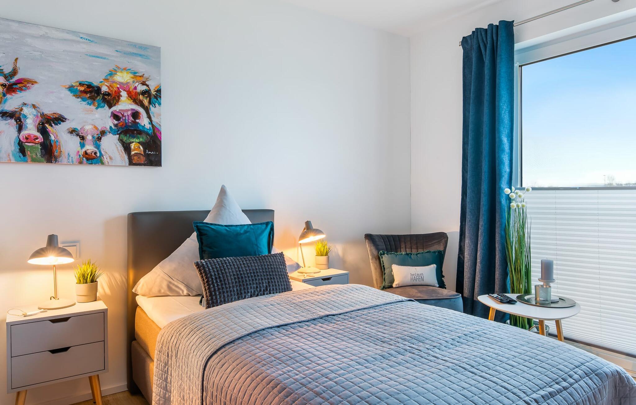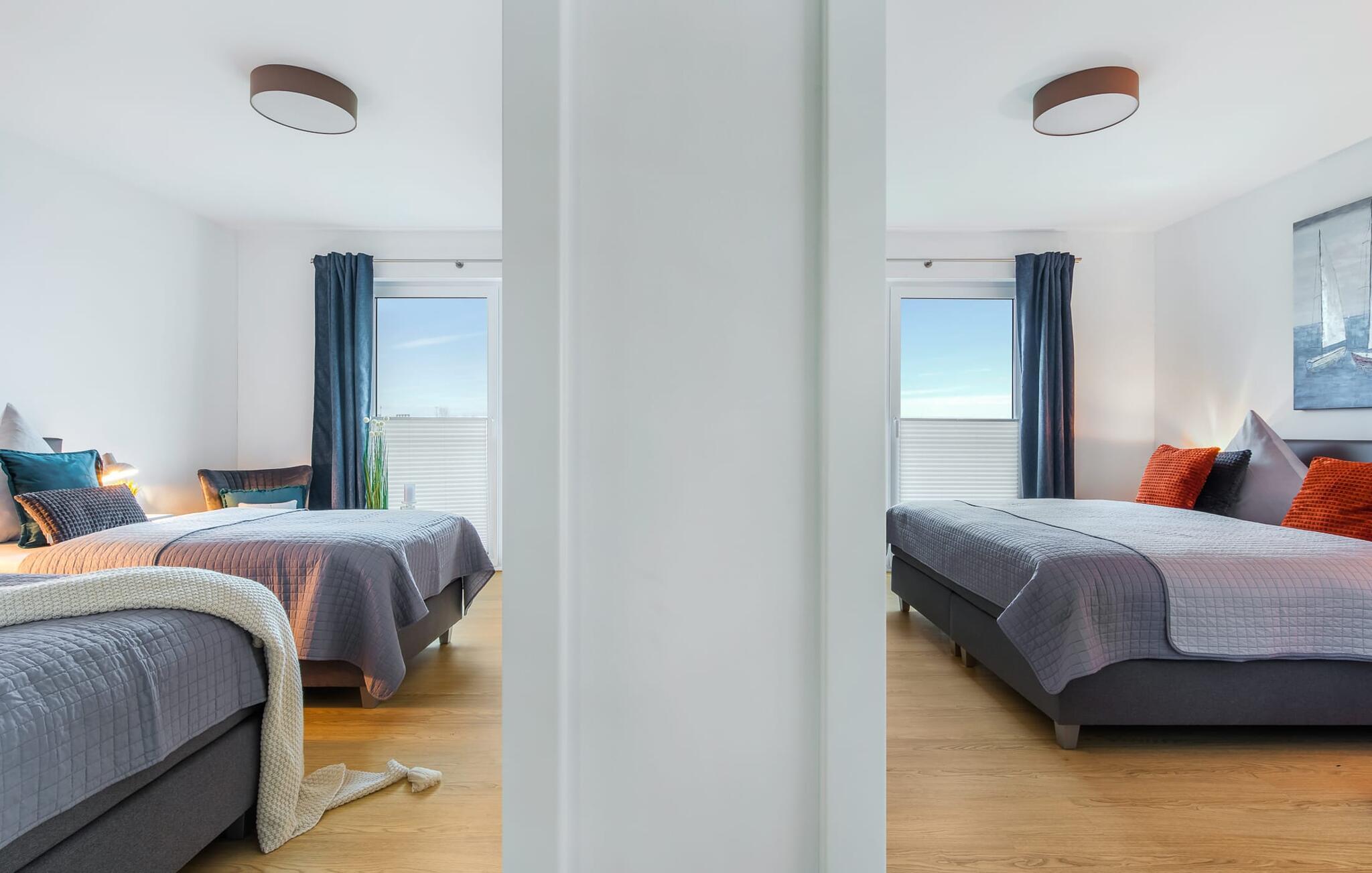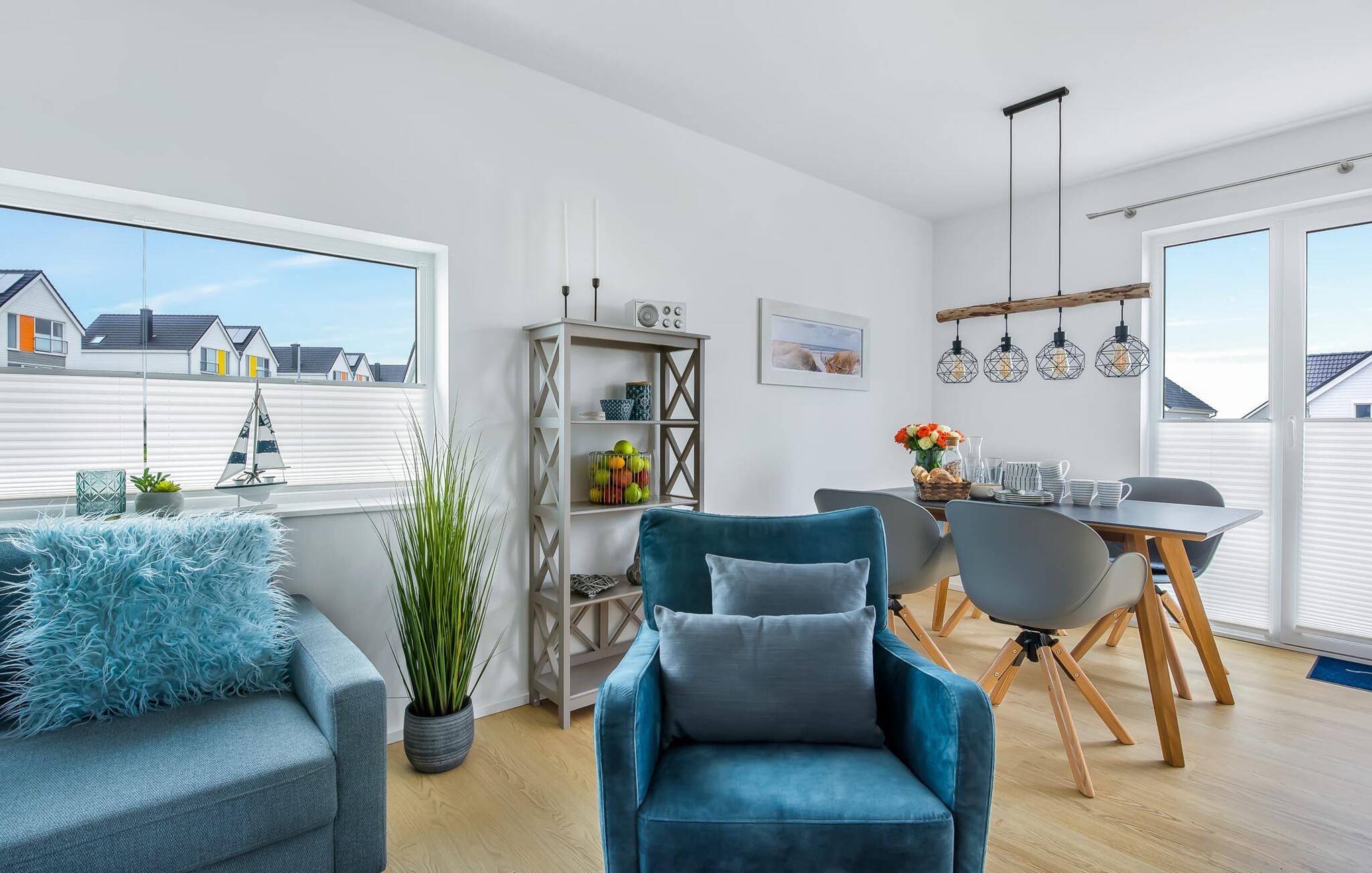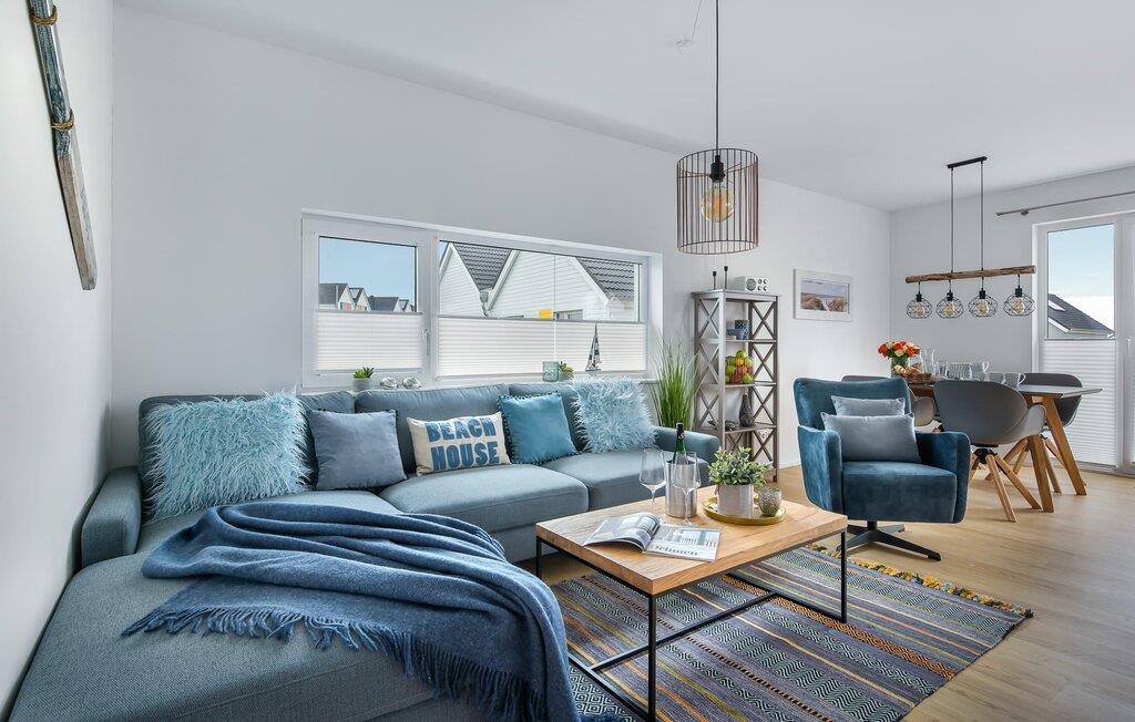 Hvem drømmer ikke om at eje sit eget hus? Måske endda jeres egen sejlbåd? Nå, KLEINE KOGGE er ikke et rigtigt sejlskib, men det er et rigtigt hus! Et parcelhus ikke langt fra den smukke Weidefelder sandstrand direkte ved Østersøen. Bedste betingelser for en vellykket ferie! Moderne og kærligt indrettet i skandinavisk stil, KLEINE KOGGE byder jer hjertelig velkommen og lover en vidunderlig ferie. Vinduerne fra gulv til loft i den åbne stue/alrum giver rummelighed og lader solen skinne. Herfra og det tilstødende køkken kan I komme ind på terrassen og hygge jer. At nyde retterne tilberedt i det veludstyrede køkken her er ren ferie. Gulvvarmen og pejsen sørger for hyggehygge i KLEINEN KOGGE selv i den køligere årstid. Den komfortable opholdsstue med fjernsyn inviterer jer til at have glade aftener og masser af afslapning. De to soveværelser er hver indrettet med en dobbelt boxmadrasser og garanterer en sund søvn. Der er et andet fjernsyn i det ene soveværelse. programmet fortsætter på badeværelset, hvor en bruser i gulvniveau og en infrarød kabine venter på at forkæle jer. jeres bil kan også føles godt tilpas, da den har en parkeringsplads lige ved siden af huset. Vores favoritsted: En hyggelig grillaften på terrassen og nyd ferien i fulde drag... Bemærk venligst: OstseeResort Olpenitz er meget populært, og der bygges fortsat i parken. Ikke desto mindre kan I se frem til en 5-stjernet standard og et førsteklasses ophold. Byggeaktiviteterne kommer ikke til at forstyrre jer på ferien, og derfor gives der ikke yderligere afslag i prisen.