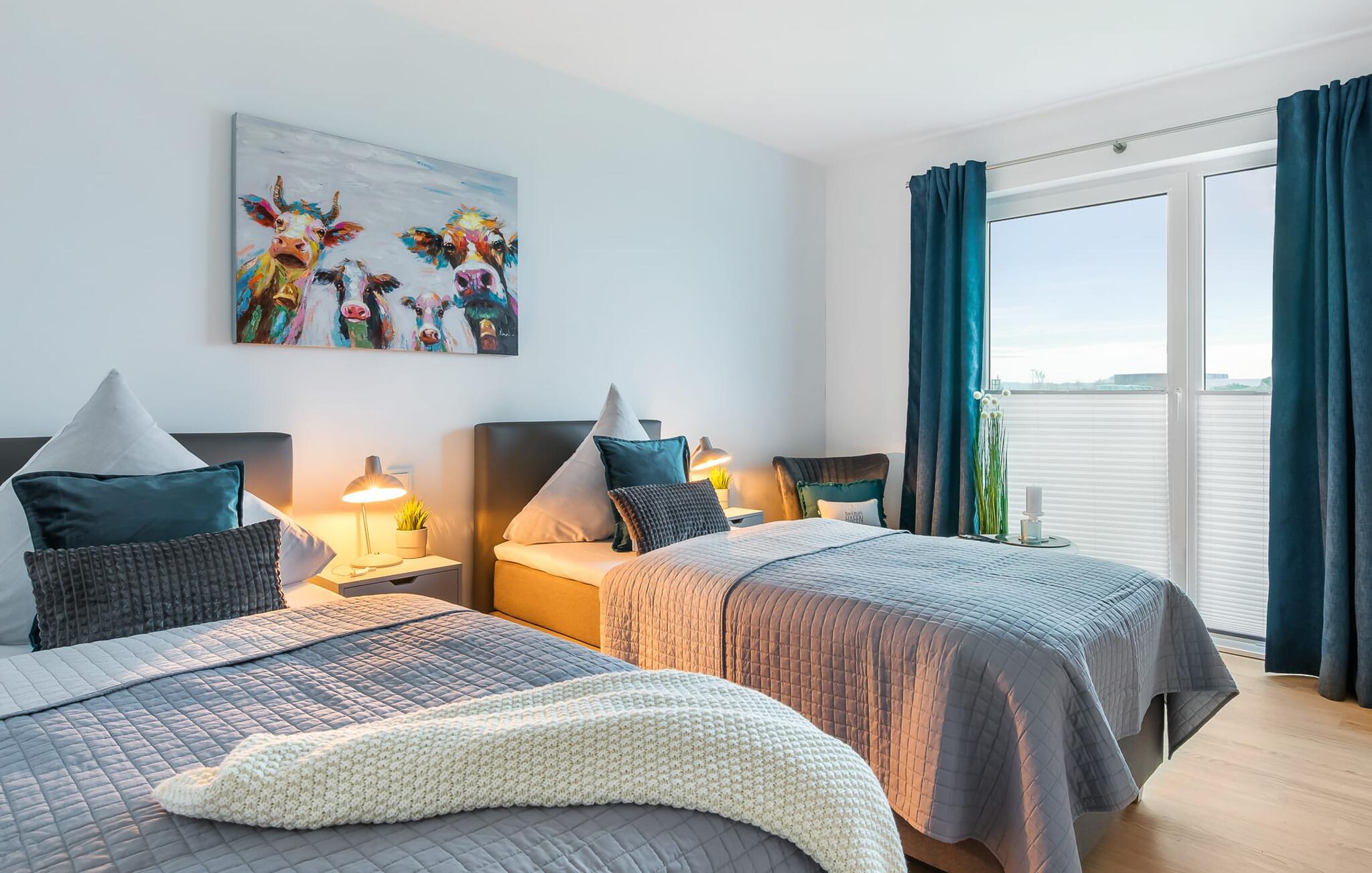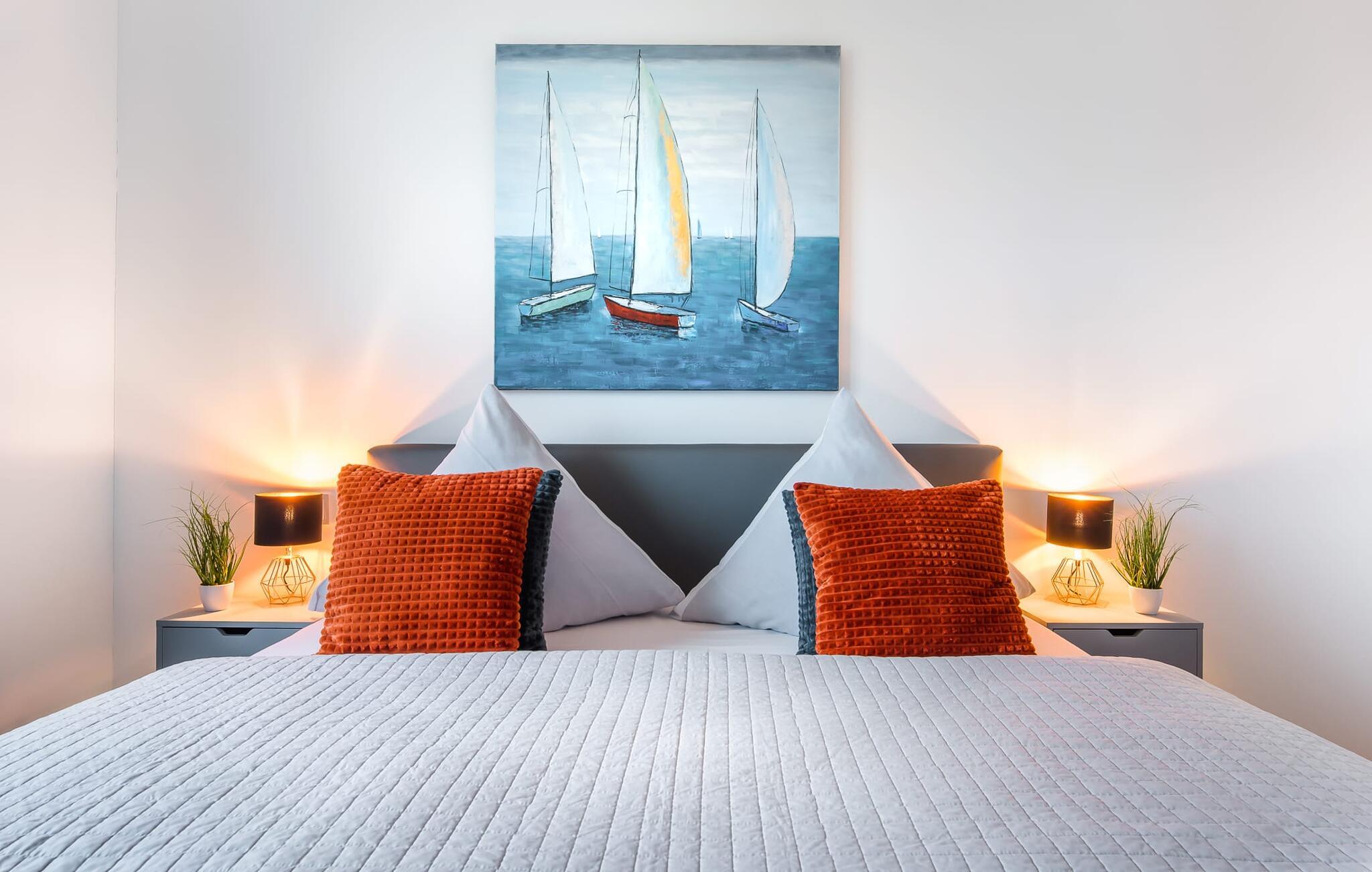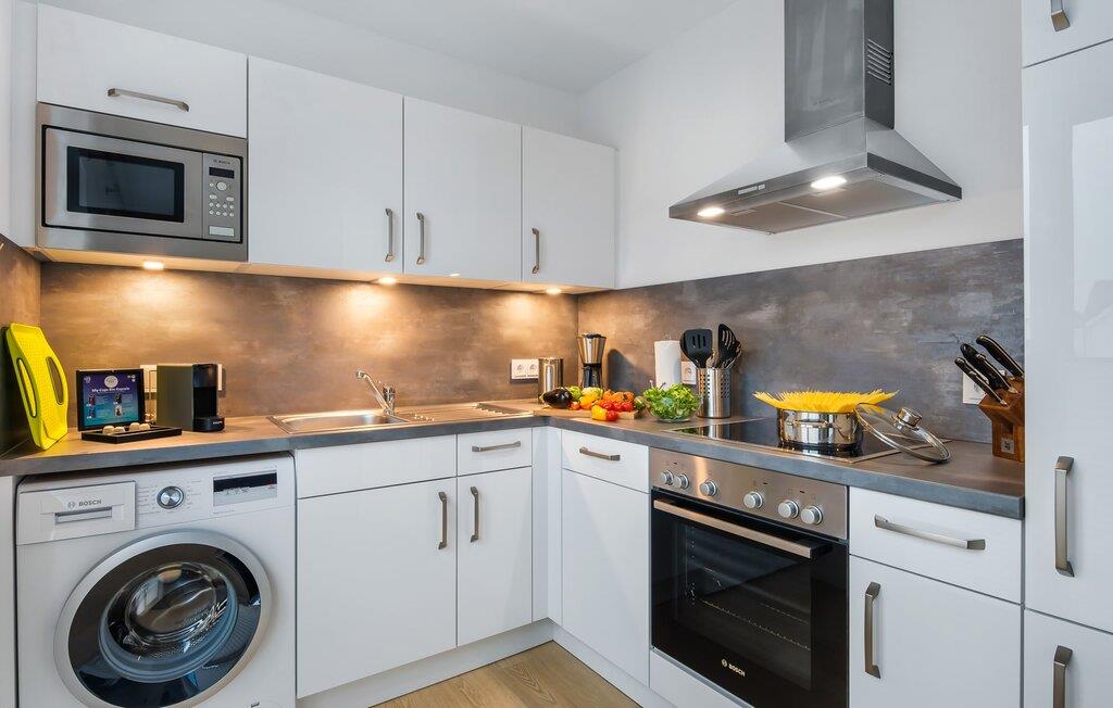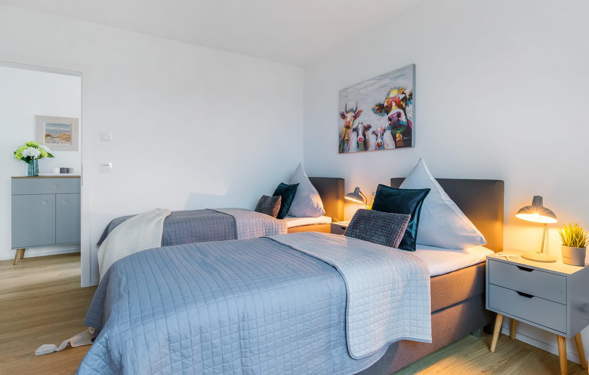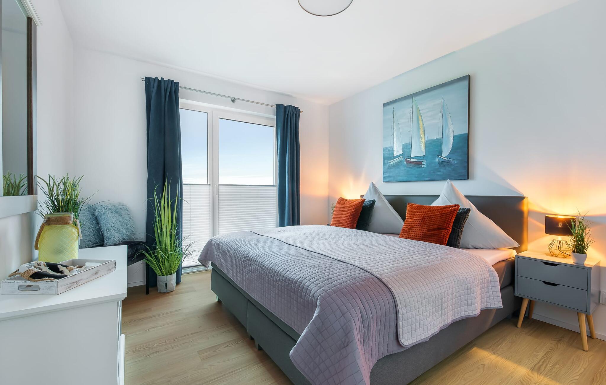 Hvem drømmer ikke om at eje sit eget hus? Måske endda jeres egen sejlbåd? Nå, KLEINE KOGGE er ikke et rigtigt sejlskib, men det er et rigtigt hus! Et parcelhus ikke langt fra den smukke Weidefelder sandstrand direkte ved Østersøen. Bedste betingelser for en vellykket ferie! Moderne og kærligt indrettet i skandinavisk stil, KLEINE KOGGE byder jer hjertelig velkommen og lover en vidunderlig ferie. Vinduerne fra gulv til loft i den åbne stue/alrum giver rummelighed og lader solen skinne. Herfra og det tilstødende køkken kan I komme ind på terrassen og hygge jer. At nyde retterne tilberedt i det veludstyrede køkken her er ren ferie. Gulvvarmen og pejsen sørger for hyggehygge i KLEINEN KOGGE selv i den køligere årstid. Den komfortable opholdsstue med fjernsyn inviterer jer til at have glade aftener og masser af afslapning. De to soveværelser er hver indrettet med en dobbelt boxmadrasser og garanterer en sund søvn. Der er et andet fjernsyn i det ene soveværelse. programmet fortsætter på badeværelset, hvor en bruser i gulvniveau og en infrarød kabine venter på at forkæle jer. jeres bil kan også føles godt tilpas, da den har en parkeringsplads lige ved siden af huset. Vores favoritsted: En hyggelig grillaften på terrassen og nyd ferien i fulde drag... Bemærk venligst: OstseeResort Olpenitz er meget populært, og der bygges fortsat i parken. Ikke desto mindre kan I se frem til en 5-stjernet standard og et førsteklasses ophold. Byggeaktiviteterne kommer ikke til at forstyrre jer på ferien, og derfor gives der ikke yderligere afslag i prisen.