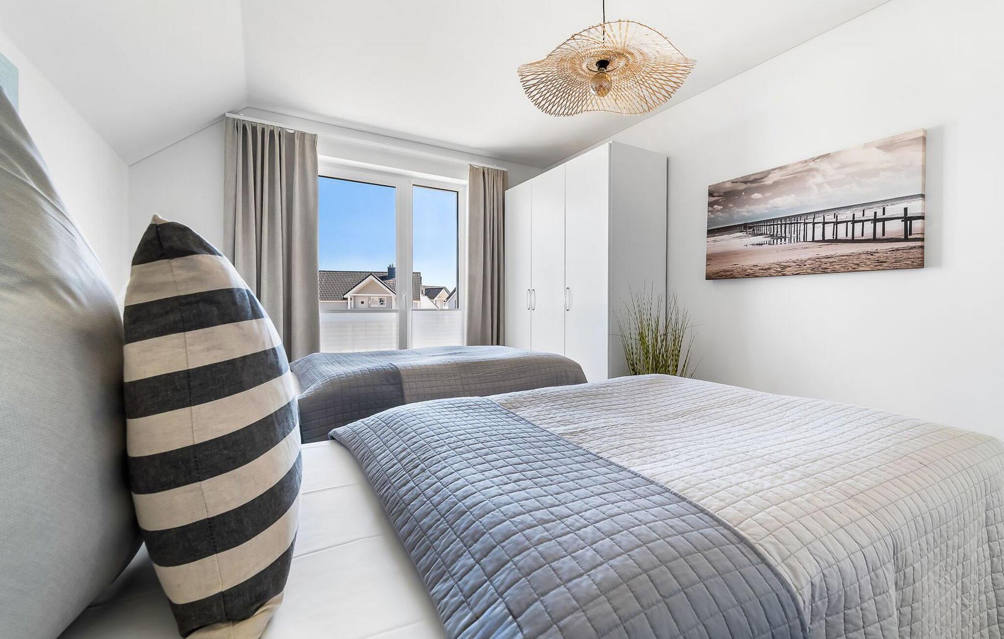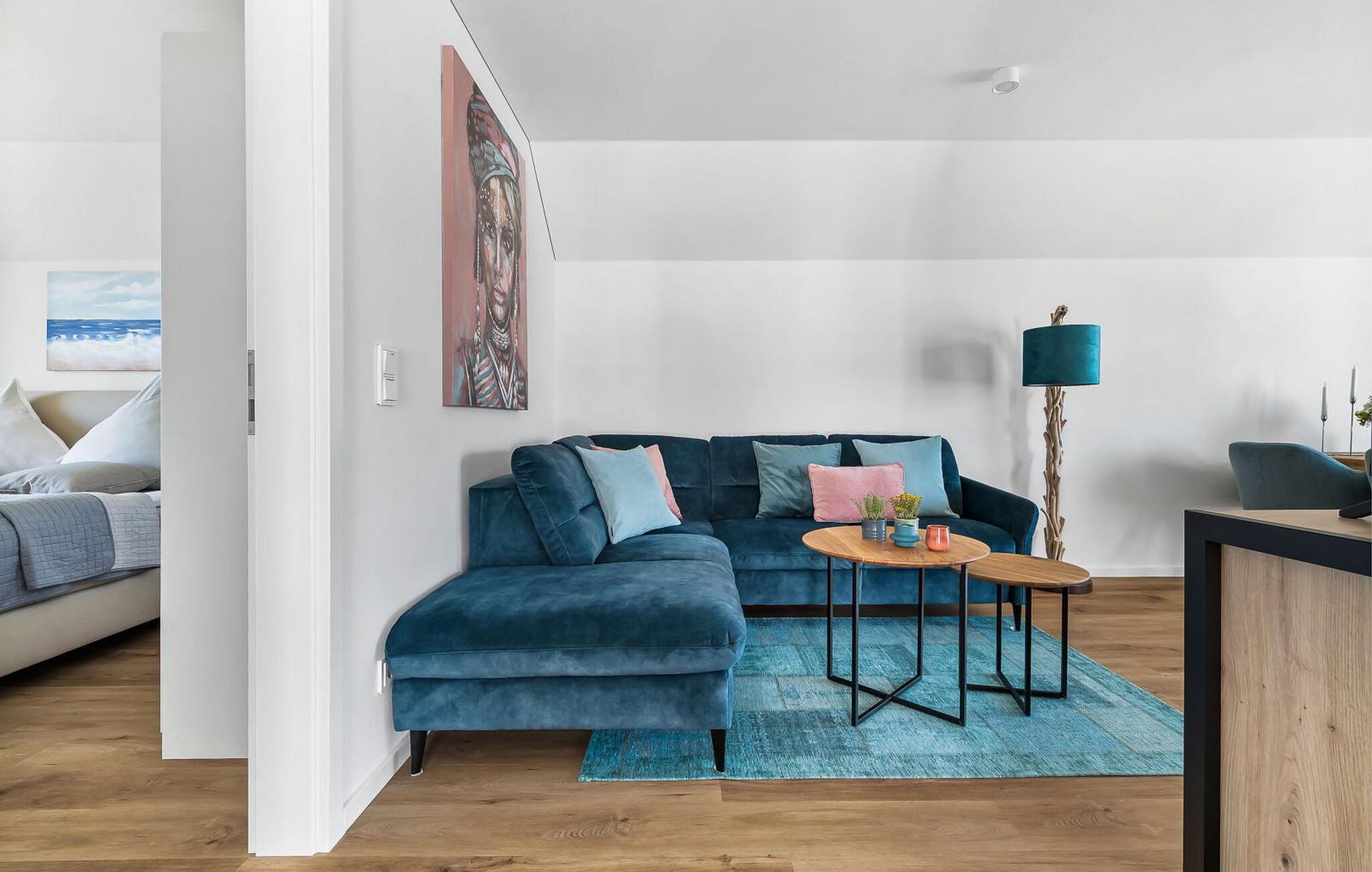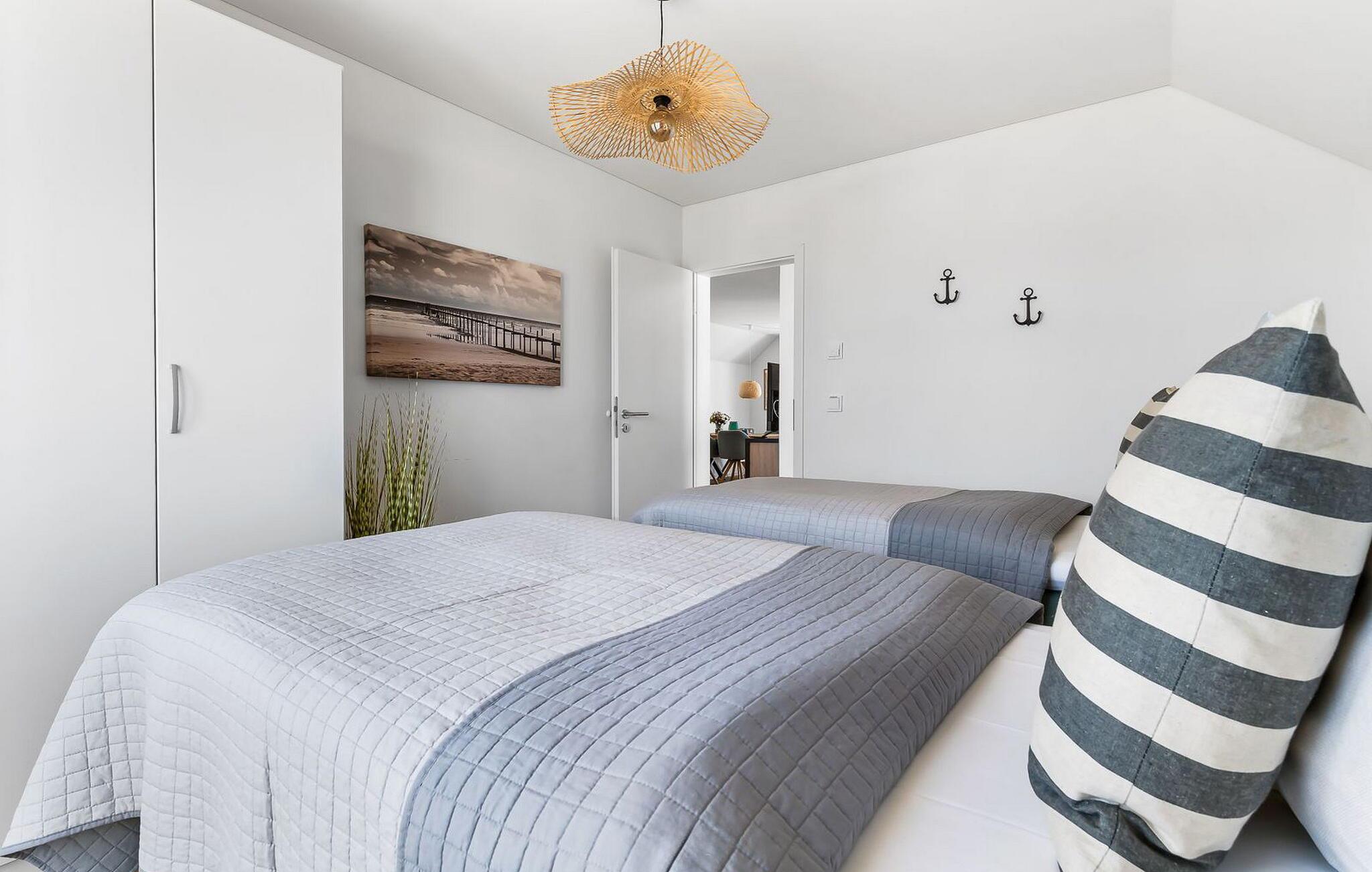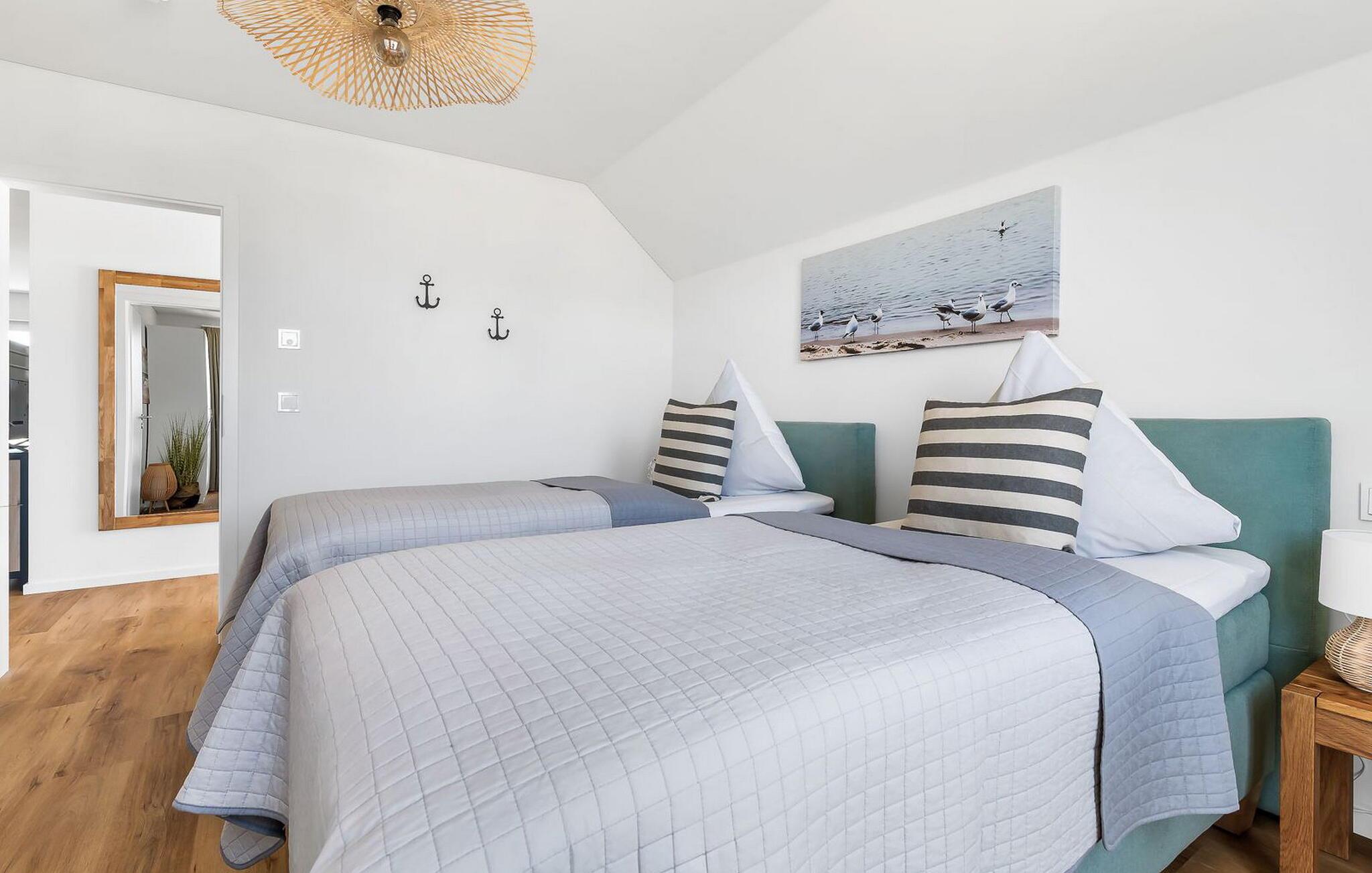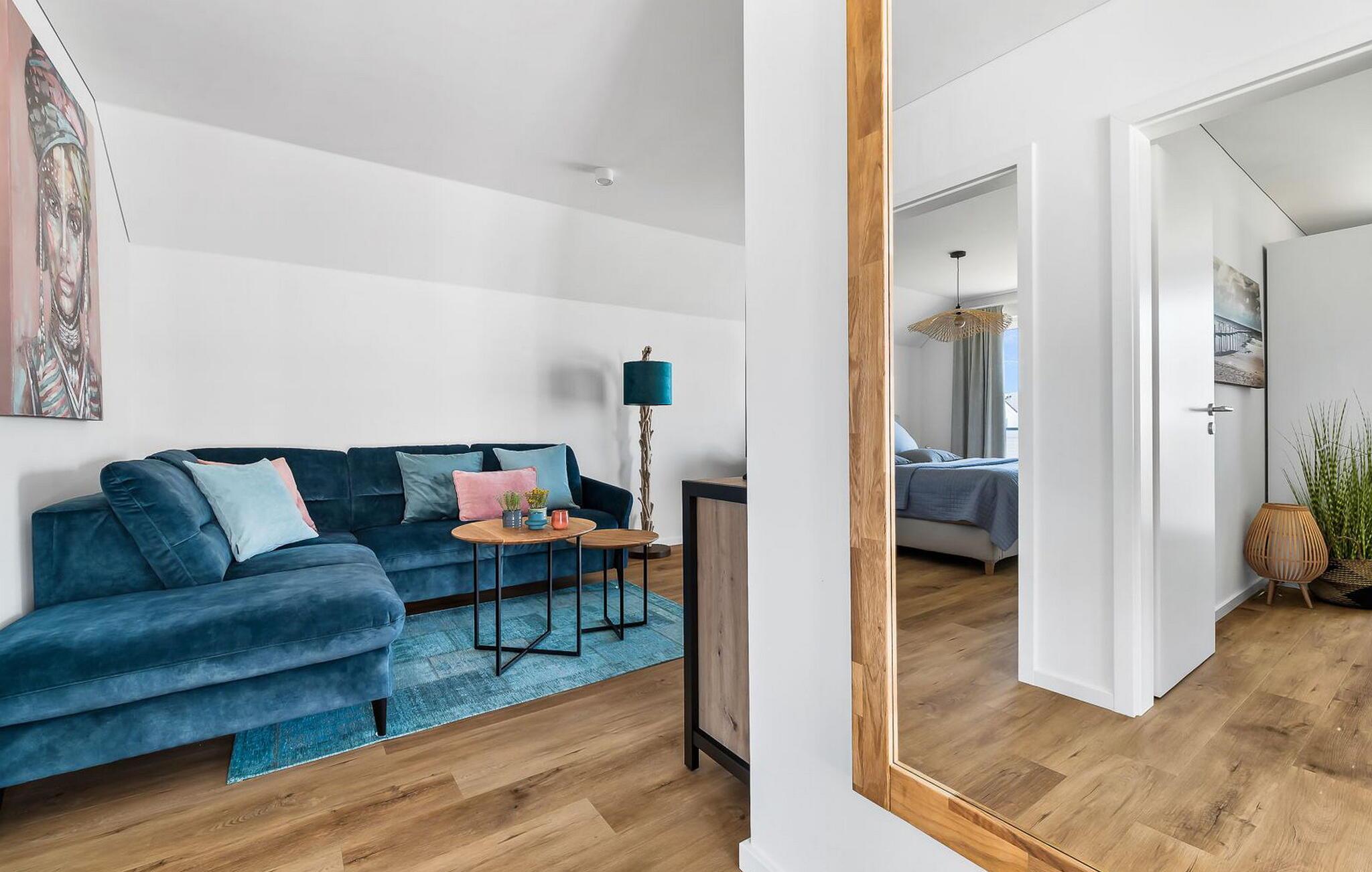 Denne moderne og komfortabelt indrettede ferielejlighed "Kleines Glück" på 1. sal kan rumme op til fire personer. Med to soveværelser, et køkken åbent til stuen, en tilstødende terrasse og en spiseplads, er det perfekt til en afslappende ferie med familie eller venner. Ferielejlighedens beliggenhed er ganske enkelt uovertruffen: Stranden Weidefelder ligger kun få minutters gang væk, og havnepromenaden med dens talrige indkøbsmuligheder kan også hurtigt nås. I skal ikke langt for at spille en runde minigolf – banen ligger i umiddelbar nærhed. Stuen er smagfuldt indrettet og sikrer hyggelige aftener med hele familien. Soveværelserne er udstyret med en dobbeltseng eller to enkeltsenge. Begge soveværelser har plisségardiner som mørklægningsmulighed. Til jeres egen lille wellness-oase er der en bruser i gulvniveau og en infrarød sauna på badeværelset. Myggenet og gulvvarme i hele lejligheden fuldender komforten. Der er en privat parkeringsplads foran boligen. Vores favoritsted: Afslut aftenen foran pejsen med en god bog og et glas vin. Bemærk venligst: OstseeResort Olpenitz er meget populært, og der bygges fortsat i parken. Ikke desto mindre kan I se frem til en 5-stjernet standard og et førsteklasses ophold. Byggeaktiviteterne kommer ikke til at forstyrre jer på ferien, og derfor gives der ikke yderligere afslag i prisen.