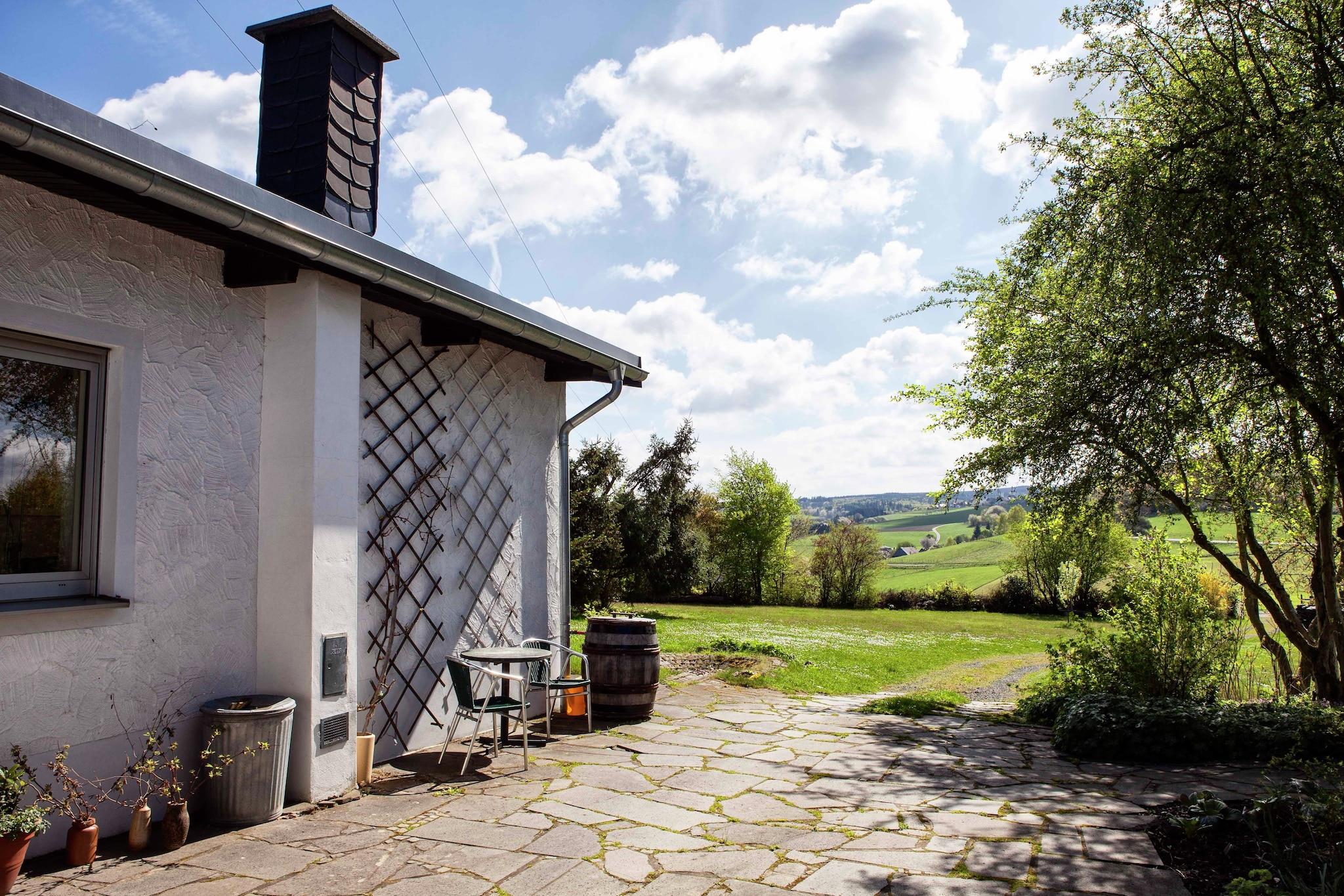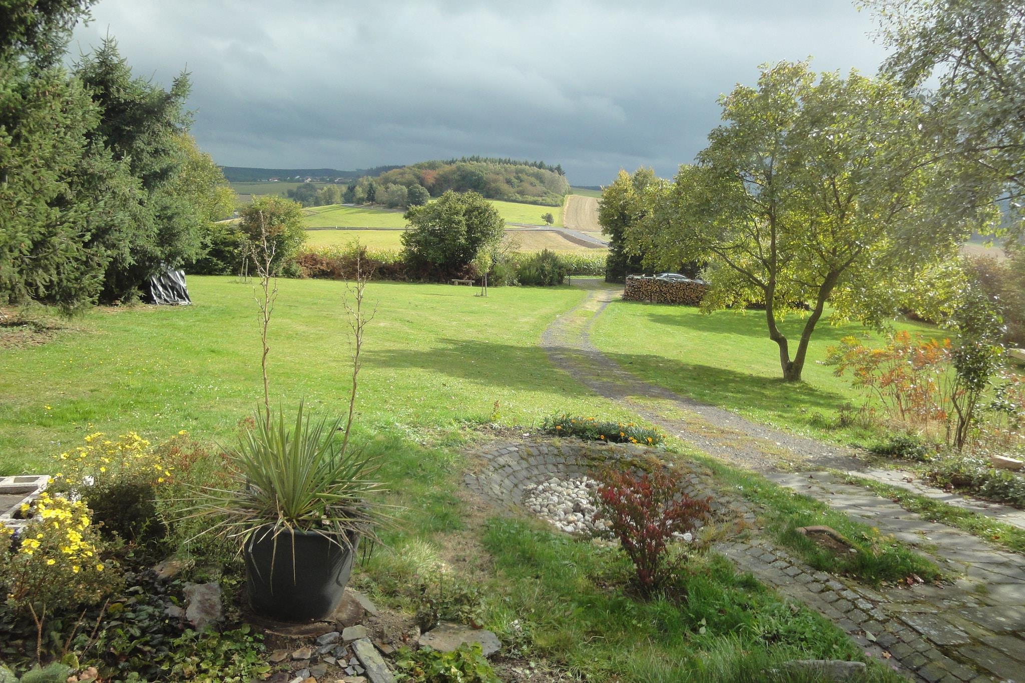 Dette feriehus (ca. 90 m2) ligger på en stor grund med i alt to huse i et smukt bakket landskab i Pilmeroth, en lille bondeby mellem Mosel og Hunsrück. Det er særligt velegnet til en familie på fire, der ønsker at udforske dette smukke hjørne af Tyskland. Du kan afslutte den begivenhedsrige dag i den private sauna. På grund af den vidunderlige beliggenhed på et bjerg, har du en vidunderlig udsigt over omgivelserne. Der er skove, bjerge, små landsbyer og gårde. Du kan lave mange smukke vandre- og mountainbiketure her. Der er også en række golfbaner i nærheden af Pilmeroth Feriehuset har en stor fælles have på ca 2500 m², det perfekte sted at drikke te om aftenen, snakke med andre gæster eller grille. Der er barnesenge til de yngre gæster samt legeredskaber og en sandkasse. Wi-Fi-adgang er kun tilgængelig efter at have underskrevet brugsbetingelserne.