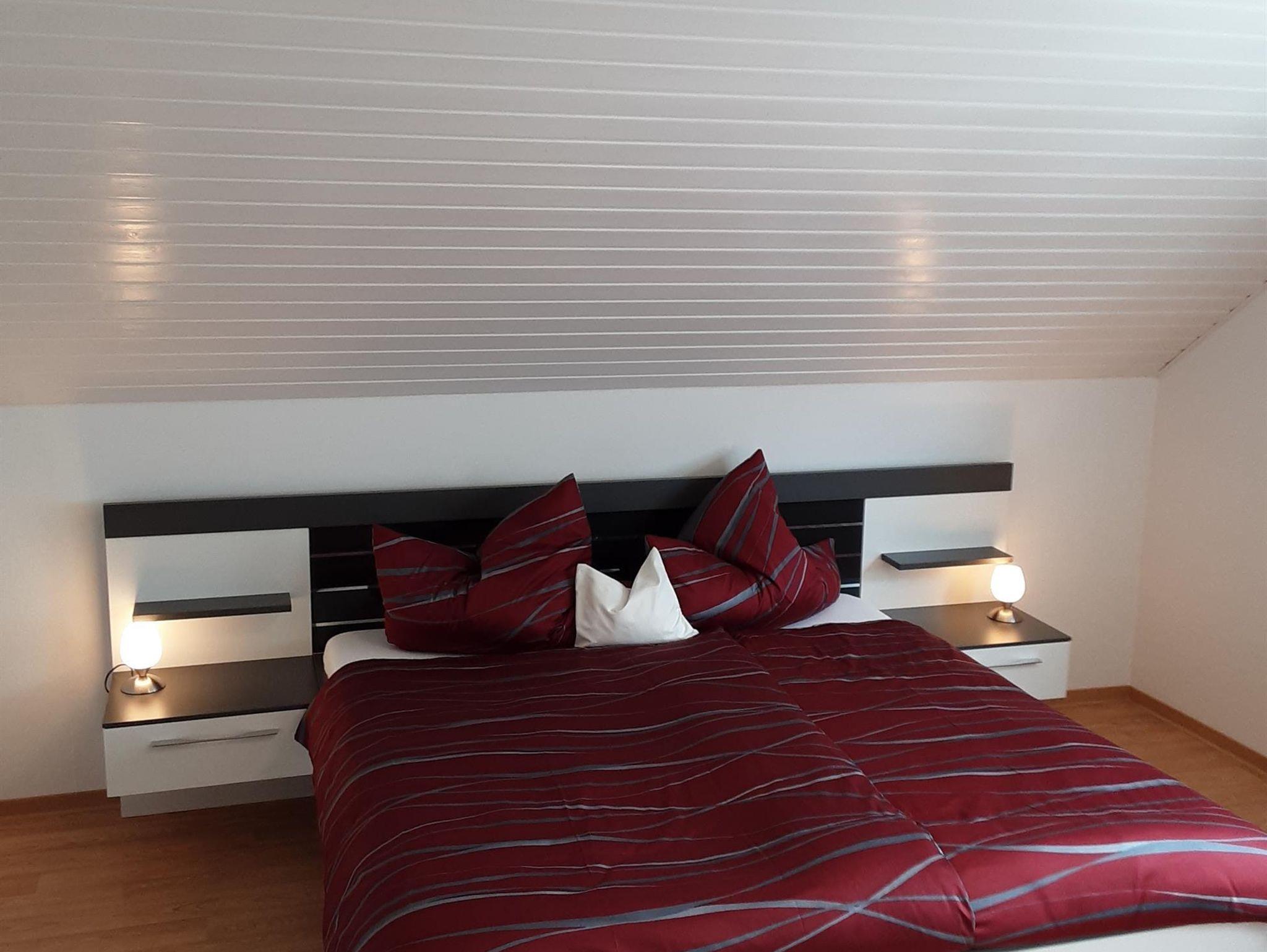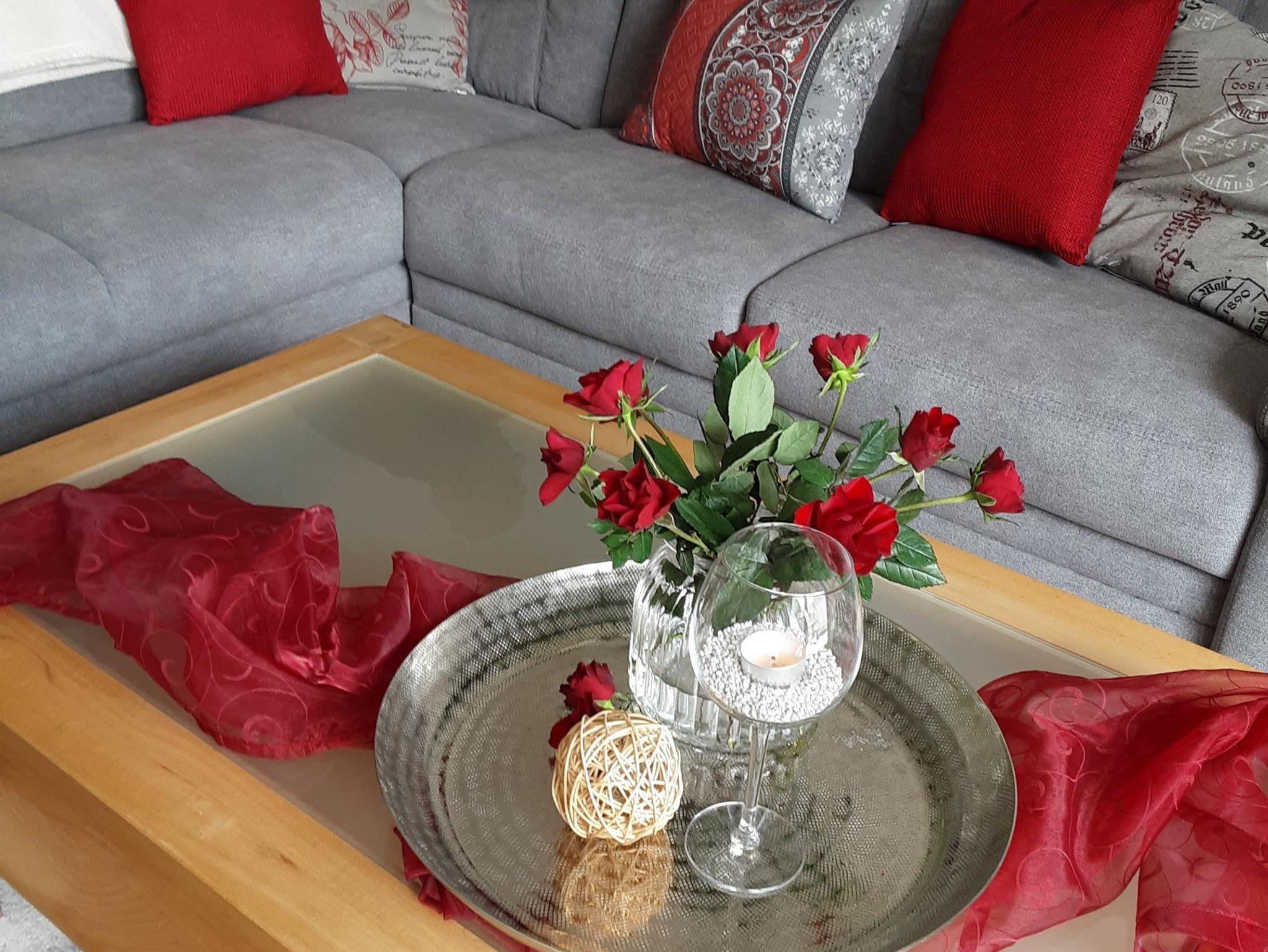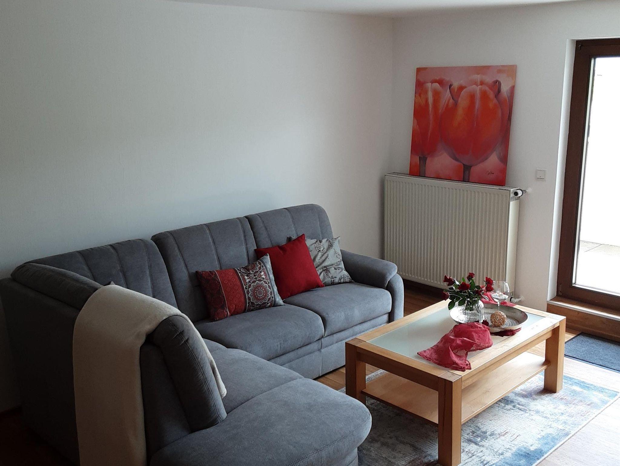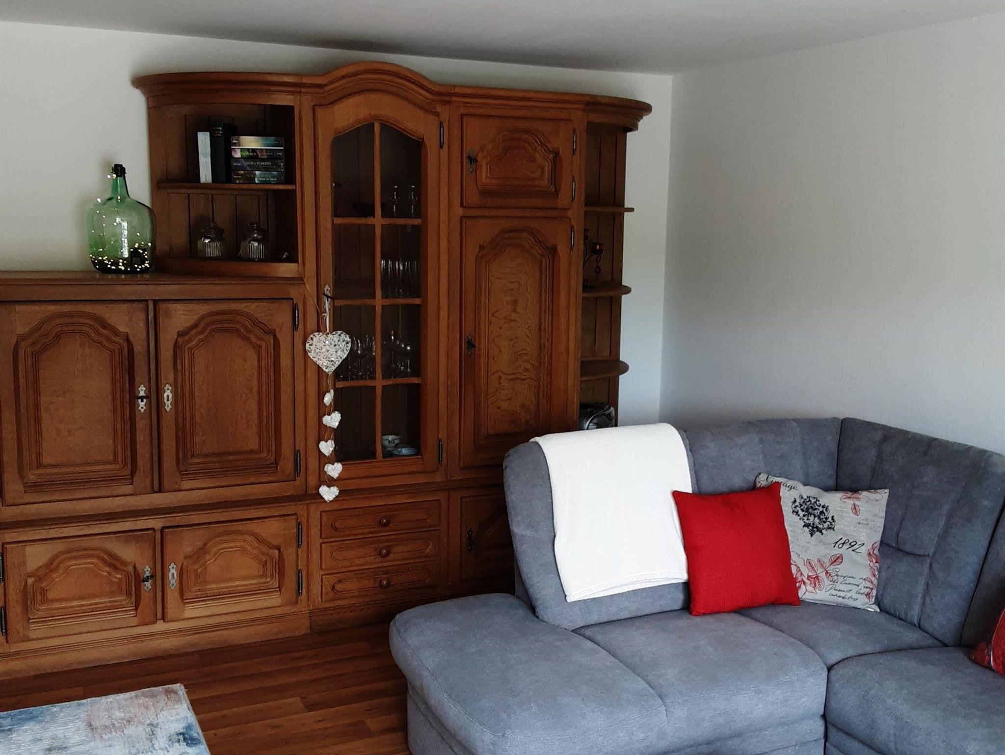 Die Ferienwohnung befindet sich auf einer ganzen Etage an Ortsrandlage. Ein großes Wohnzimmer mit Fernseher und kleiner Terrasse von 10 Quadratmeter. Separate Küche mit Essen, 2 große Schlafzimmer mit Doppelbetten.