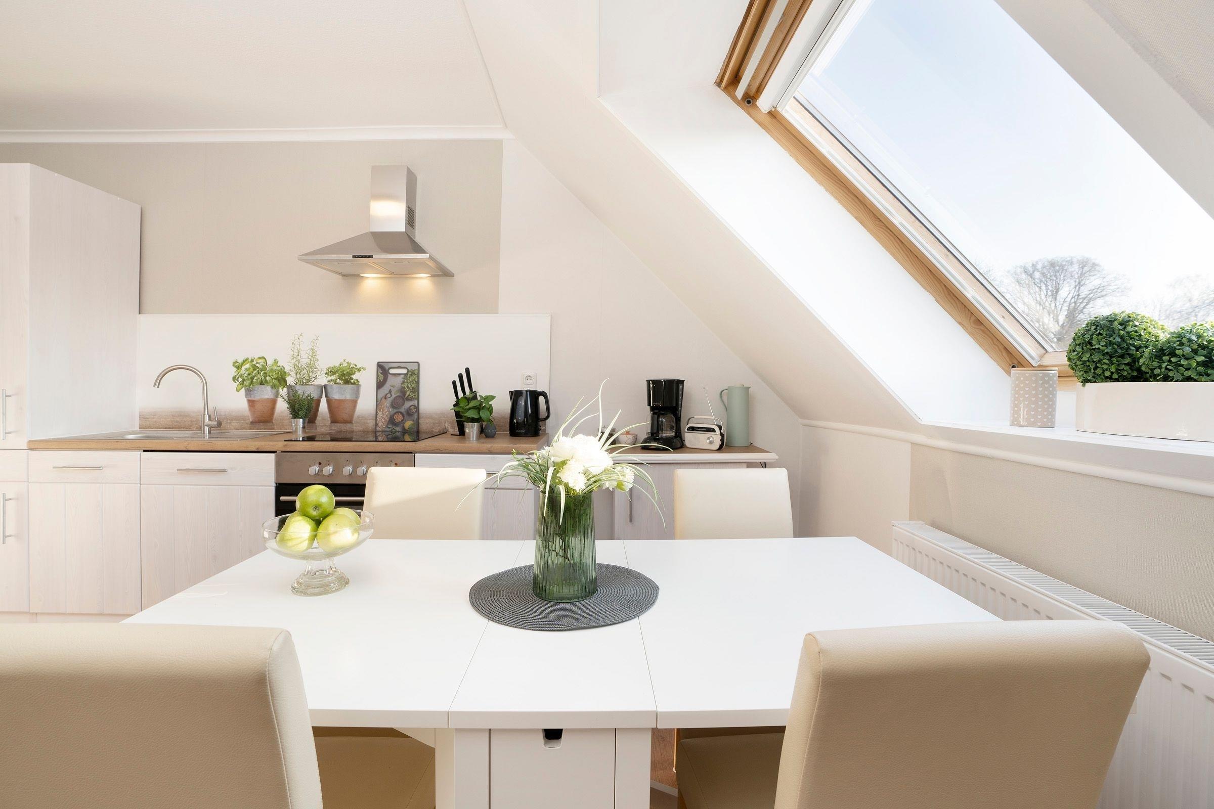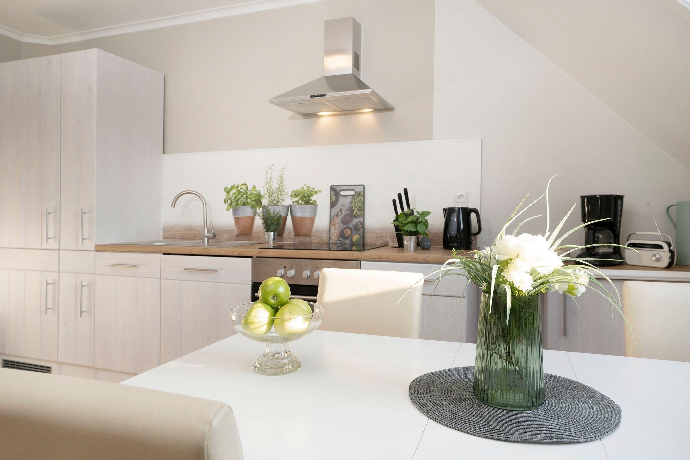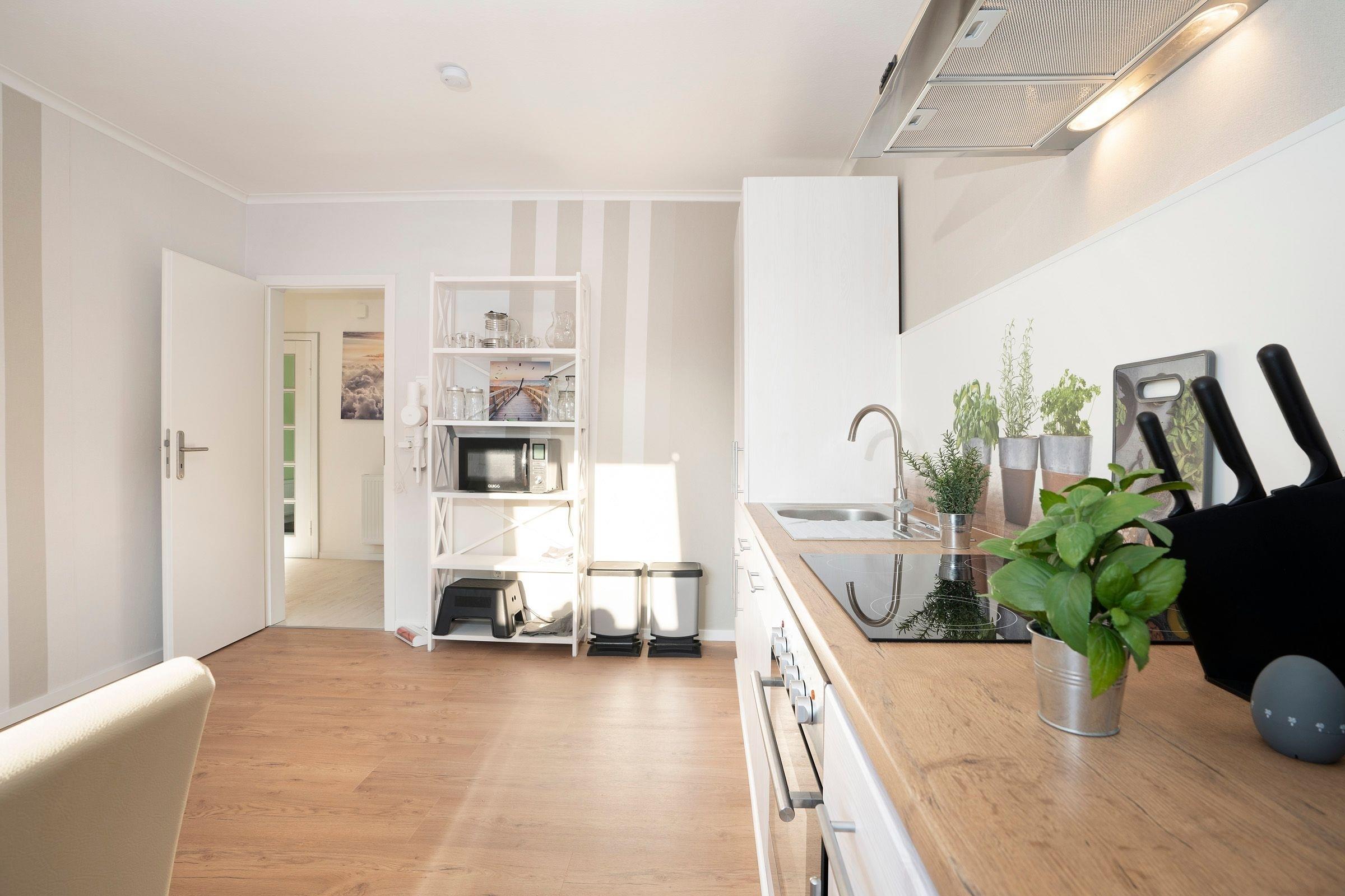 Die großzügig geschnittene Wohnung umfasst zwei Schlafzimmer mit zwei Einzelbetten (100x200 cm) und einem Doppelbett (2x 80x200 cm). Beide Räume verfügen jeweils über einen Kleiderschrank und Verdunkelungsmöglichkeiten, sowie genug Platz für ein Kinderreisebett. Frisch gestärkt in den Tag starten ist hier kein Problem: das großzügige Badezimmer mit offener Dusche und das praktische Gäste-WC sorgen dafür, dass sich kein Stau bildet. Der Esstisch in der gemütlichen Küche bietet genug Platz, um beim leckeren Frühstück den nächsten Ausflug zu planen. Als Rückzugsorte bieten sich das Wohnzimmer mit zwei Sofas, Flachbildfernseher und Radio, sowie der Süd-West-Balkon mit wunderschönem Weitblick an.