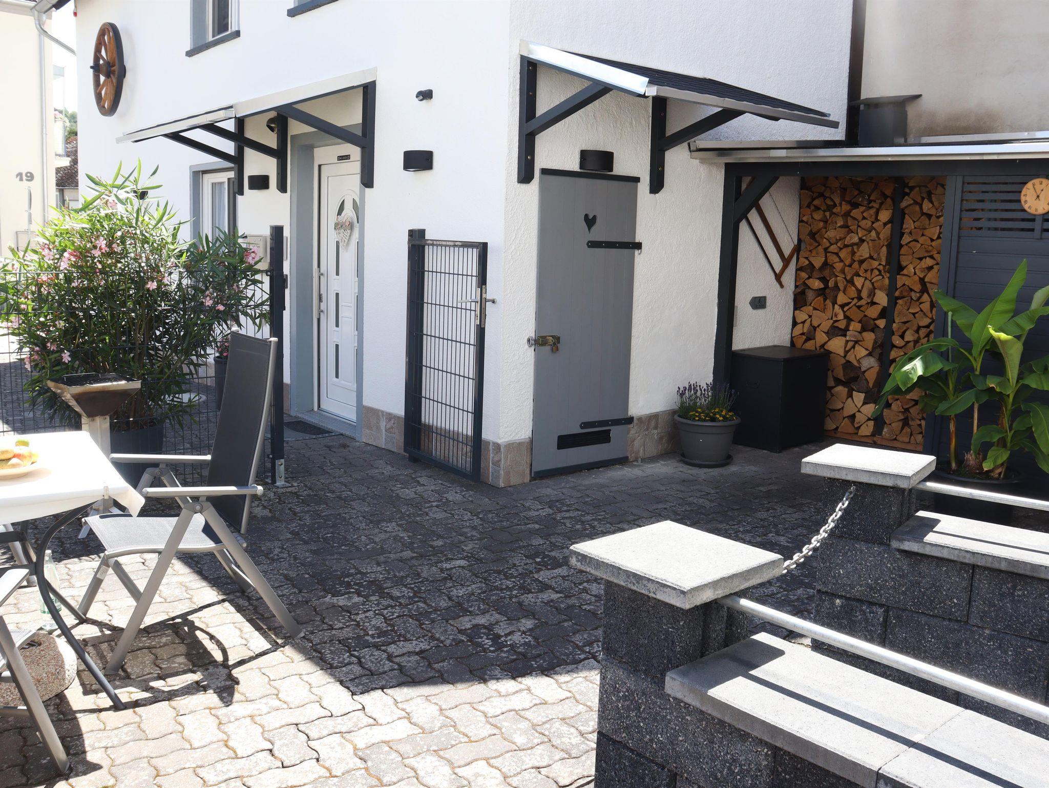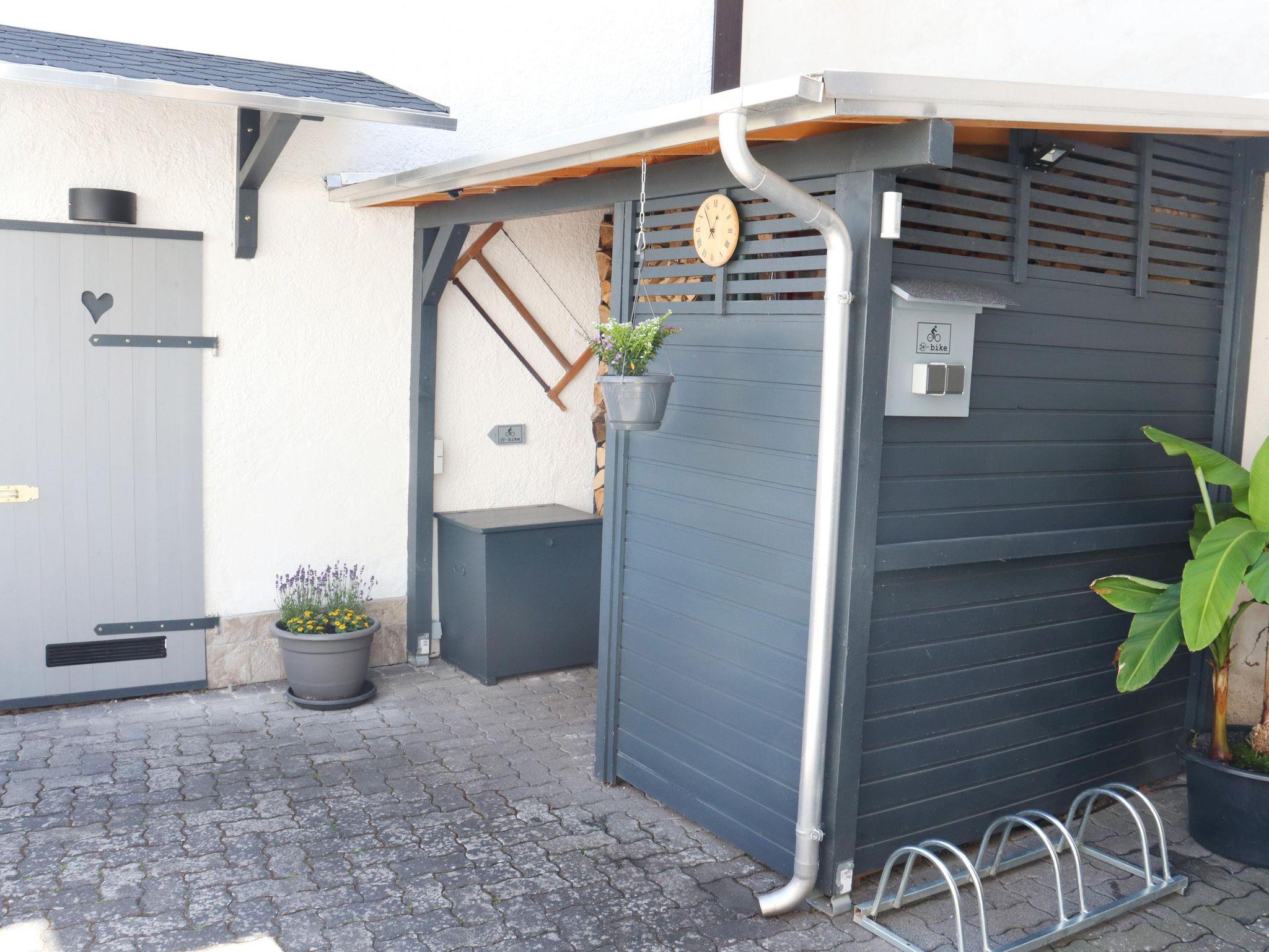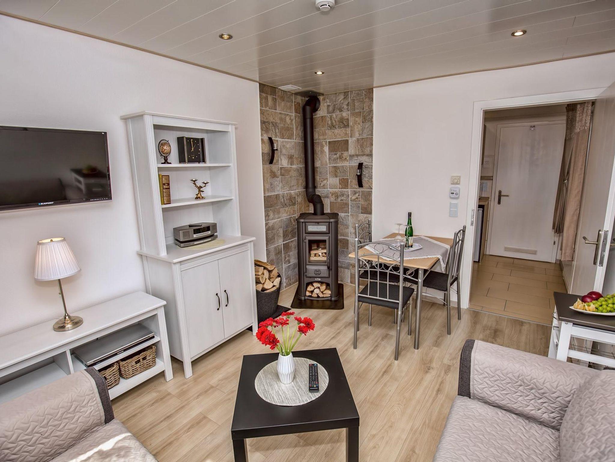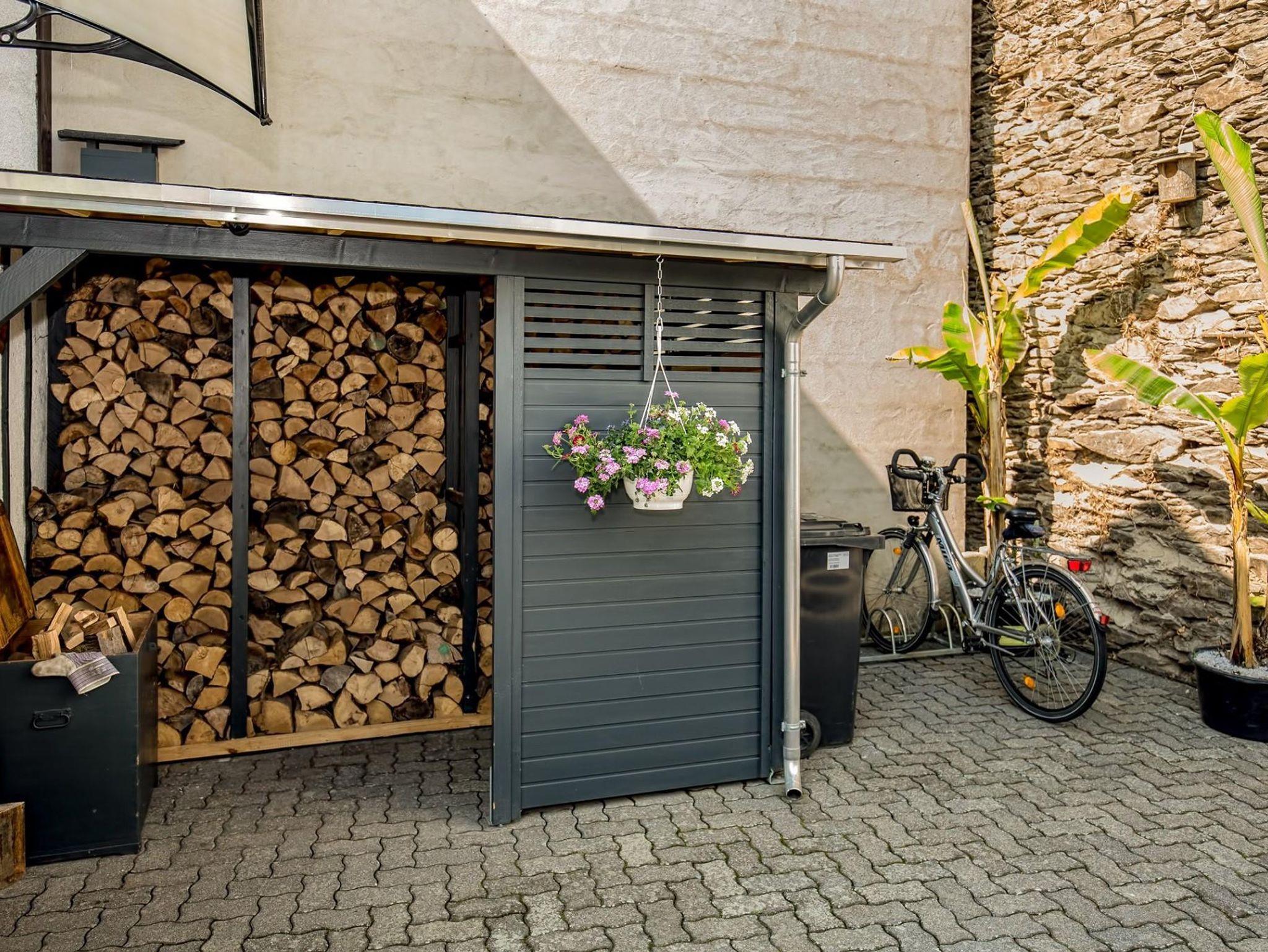 Das Herz des Hauses bildet das modern eingerichtete und mit kleinen Extras bestückte Wohn- und Esszimmer. Für gemütliche Abende sorgt der Holzofen. Die Küche bietet Ihnen viele Möglichkeiten, um allerlei Köstlichkeiten zuzubereiten. Sie ist komplett ausgestattet mit 2 Sätzen Tellern, Tassen, Besteck uvm. Im komfortablen Schlafzimmer, welches sich im ersten Stock befindet, erwartet Sie ein großes Doppelbett mit verstellbaren Lattenrosten. Das Lesezimmer bietet Ihnen einen kleinen Rückzugsort an. Für einen extra Komfort und stets warme Füßen sorgt die Fußbodenheizung im Bad und in der Dusche. Der Abstellraum verfügt über eine Waschmaschine. Entspannen Sie in unserem wunderschönen Außenbereich des Ferienhauses. Er bietet Ihnen eine Wohlfühloase mit Gartenmöbeln, Sonnenschirm und einen Blick auf die Niederburg. Fahrradständer und E-Bike Ladestation befinden sich auch im Außenbereich. Weinproben und Wanderungen organisieren wir gerne für Sie. Eine Infomappe mit weiteren Tipps und Anregungen liegt bereit.