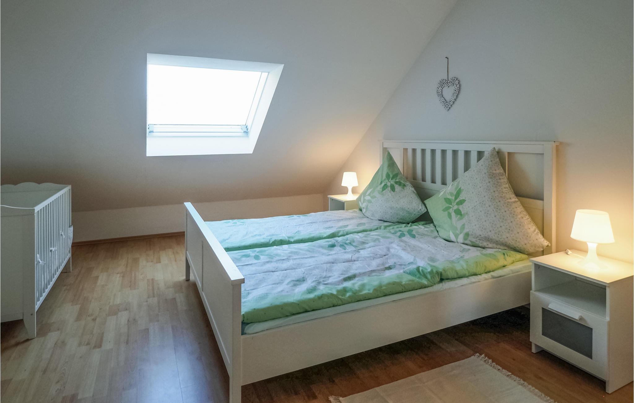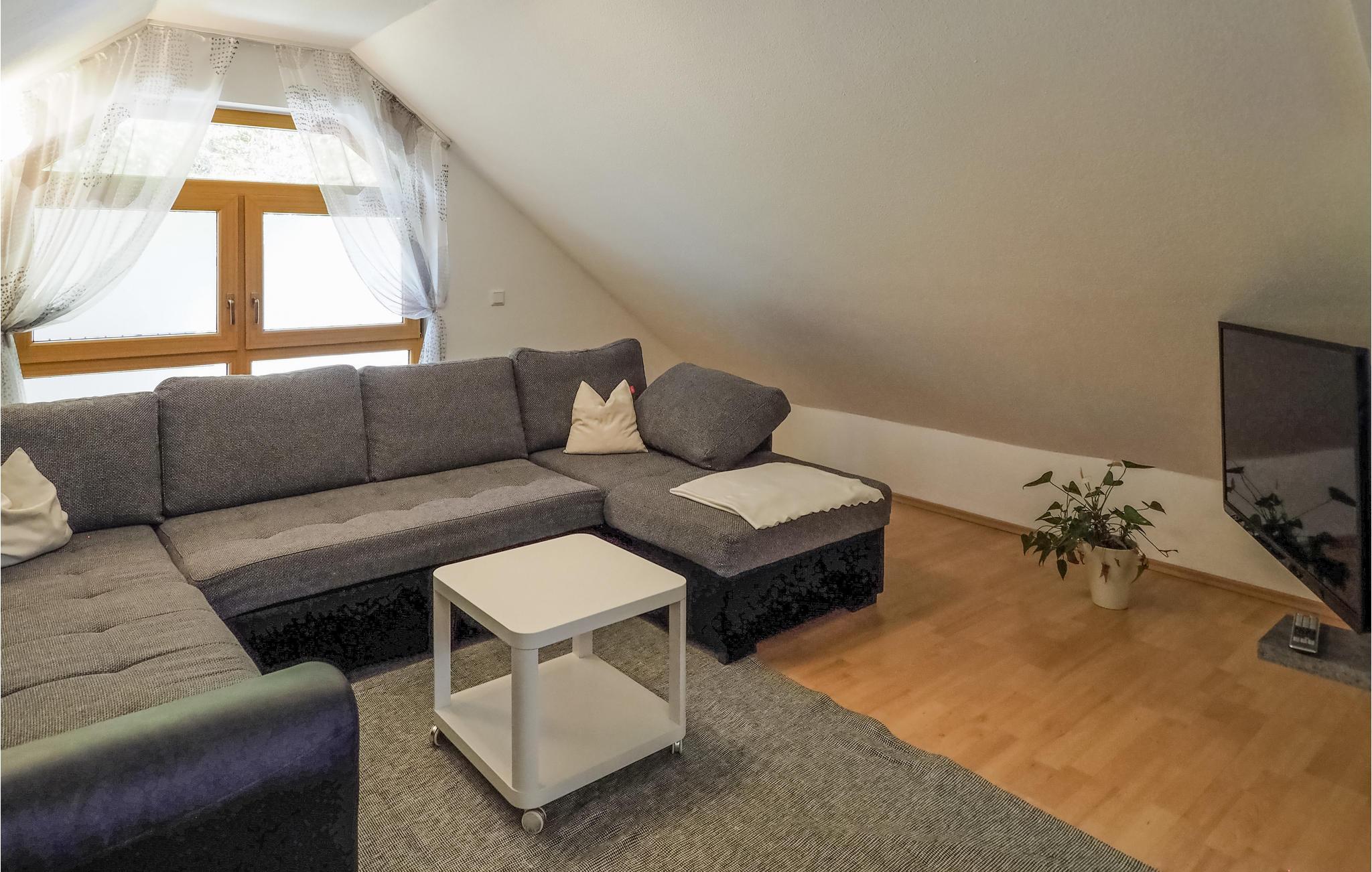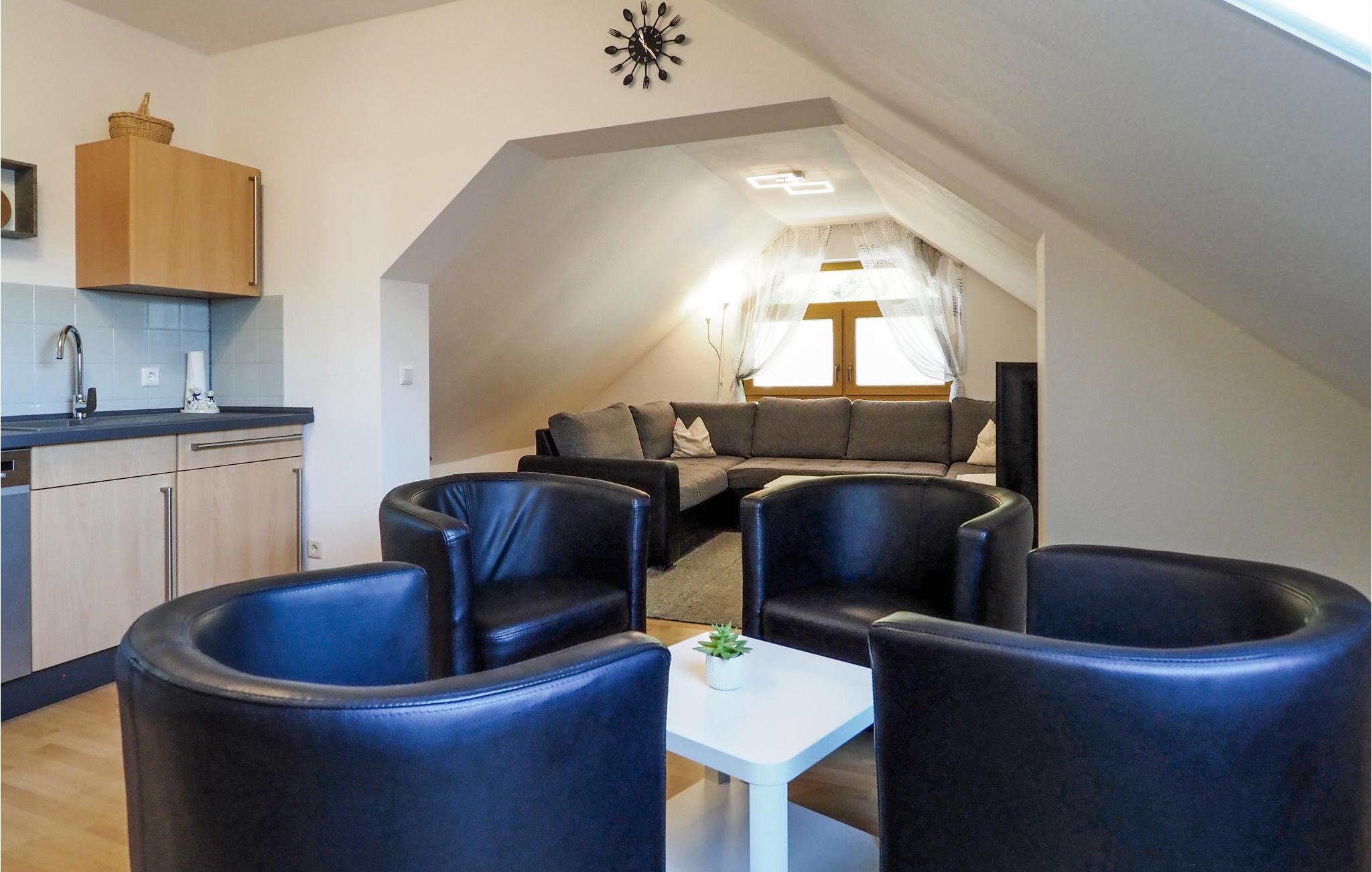 Velkommen til denne hyggelige lejlighed i Kemmenau, som ligger på øverste etage ud til smuk, grøn natur og et charmerende landskab. Glæd jer til en rolige stunder med familien i den åbne stue, hvor I kan læne jer tilbage med en god bog i sofaen, se en film eller fremtrylle lækre retter i køkkenet. Nyd morgenkaffen på altanen, mens I kigger ud på den vidunderlige udsigt. I kan også se frem til en lille have med terrasse og grill, så intet står i vejen for milde sommeraftener med brætspil udendørs.
