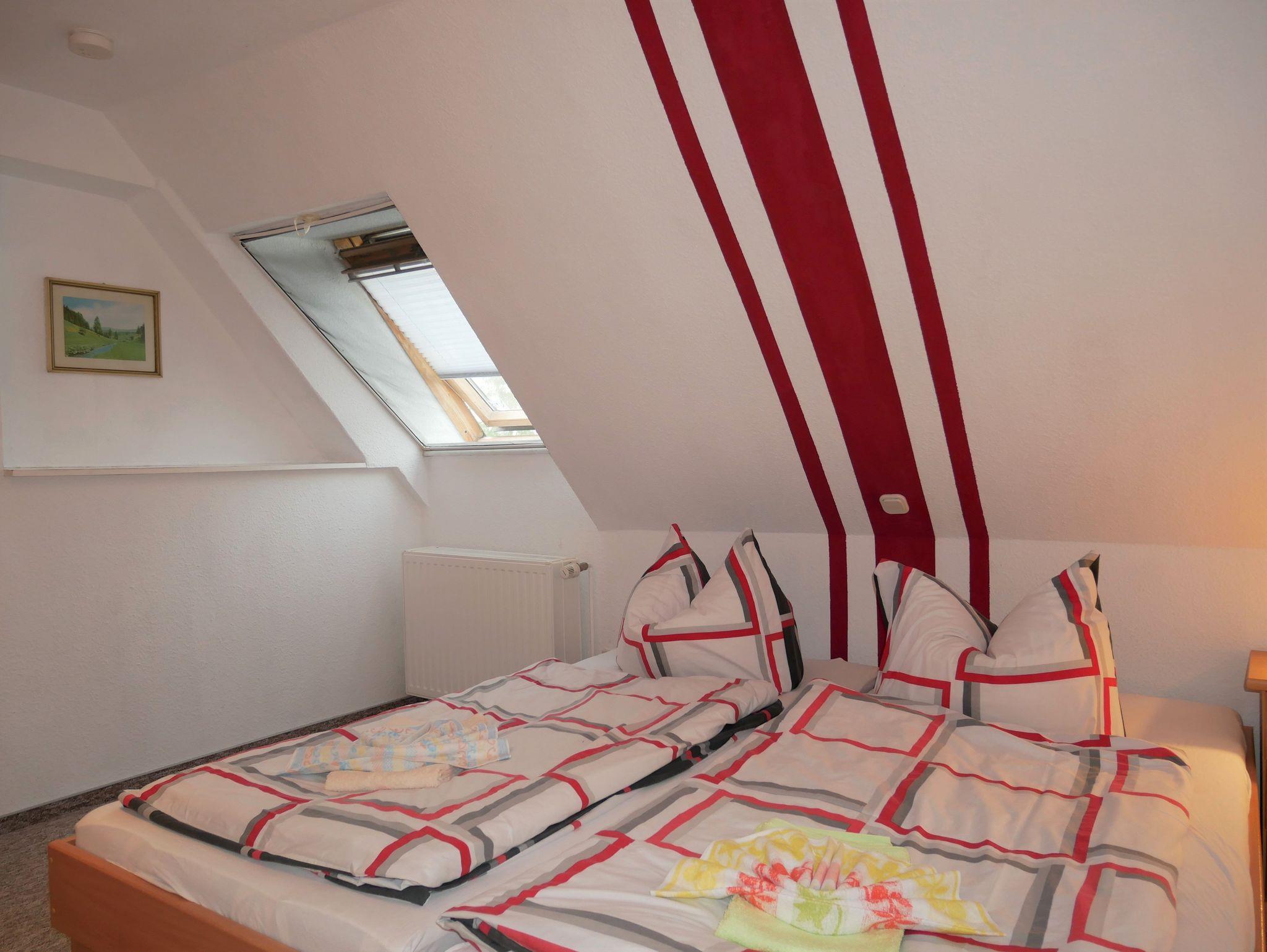 Im Obergeschoss finden Sie das zweite Schlafzimmer mit Flachbild-TV und ein Gäste-WC.