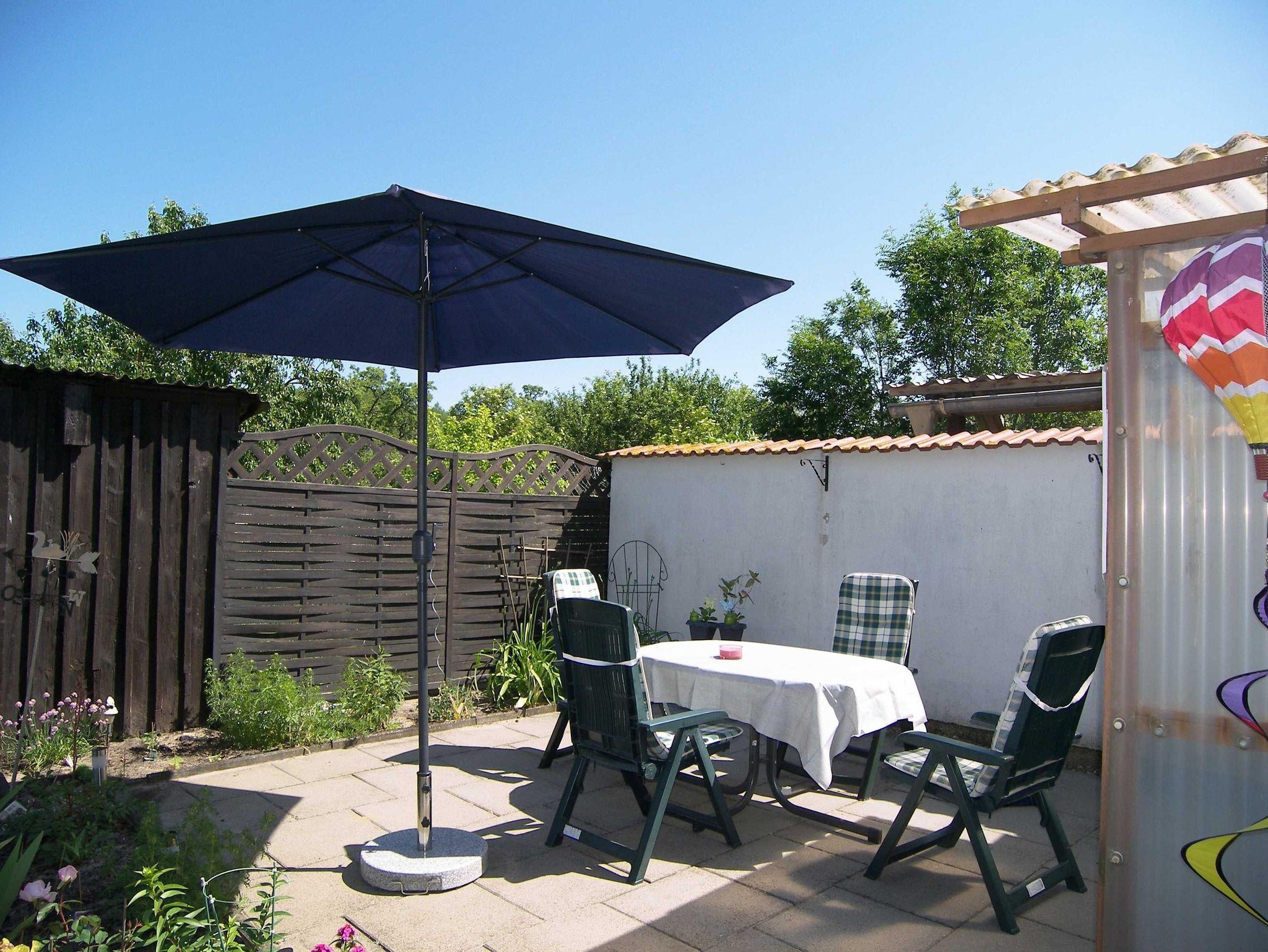 Die Sonnenterrasse ist von Blumenbeeten umgeben und lädt zum Speisen, Relaxen oder Grillen ein.