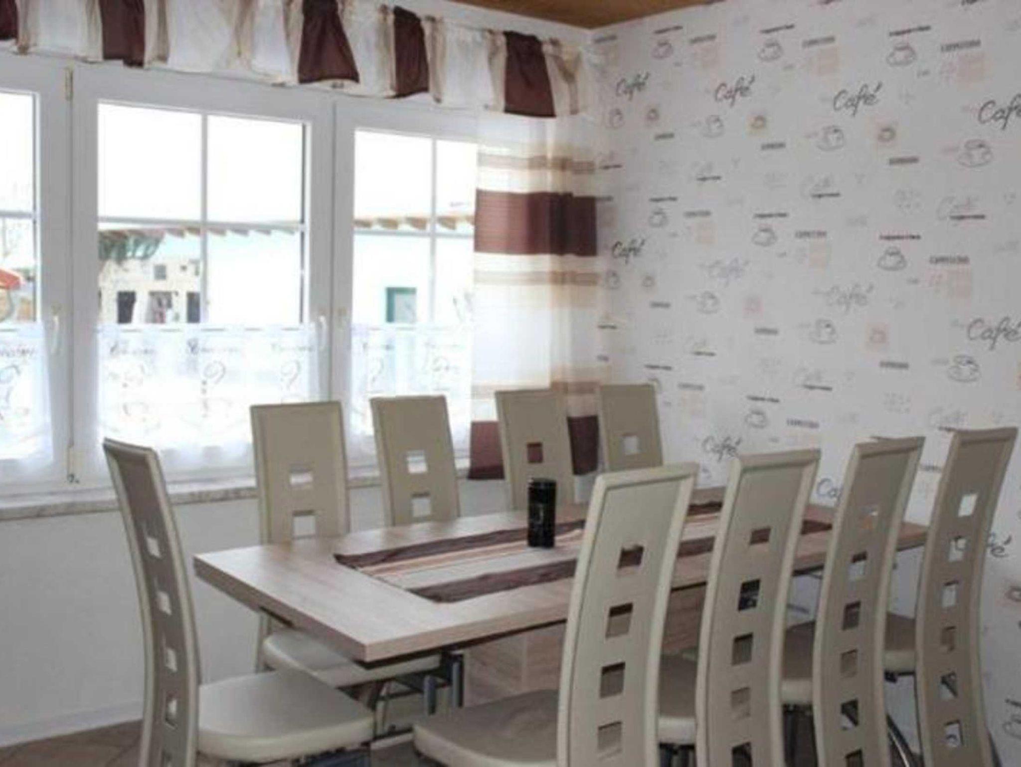 Großes Wohnzimmer, Küche mit Tisch für 8 Personen,