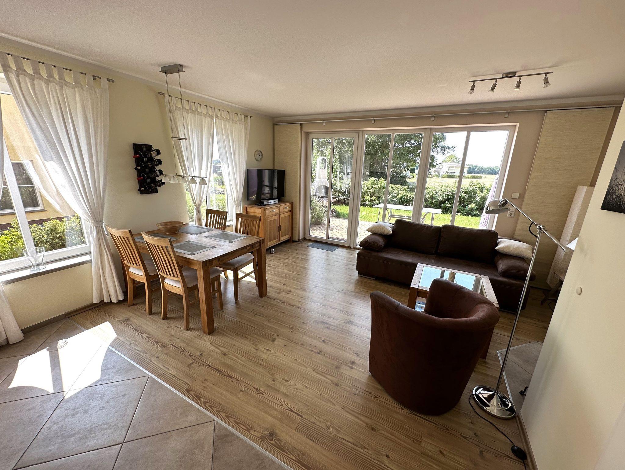 Das Landhaus Gothensee ist ca. 80qm groß und im gemütlichen Landhausstil eingerichtet. Das großzügige Wohnzimmer verfügt über ein bequemes Sofa, einen Kamin (ein erster großer Korb mit Kaminholz steht für Sie bereit), ein Flat-TV mit Microanlage, sowie CD/DVD und Bluetooth sind ebenso vorhanden, wie kostenfreies WLAN und schnurloses Festnetztelefon.