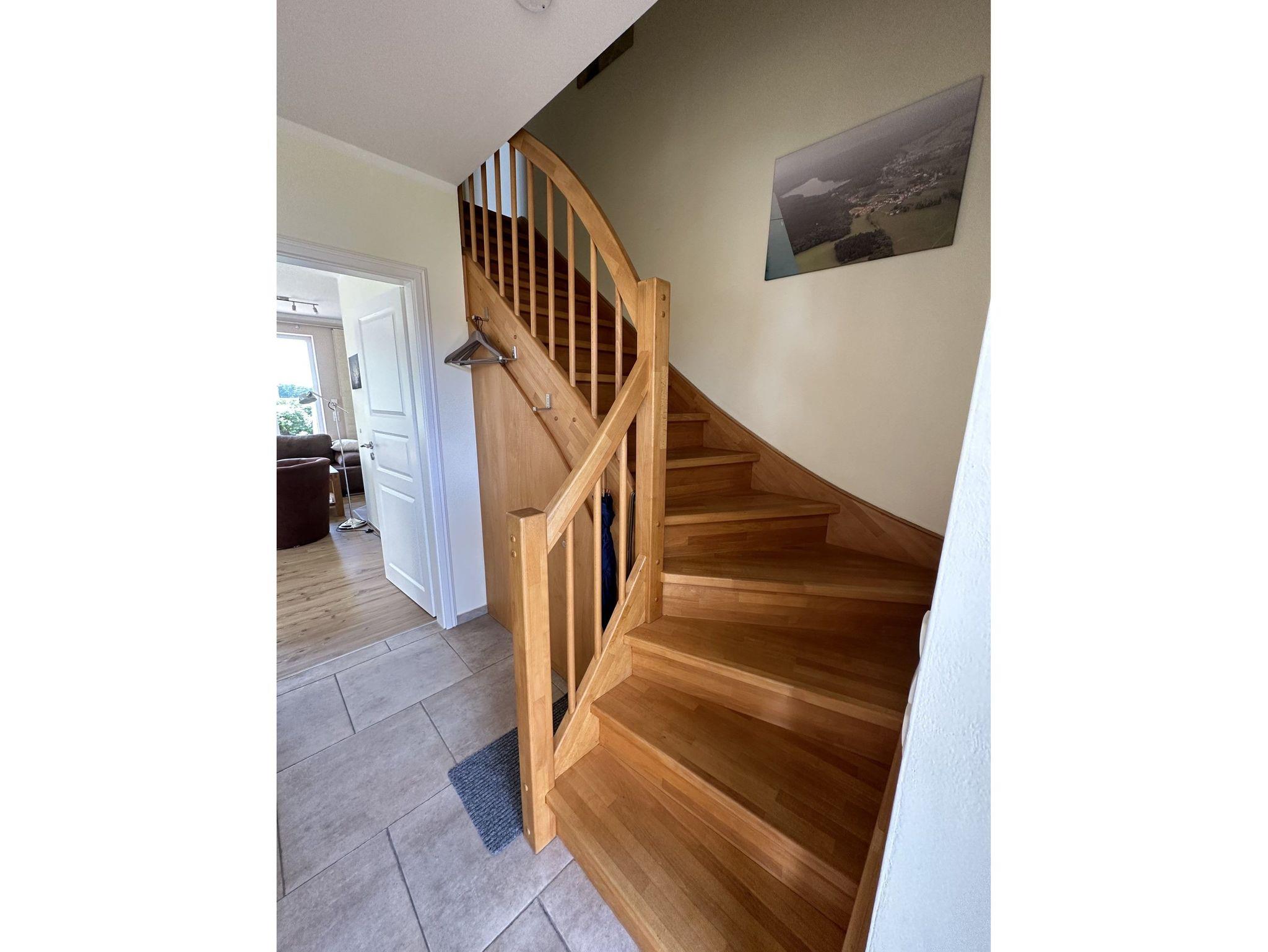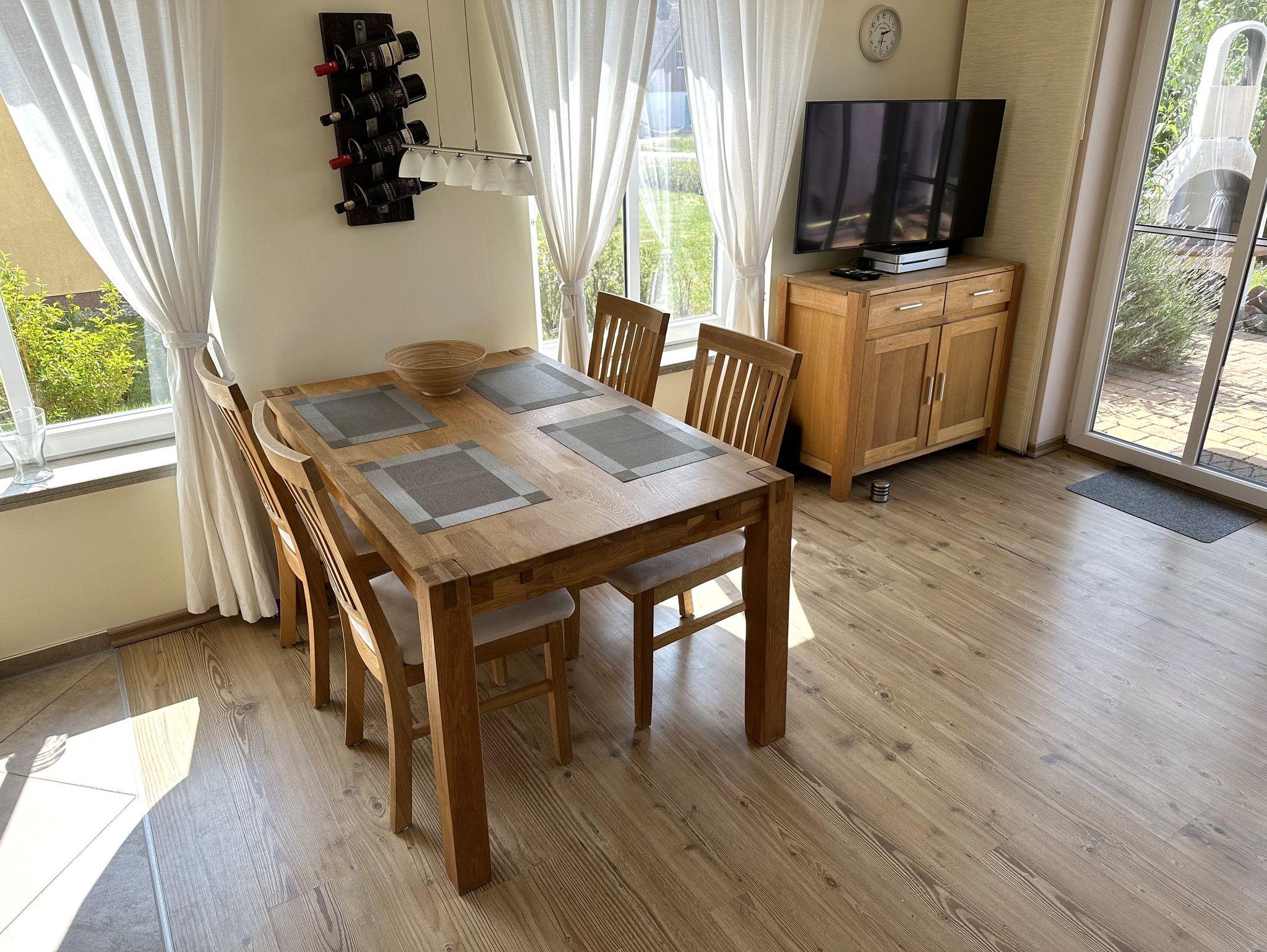Vom Wohnbereich gelangen Sie auf die sonnige Südterrasse mit Strandkorb und Grillkamin. An den Wohnbereich schließt sich der schöne Essbereich mit großem Esstisch und die offene Küche mit Backofen, Ceranfeld, Kühlschrank mit Gefriermöglichkeit, Geschirrspülmaschine, Kaffee-Pad-Maschine, Wasserkocher & Toaster an. Im Erdgeschoss des Hauses befindet sich ein Badezimmer mit Dusche/WC und Sauna. Im Untergeschoß befindet sich ein Badezimmer mit Dusche, WC und Sauna.