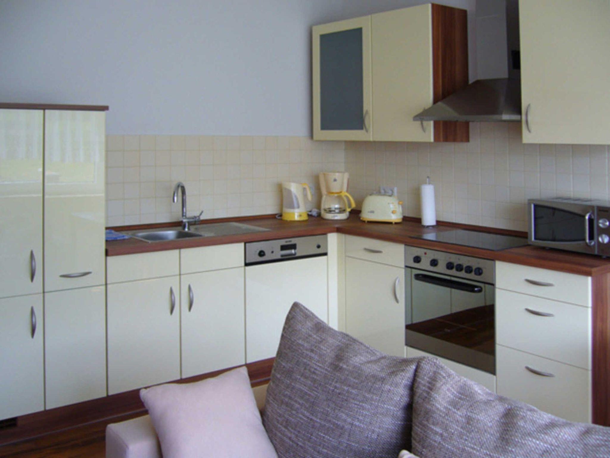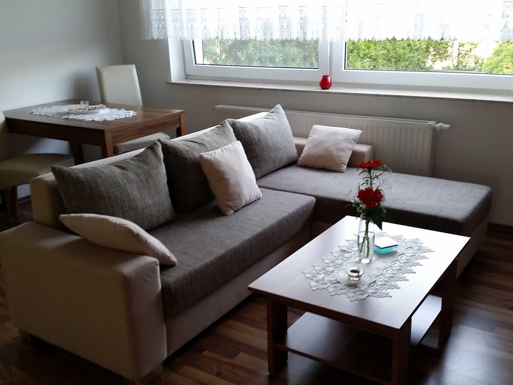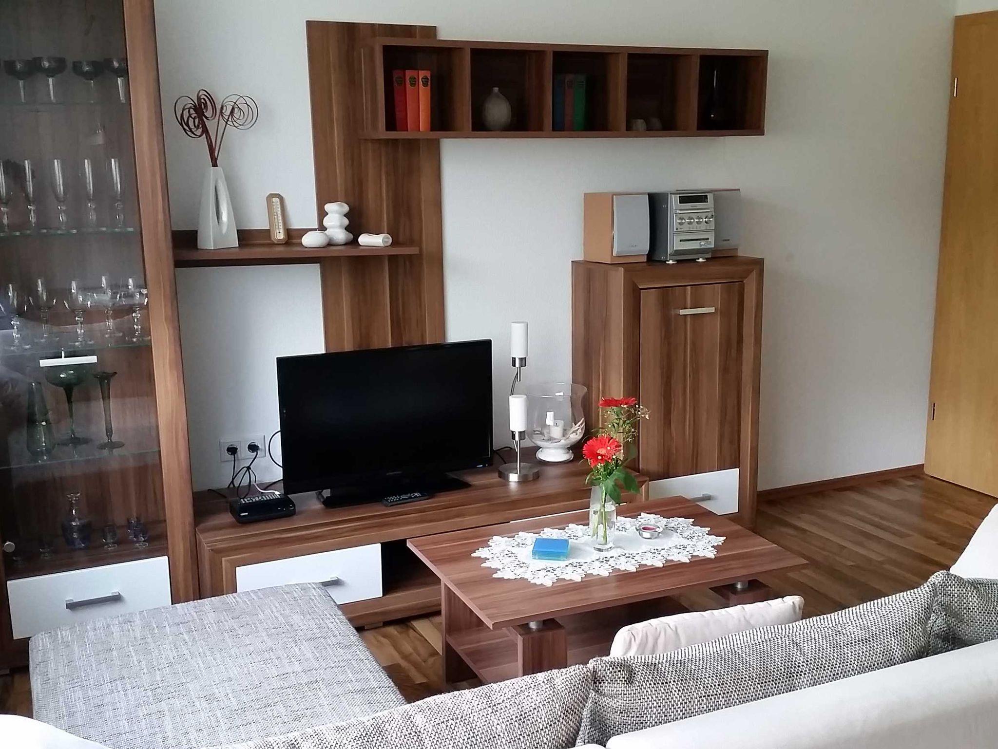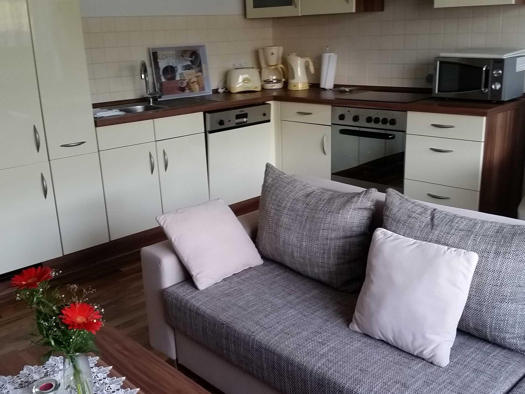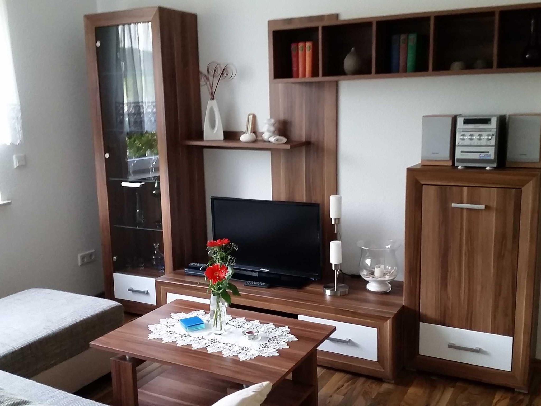 Die 2 Raum-Wohnung (40 m²) für max. 2 Personen sind hell und modern eingerichtet. Das Wohnzimmer ist mit einer Eckschlafcouch ausgestattet, so wie Flachbild-TV, Radio und HiFi-Anlage.
