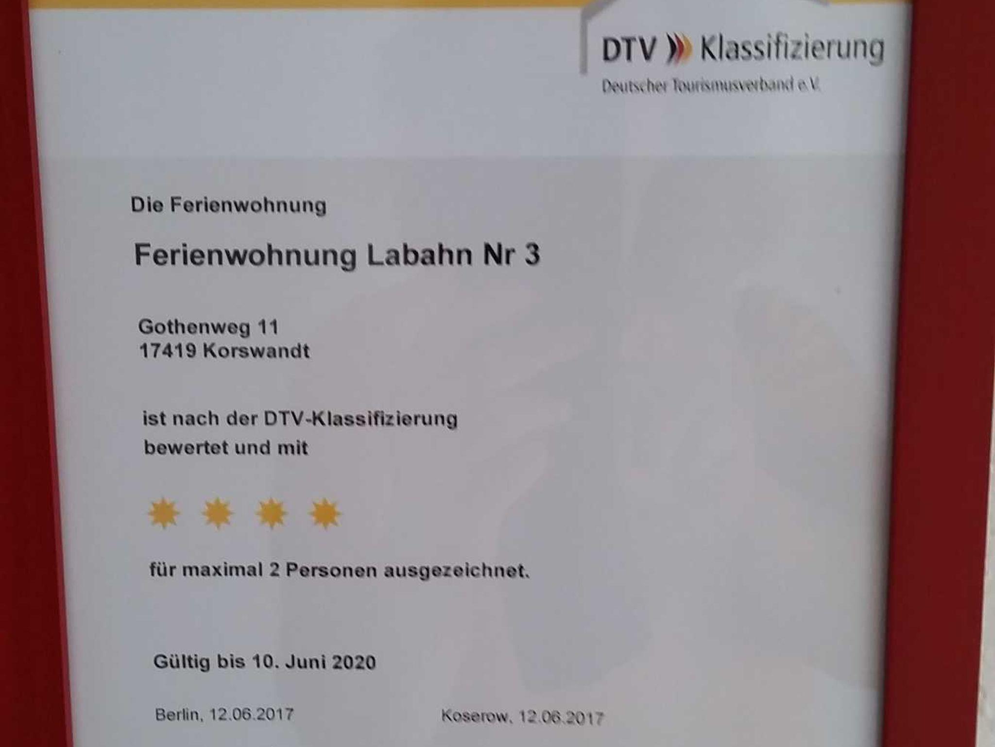 Die Ferienwohnung ist mit 4 Sternen DTV- klassifiziert.
