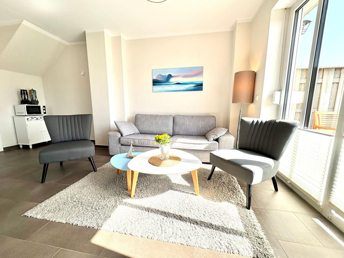 Der offene Wohn- und Essbereich ist harmonisch gestaltet und lädt zum Verweilen ein. Hier finden Sie eine komfortable Sofaecke mit Sessel, einen Esstisch, einen digitalen TV-Anschluss mit Flachbildfernseher, ein Radio, einen DVD-Spieler sowie Bücher und Spiele für die Unterhaltung. Für preisbewusste und familienorientierte Gäste ist die Unterkunft ebenso geeignet wie für Paare oder sportlich aktive Urlauber.