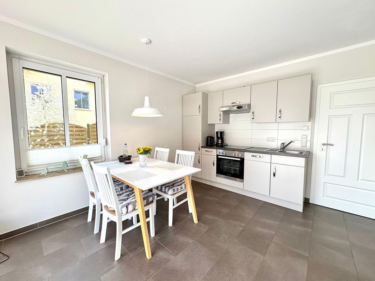Die voll ausgestattete Küche lässt keine Wünsche offen: Herd, Backofen, Mikrowelle, Kühlschrank mit Gefrierfach, Spülmaschine, Kaffeemaschine, Wasserkocher, Toaster sowie ausreichend Geschirr, Besteck und Küchenutensilien stehen zur Verfügung. Die Erstausstattung umfasst zudem Reinigungsmittel und Geschirrhandtücher.