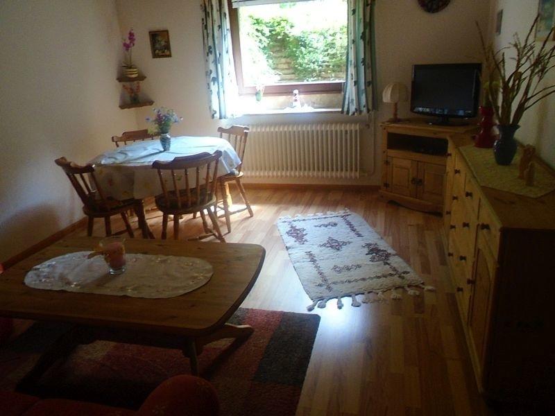 66 qm große, helle Ferienwohnung im Souterrain in ruhiger Lage (Sackgasse). Wohnraum mit Essecke, 2 Schlafräume, sep. Küche mit Mikrowelle, DU/WC.