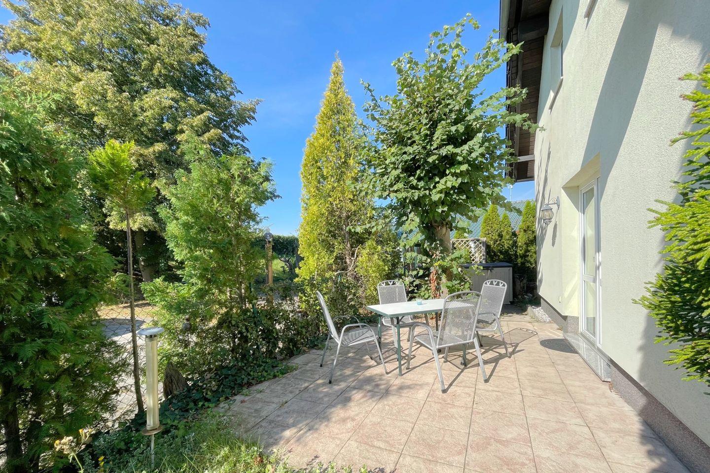 Das Highlight dieser Unterkunft ist die großzügige Terrasse, die ideal für Ihre sonnigen Frühstücke oder entspannte Abende mit Blick auf die Umgebung ist. Gartenmöbel stehen bereit, um die ruhige Atmosphäre der ländlichen Umgebung zu genießen.