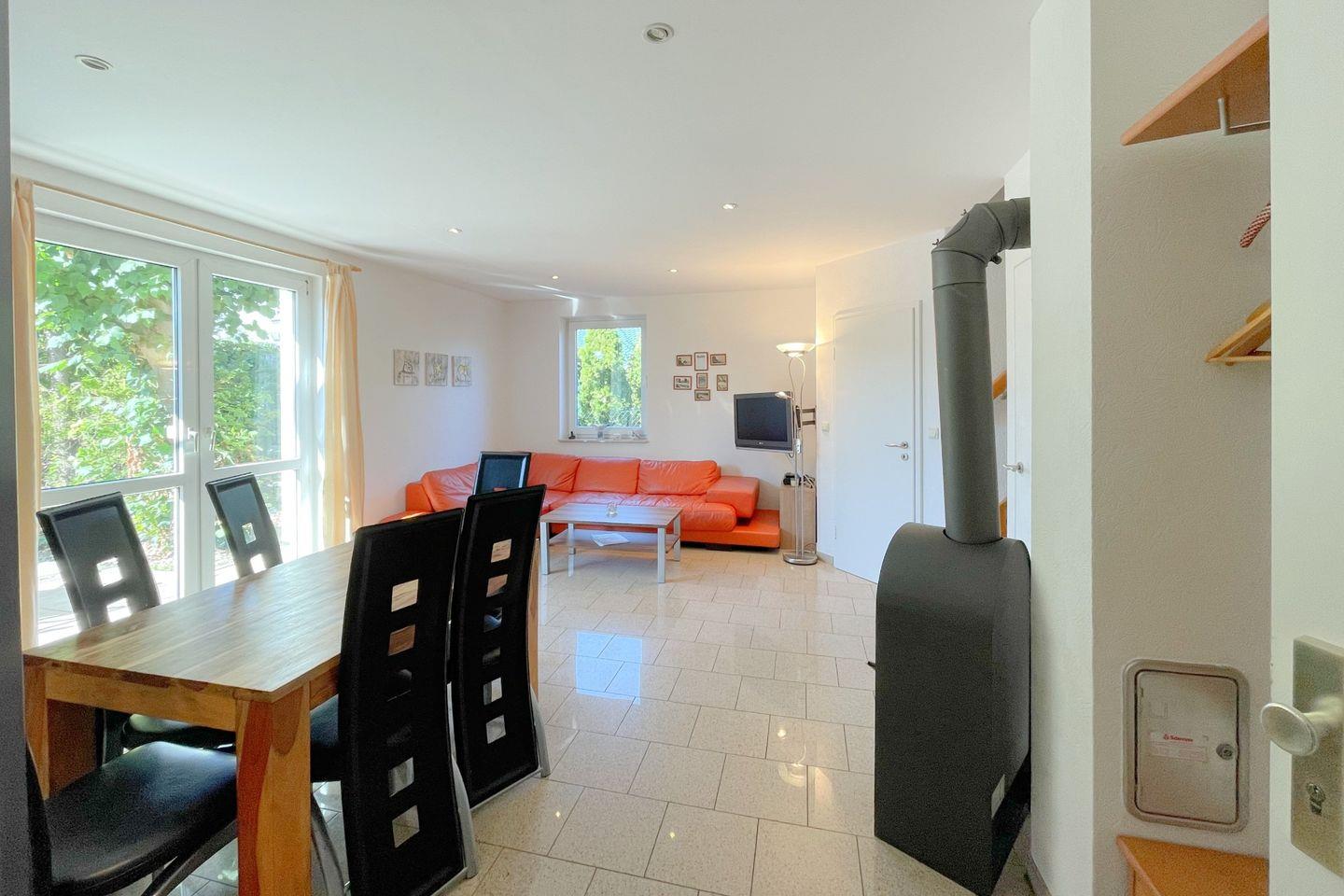 Im Inneren des Ferienhauses erwartet Sie ein helles, offenes Wohnkonzept, das mit einer modernen Küche, einem einladenden Essbereich und einem gemütlichen Wohnzimmer mit Kaminofen ausgestattet ist – perfekt für kühle Abende! Die Küche ist voll ausgestattet mit hochwertigen Geräten, darunter ein Cerankochfeld, ein Backofen, eine Mikrowelle und eine Spülmaschine, sodass Sie sich um das leibliche Wohl Ihrer Gäste problemlos kümmern können. Zwei Badezimmer bieten Ihnen zusätzliche Bequemlichkeit.