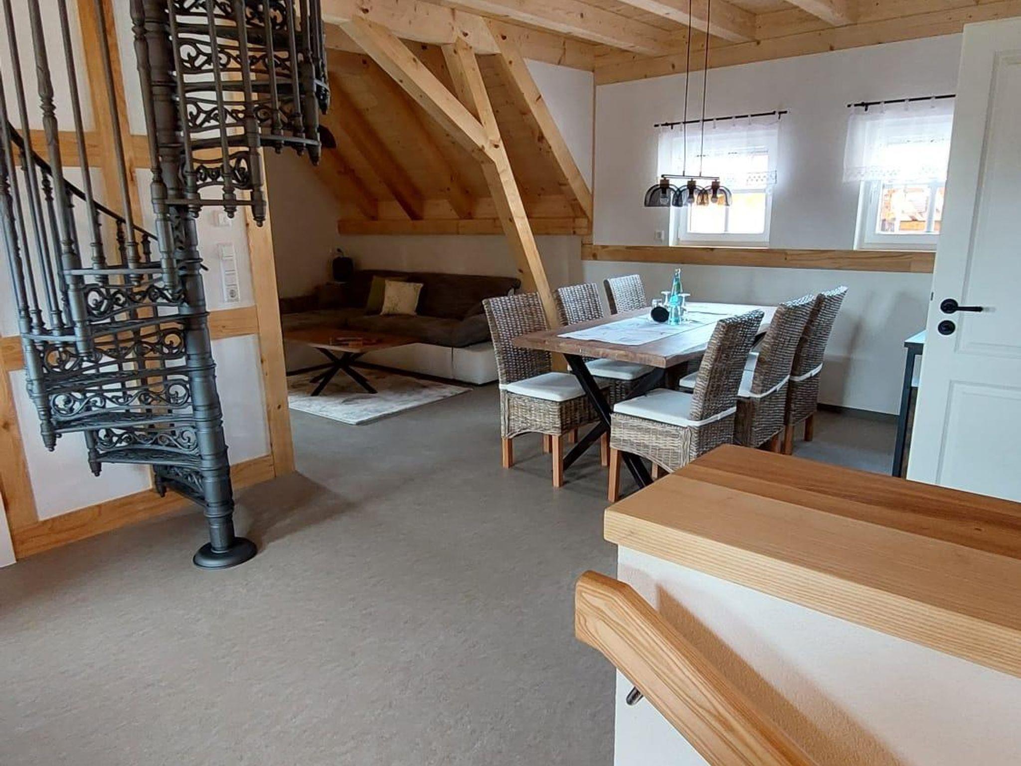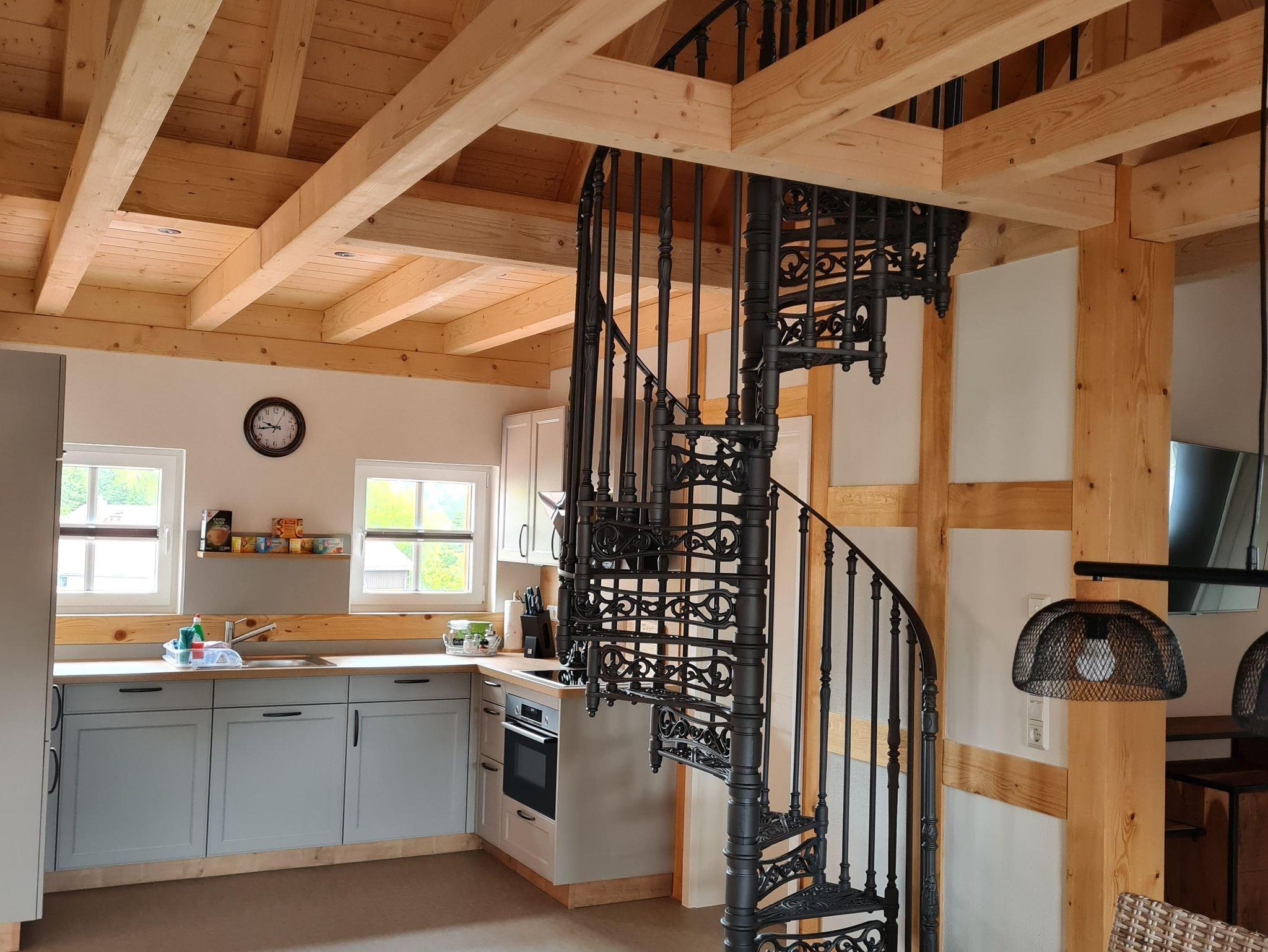 Der „Löbauer Berg“ ist eine luxuriöse Appartementwohnung mit gusseisener Wendeltreppe, welche sich über zwei Etagen erstreckt. Sie verfügt über 3 Schlafräume mit Doppelbetten und einer vollausgestatten Wohnküche mit Essbereich. Der Wohnbereich lädt auf einem Ecksofa zum Verweilen ein, welches zur Aufbettung genutzt werden kann. Im Badezimmer erwartet euch eine ebenerdige Dusche, ein WC, Bidet, Doppelwaschtisch und ein beleuchteter Spiegel. Der Wohnbereich ist, durch die zum Dach hin offene Bauweise mit einer Holzkonstruktion, sehr besonders und verfügt über eine Galerie im Dach. In der Ferienwohnung sind außerdem der Bettwäsche- und Handtuchservice sowie der Kaffee und eine kleine Tee-Auswahl in der Küche, als Service inbegriffen. Eine Flasche Mineralwasser als Begrüßungsgetränk und die Endreinigung nach dem Check Out gehören ebenfalls standardmäßig zu unserem Service.