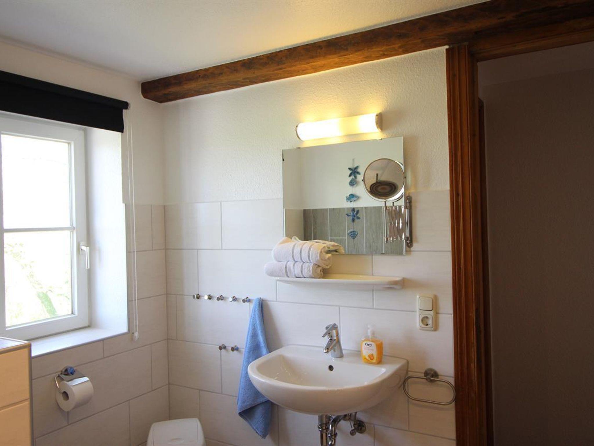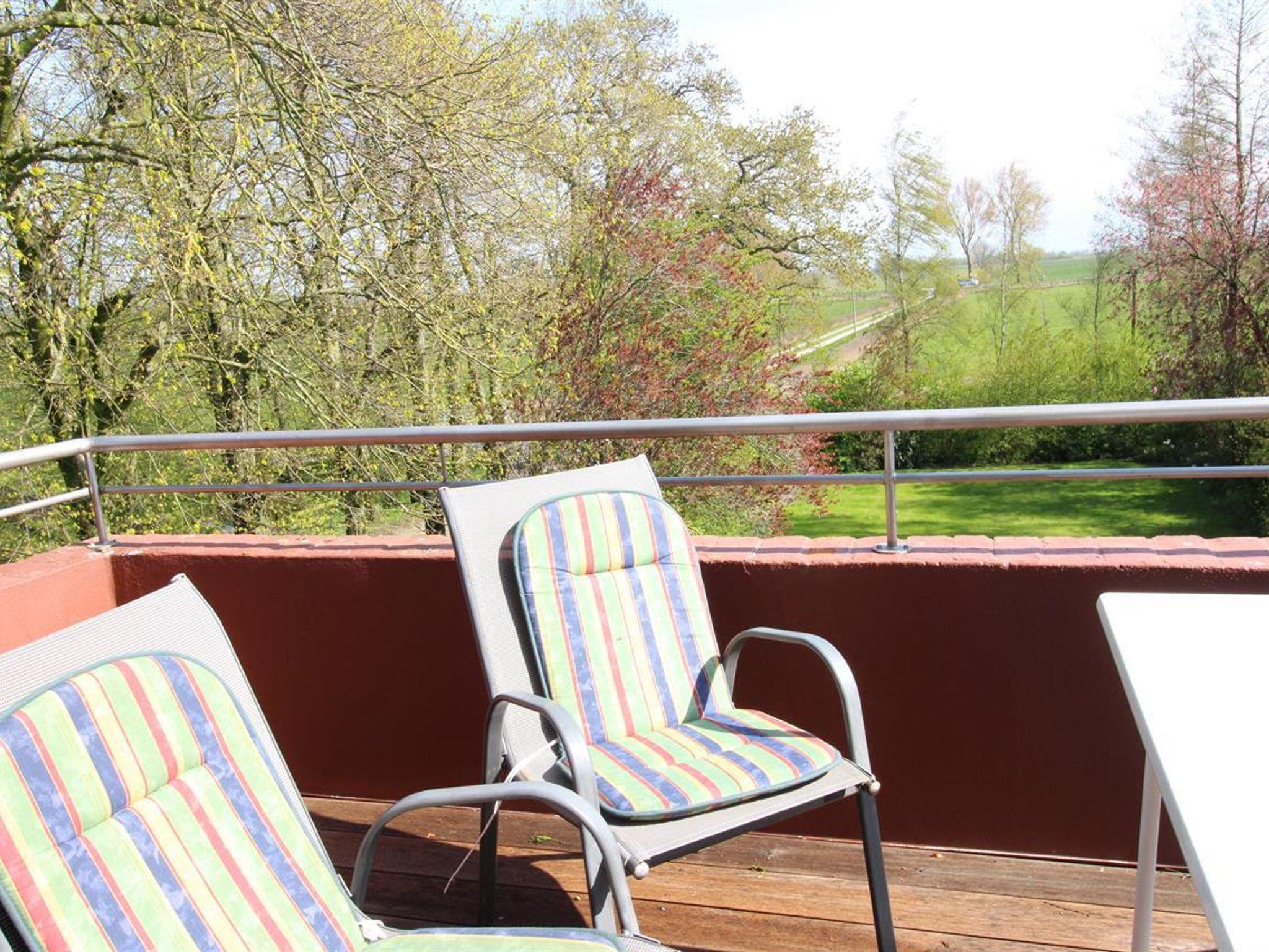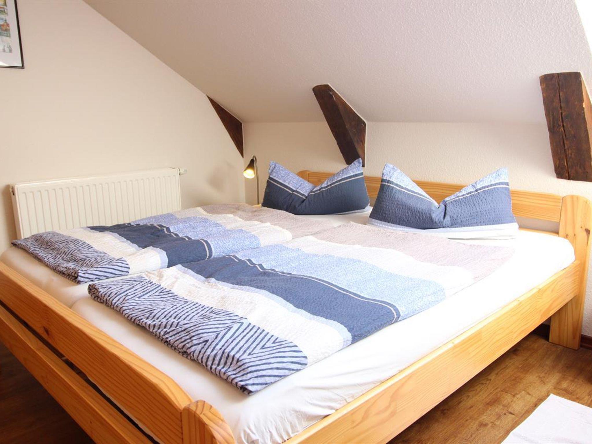 Es erwartet Sie die große Ferienwohnung mit 80 qm für 6 Personen (+maximal ein Baby) im Obergeschoß des Hauses mit einem Südbalkon.
